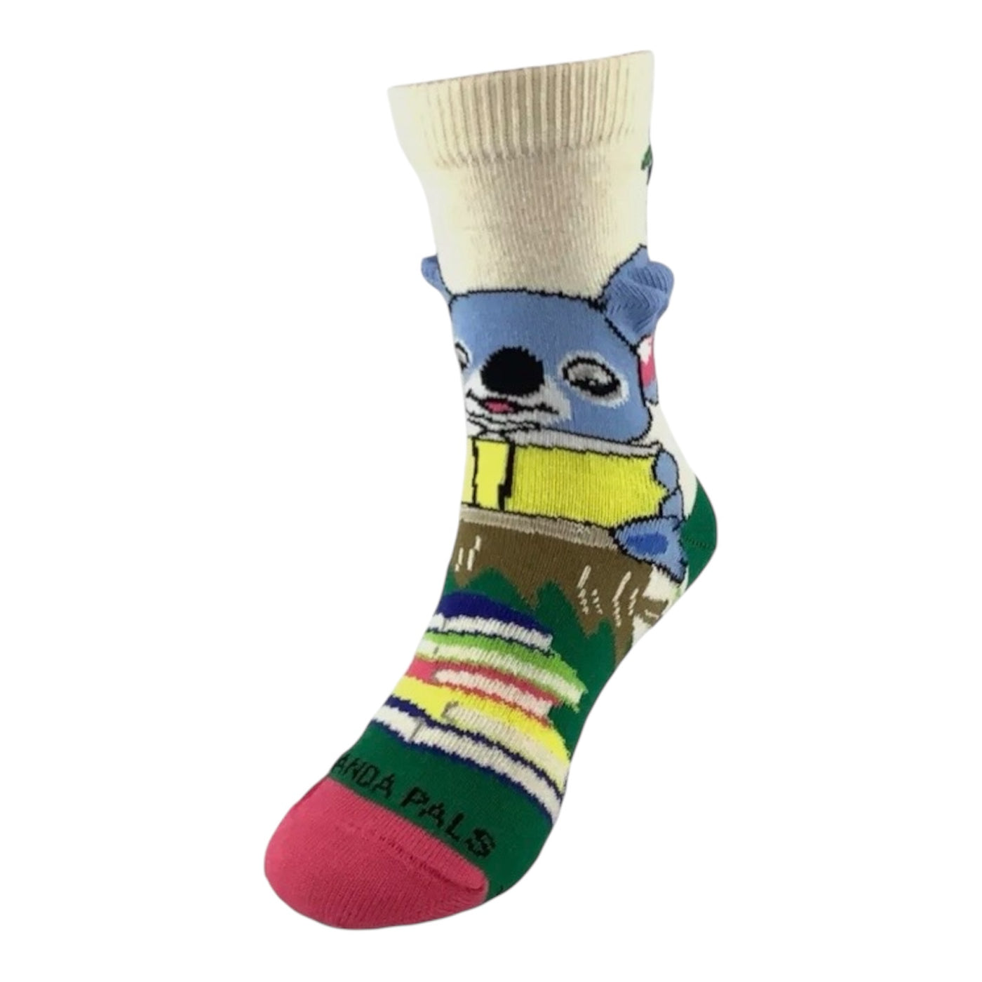 {"id":10089004171570,"title":"KOALA BEAR READING Unisex Kids Socks Kids Age 3-5 Shoe Size 7-12 SOCK PANDA Brand","handle":"koala-bear-reading-unisex-kids-socks-kids-age-3-5-shoe-size-7-12-sock-panda-brand","description":"\u003cp\u003e\u003cspan\u003eKoala Reading a Book Socks - Kids Socks (Ages 3-5) Koalas are found in the eucalyptus forests of eastern Australia. They have grey fur with a cream-colored chest, and strong, clawed feet, perfect for living in the branches of trees! \u003c\/span\u003e\u003c\/p\u003e\n\u003cul\u003e\n\u003cli\u003e\u003cspan\u003e85% Peruvian Cotton, 10% Nylon, 5% Spandex \u003c\/span\u003e\u003c\/li\u003e\n\u003cli\u003e\u003cspan\u003e* Attention getting design - Exciting colors. \u003c\/span\u003e\u003c\/li\u003e\n\u003cli\u003e\u003cspan\u003e* Socks sure to inspire imagination! Boys and girls! \u003c\/span\u003e\u003c\/li\u003e\n\u003cli\u003e\u003cspan\u003e* High quality fabric that will not rip or tear - Very Comfortable \u003c\/span\u003e\u003c\/li\u003e\n\u003cli\u003e\u003cspan\u003e* Best if washed in cold water. \u003c\/span\u003e\u003c\/li\u003e\n\u003cli style=\"font-weight: bold;\"\u003e\u003cstrong\u003eWith your purchase, the Sock Panda donates socks to someone in need.\u003c\/strong\u003e\u003c\/li\u003e\n\u003c\/ul\u003e","published_at":"2026-01-18T22:11:16-05:00","created_at":"2026-01-18T22:07:04-05:00","vendor":"Novelty Socks And Slippers","type":"SOCKS","tags":[],"price":599,"price_min":599,"price_max":599,"available":true,"price_varies":false,"compare_at_price":null,"compare_at_price_min":0,"compare_at_price_max":0,"compare_at_price_varies":false,"variants":[{"id":50832458383666,"title":"Default Title","option1":"Default Title","option2":null,"option3":null,"sku":"Koalasm","requires_shipping":true,"taxable":false,"featured_image":null,"available":true,"name":"KOALA BEAR READING Unisex Kids Socks Kids Age 3-5 Shoe Size 7-12 SOCK PANDA Brand","public_title":null,"options":["Default Title"],"price":599,"weight":57,"compare_at_price":null,"inventory_management":"shopify","barcode":"196704963519","requires_selling_plan":false,"selling_plan_allocations":[]}],"images":["\/\/noveltysocksforless.com\/cdn\/shop\/files\/E7605EF0-9230-4D32-B5F7-86E9AE04291E.jpg?v=1768792034","\/\/noveltysocksforless.com\/cdn\/shop\/files\/89325B5C-E74B-482E-838C-D5A983A8F347.jpg?v=1768792034","\/\/noveltysocksforless.com\/cdn\/shop\/files\/292EFD23-152B-4DBA-AF9A-E9E40D98DB27.jpg?v=1768792034","\/\/noveltysocksforless.com\/cdn\/shop\/files\/E2F0F7CD-5845-493F-885D-5951406E8237.jpg?v=1768792034"],"featured_image":"\/\/noveltysocksforless.com\/cdn\/shop\/files\/E7605EF0-9230-4D32-B5F7-86E9AE04291E.jpg?v=1768792034","options":["Title"],"media":[{"alt":null,"id":43044489789746,"position":1,"preview_image":{"aspect_ratio":1.0,"height":1512,"width":1512,"src":"\/\/noveltysocksforless.com\/cdn\/shop\/files\/E7605EF0-9230-4D32-B5F7-86E9AE04291E.jpg?v=1768792034"},"aspect_ratio":1.0,"height":1512,"media_type":"image","src":"\/\/noveltysocksforless.com\/cdn\/shop\/files\/E7605EF0-9230-4D32-B5F7-86E9AE04291E.jpg?v=1768792034","width":1512},{"alt":null,"id":43044489756978,"position":2,"preview_image":{"aspect_ratio":1.0,"height":1512,"width":1512,"src":"\/\/noveltysocksforless.com\/cdn\/shop\/files\/89325B5C-E74B-482E-838C-D5A983A8F347.jpg?v=1768792034"},"aspect_ratio":1.0,"height":1512,"media_type":"image","src":"\/\/noveltysocksforless.com\/cdn\/shop\/files\/89325B5C-E74B-482E-838C-D5A983A8F347.jpg?v=1768792034","width":1512},{"alt":null,"id":43044489724210,"position":3,"preview_image":{"aspect_ratio":1.0,"height":1512,"width":1512,"src":"\/\/noveltysocksforless.com\/cdn\/shop\/files\/292EFD23-152B-4DBA-AF9A-E9E40D98DB27.jpg?v=1768792034"},"aspect_ratio":1.0,"height":1512,"media_type":"image","src":"\/\/noveltysocksforless.com\/cdn\/shop\/files\/292EFD23-152B-4DBA-AF9A-E9E40D98DB27.jpg?v=1768792034","width":1512},{"alt":null,"id":43044489691442,"position":4,"preview_image":{"aspect_ratio":1.0,"height":1512,"width":1512,"src":"\/\/noveltysocksforless.com\/cdn\/shop\/files\/E2F0F7CD-5845-493F-885D-5951406E8237.jpg?v=1768792034"},"aspect_ratio":1.0,"height":1512,"media_type":"image","src":"\/\/noveltysocksforless.com\/cdn\/shop\/files\/E2F0F7CD-5845-493F-885D-5951406E8237.jpg?v=1768792034","width":1512}],"requires_selling_plan":false,"selling_plan_groups":[],"content":"\u003cp\u003e\u003cspan\u003eKoala Reading a Book Socks - Kids Socks (Ages 3-5) Koalas are found in the eucalyptus forests of eastern Australia. They have grey fur with a cream-colored chest, and strong, clawed feet, perfect for living in the branches of trees! \u003c\/span\u003e\u003c\/p\u003e\n\u003cul\u003e\n\u003cli\u003e\u003cspan\u003e85% Peruvian Cotton, 10% Nylon, 5% Spandex \u003c\/span\u003e\u003c\/li\u003e\n\u003cli\u003e\u003cspan\u003e* Attention getting design - Exciting colors. \u003c\/span\u003e\u003c\/li\u003e\n\u003cli\u003e\u003cspan\u003e* Socks sure to inspire imagination! Boys and girls! \u003c\/span\u003e\u003c\/li\u003e\n\u003cli\u003e\u003cspan\u003e* High quality fabric that will not rip or tear - Very Comfortable \u003c\/span\u003e\u003c\/li\u003e\n\u003cli\u003e\u003cspan\u003e* Best if washed in cold water. \u003c\/span\u003e\u003c\/li\u003e\n\u003cli style=\"font-weight: bold;\"\u003e\u003cstrong\u003eWith your purchase, the Sock Panda donates socks to someone in need.\u003c\/strong\u003e\u003c\/li\u003e\n\u003c\/ul\u003e"}