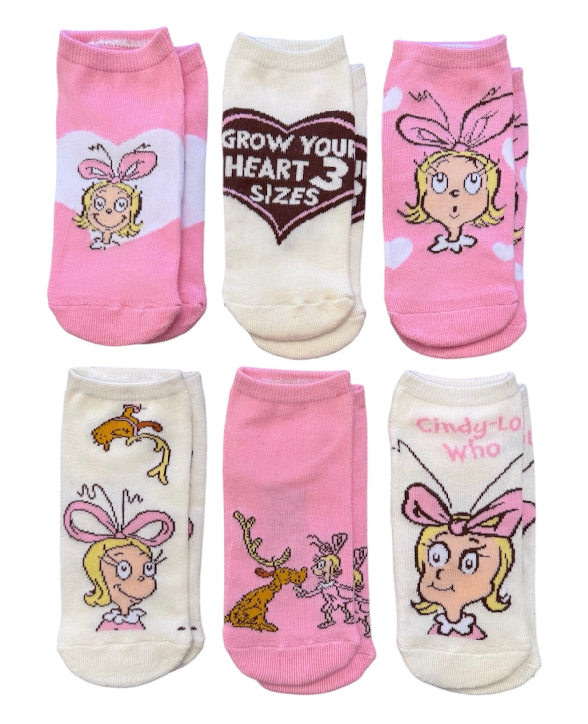DR. SEUSS HOW THE GRINCH STOLE CHRISTMAS Ladies 6 Pair Of VALENTINES DAY Soft Cushion Ankle Socks Shoe Size 5-8, Sock Size 9-11
