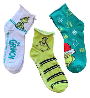 DR. SEUSS HOW THE GRINCH STOLE CHRISTMAS Ladies 3 Pair Of Socks BIOWORLD Brand