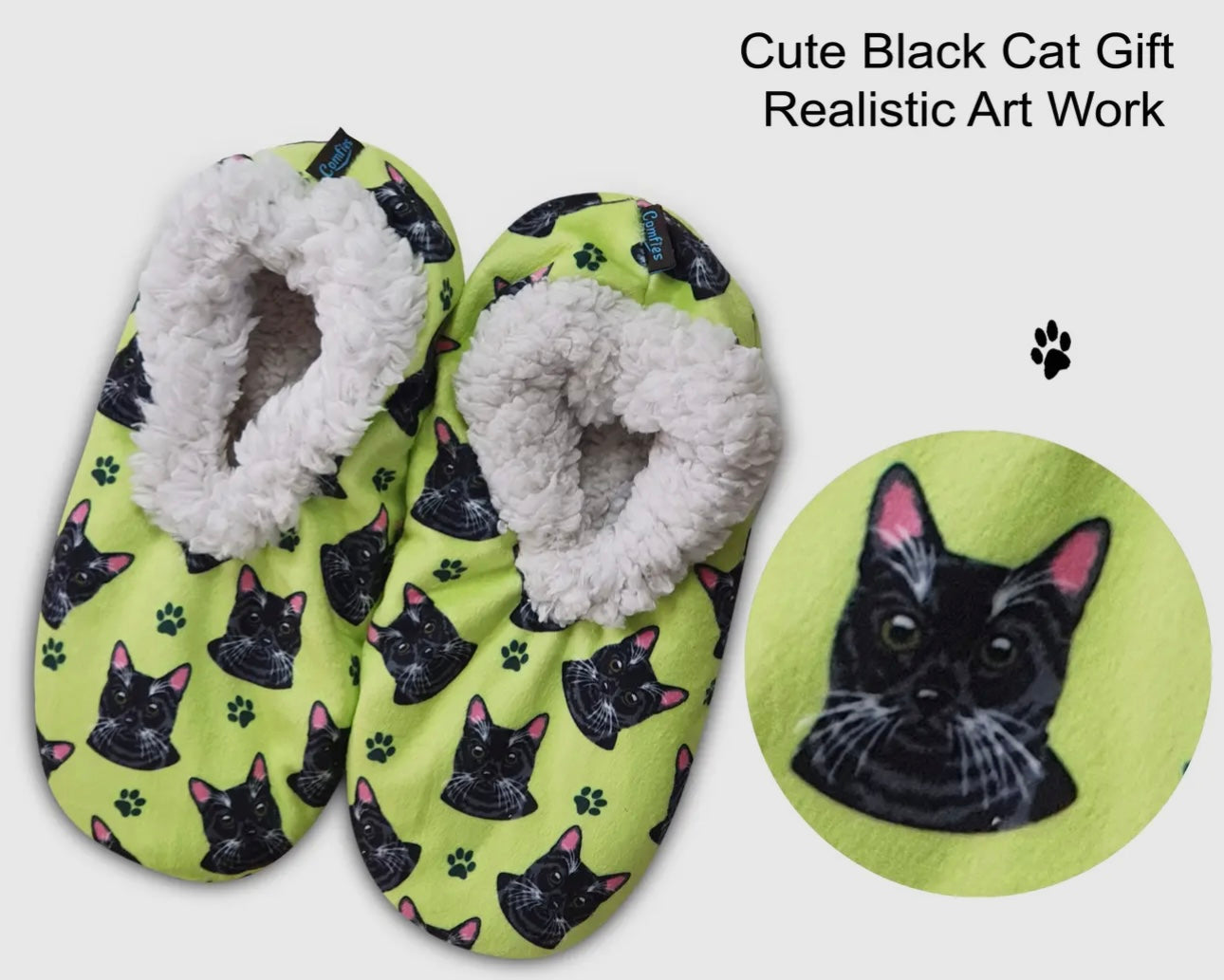 {"id":4725523087431,"title":"BLACK CAT Ladies Non-Slip Slippers COMFIES BRAND By E\u0026S Pets","handle":"comfies-brand-ladies-black-cat-non-skid-slippers-1","description":"\u003csection id=\"KEY_BENEFITS-section\" class=\"styles_infoGroupSection__bFZf8\"\u003e\n\u003cul\u003e\n\u003cli\u003eThese slippers are designed with original kitty-themed artwork for added personality.\u003c\/li\u003e\n\u003cli\u003eMade with ultra-soft, cloud-like plush fabric, these loungewear essentials deliver unbeatable comfort.\u003c\/li\u003e\n\u003cli\u003eDurable rubber grip dots on the bottom provide stability and prevent slips.\u003c\/li\u003e\n\u003cli\u003eThe convenience of a one-size-fits-most style is ideal for women’s shoe sizes from 5 to 11.\u003c\/li\u003e\n\u003cli\u003eBest of all, these slippers are easy to care for with machine-washable material that maintains its shape and color.\u003c\/li\u003e\n\u003c\/ul\u003e\n\u003c\/section\u003e\n\u003cp\u003e\u003cspan id=\"kib-truncation-7-focus-target\" class=\"kib-truncation-focus-target\" data-testid=\"truncation-target\" tabindex=\"-1\"\u003e\u003c\/span\u003e\u003c\/p\u003e\n\u003csection class=\"styles_infoGroupSection__bFZf8\"\u003e\n\u003cp\u003eTreat your feet to ultimate comfort and cuteness with E\u0026amp;S PETS Black Cat Slippers. These slippers feature charming furbaby-inspired artwork, designed by a top U.S. illustrator, to add personality to your loungewear. What an effortless way to show off your love for animals in a fun and heartwarming way. These slippers are purr-fect for cozy mornings, lazy weekends, and unwinding after a long day. They make a great gift for pet parents everywhere with convenient one-size-fits-all sizing. Plus, they’re machine washable and they resist losing shape or fading after each wash.\u003c\/p\u003e\n\u003c\/section\u003e\n\u003cp\u003eCOMFIES BRAND Ladies NON-SKID SLIPPERS, Super Soft!\u003c\/p\u003e\n\u003cp\u003e\u003cstrong\u003eBLACK CAT\u003c\/strong\u003e\u003c\/p\u003e\n\u003cp\u003eOne Size Fits Most\u003c\/p\u003e\n\u003cp\u003e100% Polyester, MACHINE WASHABLE\u003c\/p\u003e\n\u003cp\u003e\u003cstrong\u003eBy E\u0026amp;S Pets, *** PART OF THE PROCEEDS OF THESE SLIPPERS SUPPORT ANIMAL SHELTERS TO FIND NEW HOMES FOR PETS IN NEED ***\u003c\/strong\u003e\u003c\/p\u003e","published_at":"2020-06-30T12:05:21-04:00","created_at":"2020-06-30T12:05:21-04:00","vendor":"Novelty Socks And Slippers","type":"SLIPPERS","tags":[],"price":1499,"price_min":1499,"price_max":1499,"available":true,"price_varies":false,"compare_at_price":null,"compare_at_price_min":0,"compare_at_price_max":0,"compare_at_price_varies":false,"variants":[{"id":32414653710407,"title":"Default Title","option1":"Default Title","option2":null,"option3":null,"sku":"282-5","requires_shipping":true,"taxable":false,"featured_image":null,"available":true,"name":"BLACK CAT Ladies Non-Slip Slippers COMFIES BRAND By E\u0026S Pets","public_title":null,"options":["Default Title"],"price":1499,"weight":156,"compare_at_price":null,"inventory_management":"shopify","barcode":"616316787957","requires_selling_plan":false,"selling_plan_allocations":[]}],"images":["\/\/noveltysocksforless.com\/cdn\/shop\/files\/D864BF03-311F-4C3B-B0C2-46CBB346C42B.jpg?v=1763599341","\/\/noveltysocksforless.com\/cdn\/shop\/files\/0953E778-3D56-4910-8044-2816EA587BBA.jpg?v=1763599341","\/\/noveltysocksforless.com\/cdn\/shop\/files\/968400E4-4698-4244-B76E-C29E9438A980.jpg?v=1763599341","\/\/noveltysocksforless.com\/cdn\/shop\/files\/D22B9BD0-4623-43E6-82BC-6BDBB7F48A9B.jpg?v=1763599341","\/\/noveltysocksforless.com\/cdn\/shop\/files\/4D113DC1-1F89-43D8-8E35-DA24467D97D2.jpg?v=1763599341","\/\/noveltysocksforless.com\/cdn\/shop\/files\/445EC482-AB75-4D63-AFAC-AB33F96FB22F.jpg?v=1763599341","\/\/noveltysocksforless.com\/cdn\/shop\/products\/image_4f9062cc-8e35-4a76-a0d1-e7b60fd65d13.jpg?v=1763599341"],"featured_image":"\/\/noveltysocksforless.com\/cdn\/shop\/files\/D864BF03-311F-4C3B-B0C2-46CBB346C42B.jpg?v=1763599341","options":["Title"],"media":[{"alt":"BLACK CAT Ladies Non-Slip Slippers COMFIES BRAND By E\u0026S Pets - Novelty Socks And Slippers","id":42661365154098,"position":1,"preview_image":{"aspect_ratio":0.803,"height":1056,"width":848,"src":"\/\/noveltysocksforless.com\/cdn\/shop\/files\/D864BF03-311F-4C3B-B0C2-46CBB346C42B.jpg?v=1763599341"},"aspect_ratio":0.803,"height":1056,"media_type":"image","src":"\/\/noveltysocksforless.com\/cdn\/shop\/files\/D864BF03-311F-4C3B-B0C2-46CBB346C42B.jpg?v=1763599341","width":848},{"alt":"BLACK CAT Ladies Non-Slip Slippers COMFIES BRAND By E\u0026S Pets - Novelty Socks And Slippers","id":42637956546866,"position":2,"preview_image":{"aspect_ratio":1.249,"height":1033,"width":1290,"src":"\/\/noveltysocksforless.com\/cdn\/shop\/files\/0953E778-3D56-4910-8044-2816EA587BBA.jpg?v=1763599341"},"aspect_ratio":1.249,"height":1033,"media_type":"image","src":"\/\/noveltysocksforless.com\/cdn\/shop\/files\/0953E778-3D56-4910-8044-2816EA587BBA.jpg?v=1763599341","width":1290},{"alt":"BLACK CAT Ladies Non-Slip Slippers COMFIES BRAND By E\u0026S Pets - Novelty Socks And Slippers","id":42637956514098,"position":3,"preview_image":{"aspect_ratio":1.22,"height":1057,"width":1290,"src":"\/\/noveltysocksforless.com\/cdn\/shop\/files\/968400E4-4698-4244-B76E-C29E9438A980.jpg?v=1763599341"},"aspect_ratio":1.22,"height":1057,"media_type":"image","src":"\/\/noveltysocksforless.com\/cdn\/shop\/files\/968400E4-4698-4244-B76E-C29E9438A980.jpg?v=1763599341","width":1290},{"alt":"BLACK CAT Ladies Non-Slip Slippers COMFIES BRAND By E\u0026S Pets - Novelty Socks And Slippers","id":42637956481330,"position":4,"preview_image":{"aspect_ratio":1.275,"height":961,"width":1225,"src":"\/\/noveltysocksforless.com\/cdn\/shop\/files\/D22B9BD0-4623-43E6-82BC-6BDBB7F48A9B.jpg?v=1763599341"},"aspect_ratio":1.275,"height":961,"media_type":"image","src":"\/\/noveltysocksforless.com\/cdn\/shop\/files\/D22B9BD0-4623-43E6-82BC-6BDBB7F48A9B.jpg?v=1763599341","width":1225},{"alt"