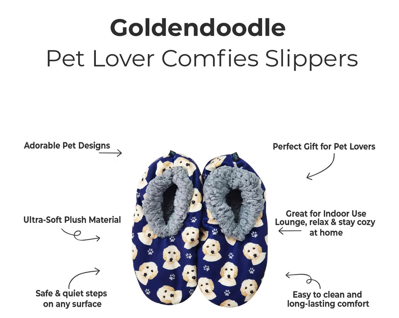 {"id":4607492161607,"title":"GOLDENDOODLE Dog Ladies Non-Slip Slippers COMFIES BRAND By E\u0026S Pets","handle":"comfies-brand-ladies-goldendoodle-dog-non-skid-slippers","description":"\u003csection id=\"KEY_BENEFITS-section\" class=\"styles_infoGroupSection__bFZf8\"\u003e\n\u003cul\u003e\n\u003cli\u003eThese slippers are designed with original pup-themed artwork for a unique touch.\u003c\/li\u003e\n\u003cli\u003eSink into ultra-soft, cloud-like plush fabric for unbeatable comfort.\u003c\/li\u003e\n\u003cli\u003eDurable rubber grip dots on the bottom provide stability on hardwood or tile.\u003c\/li\u003e\n\u003cli\u003eFor convenience, the one-size-fits-most style is ideal for women’s shoe sizes from 5 to 11, making them a perfect gift.\u003c\/li\u003e\n\u003cli\u003eYou’ll love that these slippers are easy to care for, with machine-washable material that maintains its shape and color.\u003c\/li\u003e\n\u003cli\u003e\u003cstrong\u003eBy E\u0026amp;S Pets \u003c\/strong\u003e\u003c\/li\u003e\n\u003cli\u003e\u003cstrong\u003e**** PART OF THE PROCEEDS OF THESE SLIPPERS SUPPORT ANIMAL SHELTERS TO FIND NEW HOMES FOR PETS IN NEED****\u003c\/strong\u003e\u003c\/li\u003e\n\u003c\/ul\u003e\n\u003c\/section\u003e\n\u003cp\u003e\u003cspan id=\"kib-truncation-6-focus-target\" class=\"kib-truncation-focus-target\" data-testid=\"truncation-target\" tabindex=\"-1\"\u003e\u003c\/span\u003e\u003c\/p\u003e\n\u003csection class=\"styles_infoGroupSection__bFZf8\"\u003e\n\u003cp\u003eTreat your feet to the ultimate comfort and cuteness with E\u0026amp;S PETS Goldendoodle Slippers. Designed by a top U.S. illustrator, these slippers feature charming pup-inspired artwork that adds personality to your loungewear. Plus, these slippers are designed with a convenient one-size-fits-all nature to fit women’s shoe sizes five through eleven. They even have a non-slip, gripper bottom for confidence. Best of all, these slippers are machine washable for convenience. Show your love for animals in a fun and heartwarming way.\u003c\/p\u003e\n\u003c\/section\u003e\n\u003cp\u003eCOMFIES Ladies NON-SKID SLIPPERS, Super Soft!\u003c\/p\u003e\n\u003cp\u003eOne Size Fits Most\u003c\/p\u003e\n\u003cp\u003e\u003cstrong\u003eGOLDENDOODLE DOG\u003c\/strong\u003e\u003c\/p\u003e\n\u003cp\u003e100% Polyester, MACHINE WASHABLE\u003c\/p\u003e\n\u003cp\u003e \u003c\/p\u003e","published_at":"2020-04-30T21:40:55-04:00","created_at":"2020-04-30T21:40:56-04:00","vendor":"Novelty Socks And Slippers","type":"SLIPPERS","tags":[],"price":1499,"price_min":1499,"price_max":1499,"available":true,"price_varies":false,"compare_at_price":null,"compare_at_price_min":0,"compare_at_price_max":0,"compare_at_price_varies":false,"variants":[{"id":32148424458311,"title":"Default Title","option1":"Default Title","option2":null,"option3":null,"sku":"281-134","requires_shipping":true,"taxable":false,"featured_image":null,"available":true,"name":"GOLDENDOODLE Dog Ladies Non-Slip Slippers COMFIES BRAND By E\u0026S Pets","public_title":null,"options":["Default Title"],"price":1499,"weight":142,"compare_at_price":null,"inventory_management":"shopify","barcode":"616316787926","requires_selling_plan":false,"selling_plan_allocations":[]}],"images":["\/\/noveltysocksforless.com\/cdn\/shop\/files\/0D2E7702-2B95-4F57-A77F-088BFB32BE11.jpg?v=1763604554","\/\/noveltysocksforless.com\/cdn\/shop\/files\/E5F451B8-FCC9-475D-9B00-84AC80C13857.jpg?v=1763604554","\/\/noveltysocksforless.com\/cdn\/shop\/files\/E46BD45D-6D2B-49E1-A493-55FE930C097C.jpg?v=1763604554","\/\/noveltysocksforless.com\/cdn\/shop\/files\/9A543ECB-1769-4515-BCA9-10B2C1A8EF38.jpg?v=1763604554","\/\/noveltysocksforless.com\/cdn\/shop\/files\/FB57B1CD-820B-4265-B35D-A019B71AC315.jpg?v=1763604554","\/\/noveltysocksforless.com\/cdn\/shop\/files\/7F3B7188-3EBF-42F5-9E80-7A2B52F31715.jpg?v=1763604554","\/\/noveltysocksforless.com\/cdn\/shop\/files\/B071F0EC-0A4A-488D-B9DD-936726953BE8.jpg?v=1763604554","\/\/noveltysocksforless.com\/cdn\/shop\/files\/0C4AB154-3BAA-4ED3-A64C-970FE6F81EF7.jpg?v=1763604554","\/\/noveltysocksforless.com\/cdn\/shop\/files\/965959A3-3428-474C-88E3-599228827DCE.jpg?v=1763604554","\/\/noveltysocksforless.com\/cdn\/shop\/products\/image_b6cf2a36-9f67-46db-aba8-7875eb74a4a1.jpg?v=1763604554"],"featured_image":"\/\/noveltysocksforless.com\/cdn\/shop\/files\/0D2E7702-2B95-4F57-A77F-088BFB32BE11.jpg?v=1763604554","options":["Title"],"media":[{"alt":"GOLDENDOODLE Dog Ladies Non-Slip Slippers COMFIES BRAND By E\u0026S Pets - Novelty Socks And Slippers","id":42661649187122,"position":1,"preview_image":{"aspect_ratio":0.778,"height":1083,"width":843,"src":"\/\/noveltysocksforless.com\/cdn\/shop\/files\/0D2E7702-2B95-4F57-A77F-088BFB32BE11.jpg?v=1763604554"},"aspect_ratio":0.778,"height":1083,"media_type":"image","src":"\/\/noveltysocksforless.com\/cdn\/shop\/files\/0D2E7702-2B95-4F57-A77F-088BFB32BE11.jpg?v=1763604554","width":843},{"alt":"GOLDENDOODLE Dog Ladies Non-Slip Slippers COMFIES BRAND By E\u0026S Pets - Novelty Socks And Slippers","id":42661643157810,"position":2,"preview_image":{"aspect_ratio":1.254,"height":1029,"width":1290,"src":"\/\/noveltysocksforless.com\/cdn\/shop\/files\/E5F451B8-FCC9-475D-9B00-84AC80C13857.jpg?v=1763604554"},"aspect_ratio":1.254,"height":1029,"media_type":"image","src":"\/\/noveltysocksforless.com\/cdn\/shop\/files\/E5F451B8-FCC9-475D-9B00-84AC80C13857.jpg?v=1763604554","width":1290},{"alt":"GOLDENDOODLE Dog Ladies Non-Slip Slippers COMFIES BRAND By E\u0026S Pets - Novelty Socks And Slippers","id":42661643190578,"position":3,"preview_image":{"aspect_ratio":0.888,"height":1453,"width":1290,"src":"\/\/noveltysocksforless.com\/cdn\/shop\/files\/E46BD45D-6D2B-49E1-A493-55FE930C097C.jpg?v=1763604554"},"aspect_ratio":0.888,"height":1453,"media_type":"image","src":"\/\/noveltysocksforless.com\/cdn\/shop\/files\/E46BD45D-6D2B-49E1-A493-55FE930C097C.jpg?v=1763604554","width":1290},{"alt":"COMFIES BRAND Ladies GOLDENDOODLE DOG Non-Skid Slippers - Novelty Socks for Less",