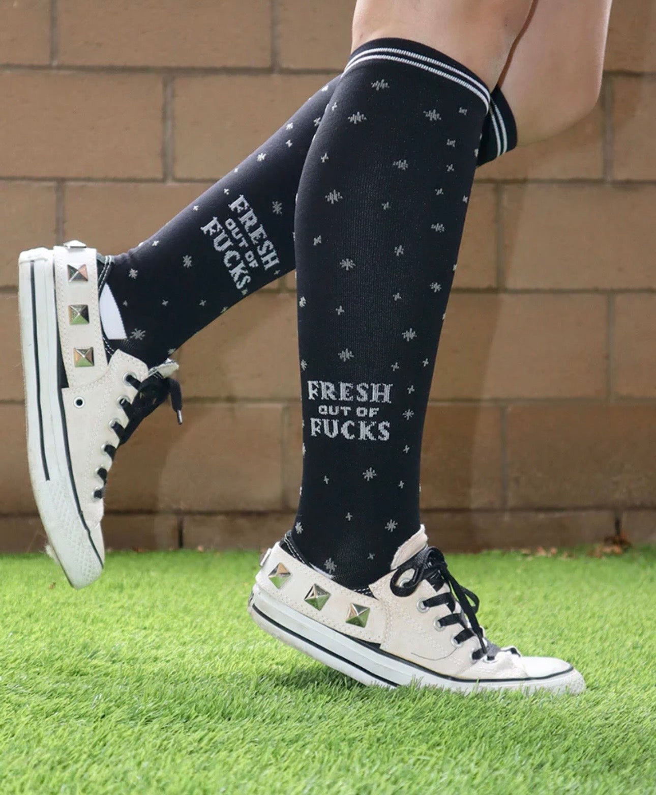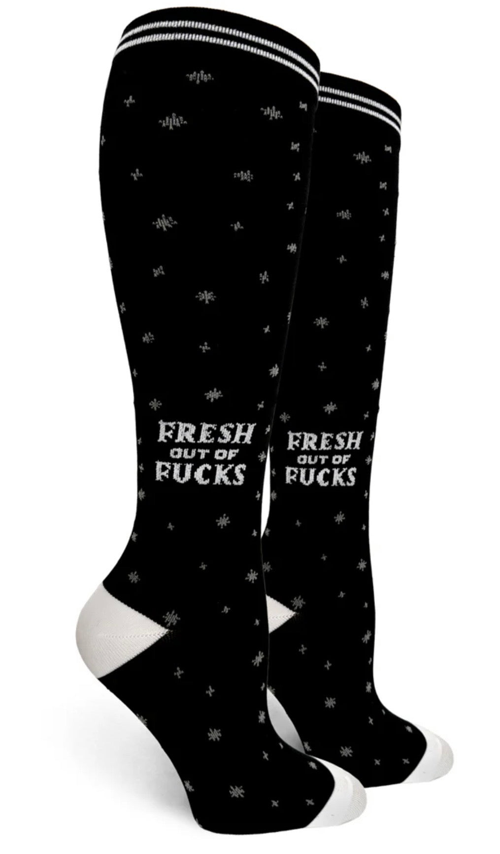 {"id":10066926731570,"title":"FRESH OUT OF FUCKS Ladies 15-20 mmHg Compression Socks GROOVY THINGS Brand","handle":"fresh-out-of-fucks-ladies-15-20-mmhg-compression-socks-groovy-things-brand","description":"\u003cp\u003e\u003cspan\u003eWe’ve all been \u003cstrong\u003eFresh Out Of Fucks\u003c\/strong\u003e at some point, now we have the socks to show it ;)\u003c\/span\u003e\u003c\/p\u003e\n\u003cp\u003eGROOVY THINGS CO Brand Ladies FRESH OUT OF FUCKS Compression Socks\u003c\/p\u003e\n\u003cp\u003eOur 15–20 mmHg compression socks provide just the right amount of support to boost circulation, reduce fatigue, and keep your legs feeling energized all day. Whether you're on your feet, in the air, or at your desk, they can help prevent swelling and discomfort without sacrificing comfort or style.\u003c\/p\u003e\n\u003cul\u003e\n\u003cli\u003e15-20 MMHG Compression Level\u003c\/li\u003e\n\u003cli\u003e70% Nylon, 22% Elastic, 3% Spandex\u003c\/li\u003e\n\u003cli\u003eOne size fits most, Women’s Knee High length socks\u003cbr\u003e\n\u003c\/li\u003e\n\u003cli\u003eFits up to an 18 inch calf\u003c\/li\u003e\n\u003cli\u003eMachine wash cold, Tumble dry medium, Do not bleach\u003c\/li\u003e\n\u003c\/ul\u003e","published_at":"2025-12-15T08:40:02-05:00","created_at":"2025-12-15T08:36:26-05:00","vendor":"Novelty Socks And Slippers","type":"Compression Socks","tags":[],"price":2699,"price_min":2699,"price_max":2699,"available":true,"price_varies":false,"compare_at_price":null,"compare_at_price_min":0,"compare_at_price_max":0,"compare_at_price_varies":false,"variants":[{"id":50732233326898,"title":"Default Title","option1":"Default Title","option2":null,"option3":null,"sku":null,"requires_shipping":true,"taxable":false,"featured_image":null,"available":true,"name":"FRESH OUT OF FUCKS Ladies 15-20 mmHg Compression Socks GROOVY THINGS Brand","public_title":null,"options":["Default Title"],"price":2699,"weight":57,"compare_at_price":null,"inventory_management":"shopify","barcode":null,"requires_selling_plan":false,"selling_plan_allocations":[]}],"images":["\/\/noveltysocksforless.com\/cdn\/shop\/files\/E0410380-BB2E-42B6-B699-D6070923B579.jpg?v=1765805808","\/\/noveltysocksforless.com\/cdn\/shop\/files\/8A774614-0053-46AF-B193-4E1845FDB0B2.jpg?v=1765805860","\/\/noveltysocksforless.com\/cdn\/shop\/files\/921B041B-75DB-491E-965A-44B550DB63BD.jpg?v=1765805860","\/\/noveltysocksforless.com\/cdn\/shop\/files\/D2337DBF-76E7-4FBD-A0F0-60127F0C8A40.jpg?v=1765805860"],"featured_image":"\/\/noveltysocksforless.com\/cdn\/shop\/files\/E0410380-BB2E-42B6-B699-D6070923B579.jpg?v=1765805808","options":["Title"],"media":[{"alt":null,"id":42843190067506,"position":1,"preview_image":{"aspect_ratio":0.586,"height":1731,"width":1015,"src":"\/\/noveltysocksforless.com\/cdn\/shop\/files\/E0410380-BB2E-42B6-B699-D6070923B579.jpg?v=1765805808"},"aspect_ratio":0.586,"height":1731,"media_type":"image","src":"\/\/noveltysocksforless.com\/cdn\/shop\/files\/E0410380-BB2E-42B6-B699-D6070923B579.jpg?v=1765805808","width":1015},{"alt":null,"id":42843191116082,"position":2,"preview_image":{"aspect_ratio":0.767,"height":1681,"width":1290,"src":"\/\/noveltysocksforless.com\/cdn\/shop\/files\/8A774614-0053-46AF-B193-4E1845FDB0B2.jpg?v=1765805860"},"aspect_ratio":0.767,"height":1681,"media_type":"image","src":"\/\/noveltysocksforless.com\/cdn\/shop\/files\/8A774614-0053-46AF-B193-4E1845FDB0B2.jpg?v=1765805860","width":1290},{"alt":null,"id":42843191083314,"position":3,"preview_image":{"aspect_ratio":0.77,"height":1676,"width":1290,"src":"\/\/noveltysocksforless.com\/cdn\/shop\/files\/921B041B-75DB-491E-965A-44B550DB63BD.jpg?v=1765805860"},"aspect_ratio":0.77,"height":1676,"media_type":"image","src":"\/\/noveltysocksforless.com\/cdn\/shop\/files\/921B041B-75DB-491E-965A-44B550DB63BD.jpg?v=1765805860","width":1290},{"alt":null,"id":42843191050546,"position":4,"preview_image":{"aspect_ratio":0.826,"height":1562,"width":1290,"src":"\/\/noveltysocksforless.com\/cdn\/shop\/files\/D2337DBF-76E7-4FBD-A0F0-60127F0C8A40.jpg?v=1765805860"},"aspect_ratio":0.826,"height":1562,"media_type":"image","src":"\/\/noveltysocksforless.com\/cdn\/shop\/files\/D2337DBF-76E7-4FBD-A0F0-60127F0C8A40.jpg?v=1765805860","width":1290}],"requires_selling_plan":false,"selling_plan_groups":[],"content":"\u003cp\u003e\u003cspan\u003eWe’ve all been \u003cstrong\u003eFresh Out Of Fucks\u003c\/strong\u003e at some point, now we have the socks to show it ;)\u003c\/span\u003e\u003c\/p\u003e\n\u003cp\u003eGROOVY THINGS CO Brand Ladies FRESH OUT OF FUCKS Compression Socks\u003c\/p\u003e\n\u003cp\u003eOur 15–20 mmHg compression socks provide just the right amount of support to boost circulation, reduce fatigue, and keep your legs feeling energized all day. Whether you're on your feet, in the air, or at your desk, they can help prevent swelling and discomfort without sacrificing comfort or style.\u003c\/p\u003e\n\u003cul\u003e\n\u003cli\u003e15-20 MMHG Compression Level\u003c\/li\u003e\n\u003cli\u003e70% Nylon, 22% Elastic, 3% Spandex\u003c\/li\u003e\n\u003cli\u003eOne size fits most, Women’s Knee High length socks\u003cbr\u003e\n\u003c\/li\u003e\n\u003cli\u003eFits up to an 18 inch calf\u003c\/li\u003e\n\u003cli\u003eMachine wash cold, Tumble dry medium, Do not bleach\u003c\/li\u003e\n\u003c\/ul\u003e"}
