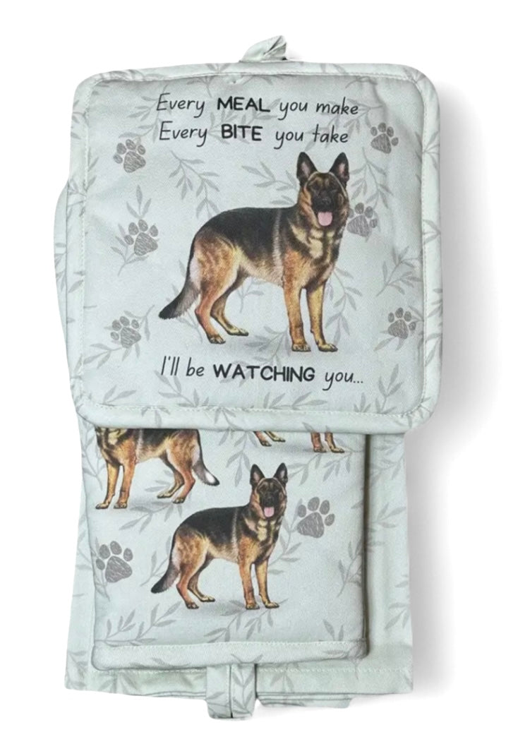 GERMAN SHEPHERD 3 Piece Oven Mitt & Tea Towel Set By E&S Pets