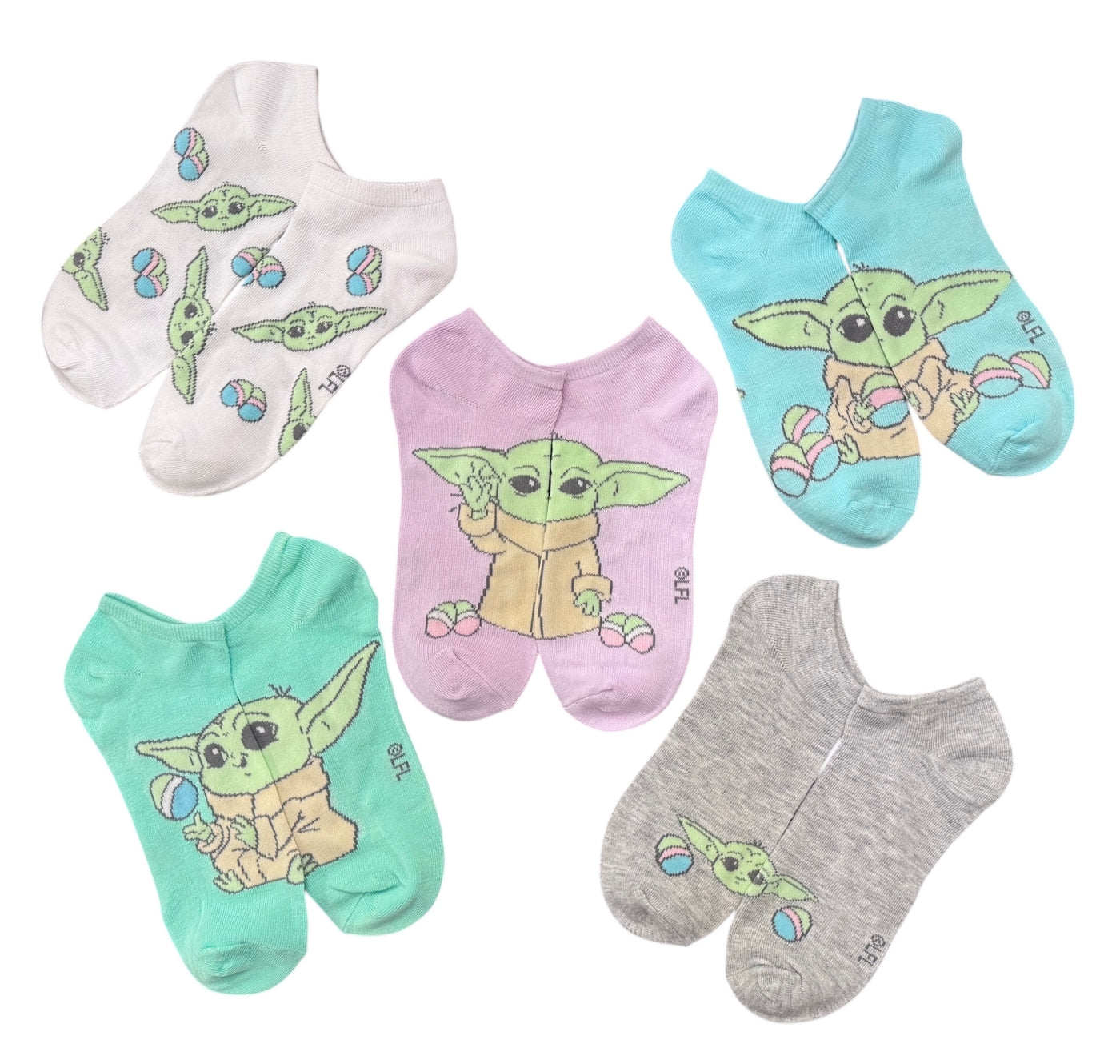 DISNEY STAR WARS THE MANDALORIAN Ladies 5 Pair Of BABY YODA EASTER No Show Socks Shoe Size 4-10, Sock Size 9-11