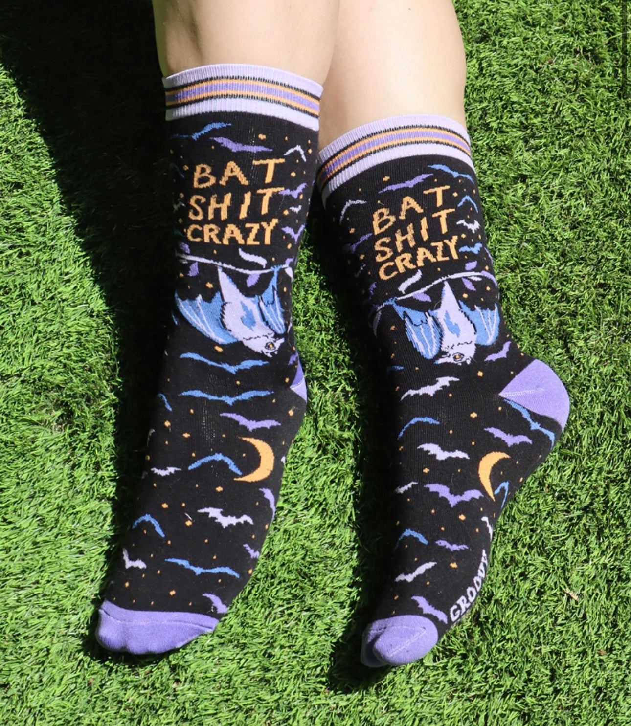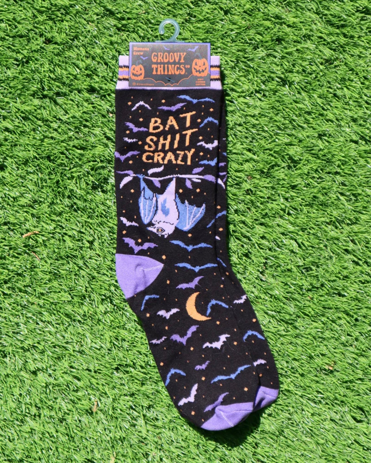 {"id":9731671556402,"title":"BAT SHIT CRAZY Ladies Socks GROOVY THINGS Brand","handle":"bat-shit-crazy-ladies-socks-groovy-things-brand-1","description":"\u003cp\u003e\u003cspan\u003eJust a little Bat Shit Crazy 🦇🙃🖤\u003c\/span\u003e\u003c\/p\u003e\n\u003cp\u003eGROOVY THINGS Co Brand LadiesBATS \u0026amp; MOON Crew Socks\u003cbr\u003e\u003cbr\u003e\u003cspan\u003e- 43% combed Cotton, 27% Polyester, 27% Nylon, 3% spandex\u003c\/span\u003e\u003cbr\u003e\u003cspan\u003e- One size fits most, Women’s Crew length socks\u003c\/span\u003e\u003cbr\u003e\u003cspan\u003e- Machine wash cold, Tumble dry medium, Do not bleach\u003c\/span\u003e\u003c\/p\u003e\n\u003cp\u003e\u003cspan\u003e-HAVE A SUPER GROOVY DAY!\u003c\/span\u003e\u003c\/p\u003e","published_at":"2025-08-07T14:54:51-04:00","created_at":"2024-12-23T17:26:44-05:00","vendor":"Novelty Socks And Slippers","type":"SOCKS","tags":[],"price":1299,"price_min":1299,"price_max":1299,"available":true,"price_varies":false,"compare_at_price":null,"compare_at_price_min":0,"compare_at_price_max":0,"compare_at_price_varies":false,"variants":[{"id":49632193216818,"title":"Default Title","option1":"Default Title","option2":null,"option3":null,"sku":"Gtcsw133","requires_shipping":true,"taxable":false,"featured_image":null,"available":true,"name":"BAT SHIT CRAZY Ladies Socks GROOVY THINGS Brand","public_title":null,"options":["Default Title"],"price":1299,"weight":57,"compare_at_price":null,"inventory_management":"shopify","barcode":"786468792656","requires_selling_plan":false,"selling_plan_allocations":[]}],"images":["\/\/noveltysocksforless.com\/cdn\/shop\/files\/33A99415-990B-467F-92CD-946B943490CC.webp?v=1734992918","\/\/noveltysocksforless.com\/cdn\/shop\/files\/ABB40776-BC75-4F65-B11E-8994A2731530.jpg?v=1757093938","\/\/noveltysocksforless.com\/cdn\/shop\/files\/FE043500-F141-491E-9F98-D0CE2ADF2CB3.jpg?v=1757093938","\/\/noveltysocksforless.com\/cdn\/shop\/files\/9A85BE23-414B-4F88-8834-0D24C64E49C8.jpg?v=1757093938"],"featured_image":"\/\/noveltysocksforless.com\/cdn\/shop\/files\/33A99415-990B-467F-92CD-946B943490CC.webp?v=1734992918","options":["Title"],"media":[{"alt":"GROOVY THINGS Co. Brand Ladies BAT SHIT CRAZY Socks - Novelty Socks And Slippers","id":40330371399986,"position":1,"preview_image":{"aspect_ratio":0.751,"height":1065,"width":800,"src":"\/\/noveltysocksforless.com\/cdn\/shop\/files\/33A99415-990B-467F-92CD-946B943490CC.webp?v=1734992918"},"aspect_ratio":0.751,"height":1065,"media_type":"image","src":"\/\/noveltysocksforless.com\/cdn\/shop\/files\/33A99415-990B-467F-92CD-946B943490CC.webp?v=1734992918","width":800},{"alt":"GROOVY THINGS Brand Ladies BAT SHIT CRAZY Socks - Novelty Socks And Slippers","id":42120135115058,"position":2,"preview_image":{"aspect_ratio":0.869,"height":1485,"width":1290,"src":"\/\/noveltysocksforless.com\/cdn\/shop\/files\/ABB40776-BC75-4F65-B11E-8994A2731530.jpg?v=1757093938"},"aspect_ratio":0.869,"height":1485,"media_type":"image","src":"\/\/noveltysocksforless.com\/cdn\/shop\/files\/ABB40776-BC75-4F65-B11E-8994A2731530.jpg?v=1757093938","width":1290},{"alt":"GROOVY THINGS Brand Ladies BAT SHIT CRAZY Socks - Novelty Socks And Slippers","id":42120135082290,"position":3,"preview_image":{"aspect_ratio":0.803,"height":1606,"width":1290,"src":"\/\/noveltysocksforless.com\/cdn\/shop\/files\/FE043500-F141-491E-9F98-D0CE2ADF2CB3.jpg?v=1757093938"},"aspect_ratio":0.803,"height":1606,"media_type":"image","src":"\/\/noveltysocksforless.com\/cdn\/shop\/files\/FE043500-F141-491E-9F98-D0CE2ADF2CB3.jpg?v=1757093938","width":1290},{"alt":"GROOVY THINGS Brand Ladies BAT SHIT CRAZY Socks - Novelty Socks And Slippers","id":42120135049522,"position":4,"preview_image":{"aspect_ratio":1.071,"height":1204,"width":1290,"src":"\/\/noveltysocksforless.com\/cdn\/shop\/files\/9A85BE23-414B-4F88-8834-0D24C64E49C8.jpg?v=1757093938"},"aspect_ratio":1.071,"height":1204,"media_type":"image","src":"\/\/noveltysocksforless.com\/cdn\/shop\/files\/9A85BE23-414B-4F88-8834-0D24C64E49C8.jpg?v=1757093938","width":1290}],"requires_selling_plan":false,"selling_plan_groups":[],"content":"\u003cp\u003e\u003cspan\u003eJust a little Bat Shit Crazy 🦇🙃🖤\u003c\/span\u003e\u003c\/p\u003e\n\u003cp\u003eGROOVY THINGS Co Brand LadiesBATS \u0026amp; MOON Crew Socks\u003cbr\u003e\u003cbr\u003e\u003cspan\u003e- 43% combed Cotton, 27% Polyester, 27% Nylon, 3% spandex\u003c\/span\u003e\u003cbr\u003e\u003cspan\u003e- One size fits most, Women’s Crew length socks\u003c\/span\u003e\u003cbr\u003e\u003cspan\u003e- Machine wash cold, Tumble dry medium, Do not bleach\u003c\/span\u003e\u003c\/p\u003e\n\u003cp\u003e\u003cspan\u003e-HAVE A SUPER GROOVY DAY!\u003c\/span\u003e\u003c\/p\u003e"}
