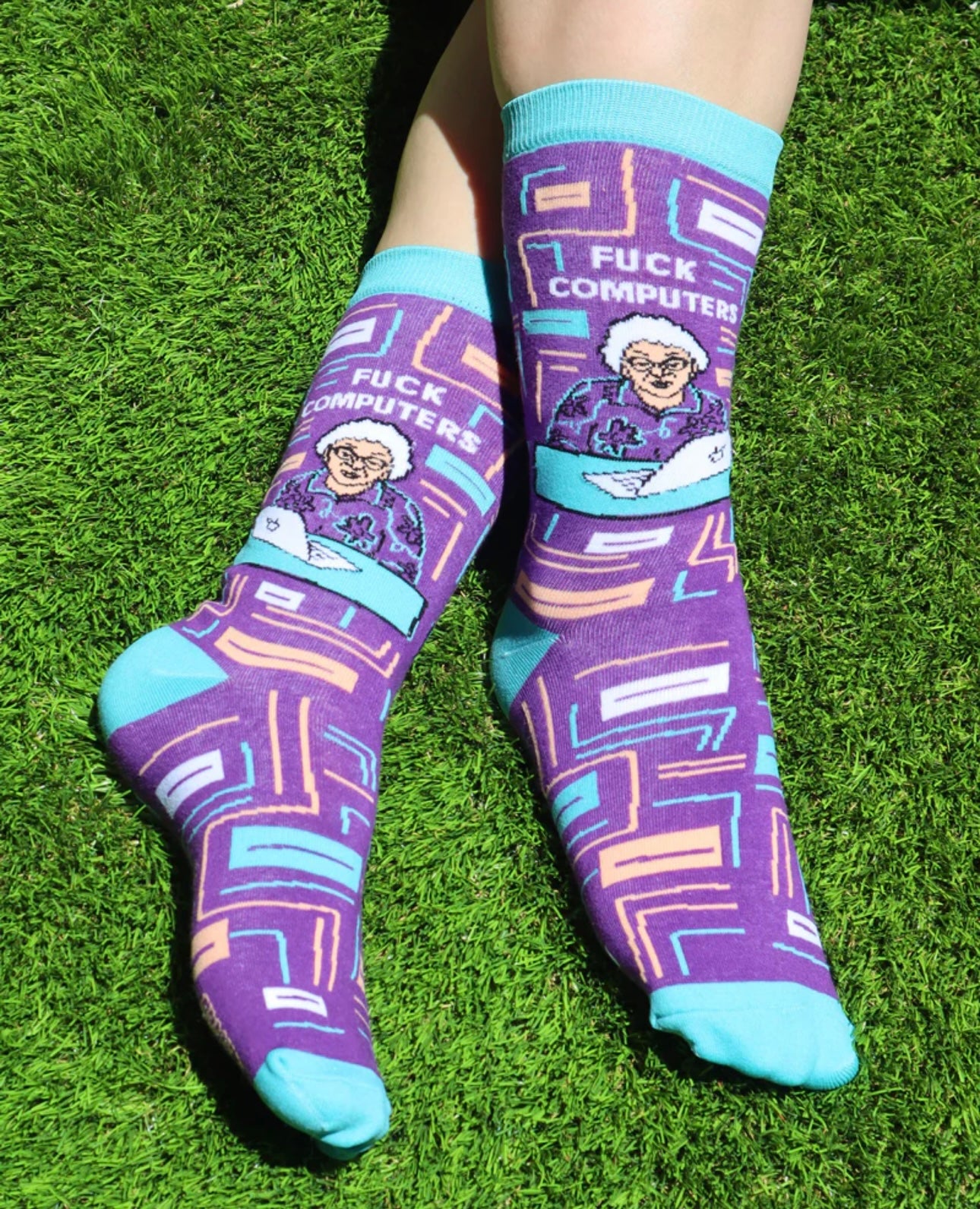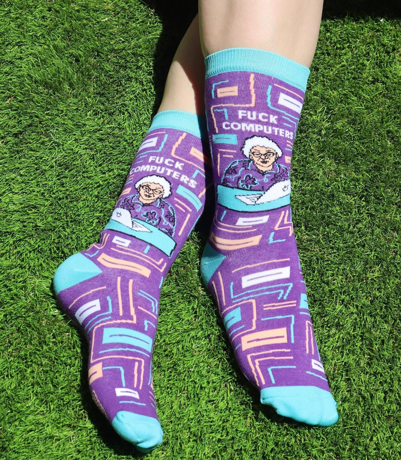 {"id":9724948054322,"title":"FUCK COMPUTERS Ladies Socks GROOVY THINGS Brand","handle":"fuck-computers-ladies-socks-groovy-things-brand-1","description":"\u003cp\u003eFuckkkk Computers 👵 💻\u003c\/p\u003e\n\u003cp\u003eGROOVY THINGS Co. Brand Ladies Crew Socks\u003c\/p\u003e\n\u003cul\u003e\n\u003cli\u003e60% Combed Cotton, 26% Polyester, 11% Nylon, 3% Spandex\u003cbr\u003e- One size fits most, Women’s crew length socks\u003cbr\u003e- Machine wash cold, Tumble dry medium, Do not bleach\u003cbr\u003e- Made with super soft combed cotton for supreme comfort\u003c\/li\u003e\n\u003cli\u003eHAVE A SUPER GROOVY DAY!\u003c\/li\u003e\n\u003c\/ul\u003e","published_at":"2024-12-16T20:16:34-05:00","created_at":"2024-12-16T20:05:46-05:00","vendor":"Novelty Socks And Slippers","type":"SOCKS","tags":[],"price":1299,"price_min":1299,"price_max":1299,"available":true,"price_varies":false,"compare_at_price":null,"compare_at_price_min":0,"compare_at_price_max":0,"compare_at_price_varies":false,"variants":[{"id":49614834860338,"title":"Default Title","option1":"Default Title","option2":null,"option3":null,"sku":"GTCSW172","requires_shipping":true,"taxable":false,"featured_image":null,"available":true,"name":"FUCK COMPUTERS Ladies Socks GROOVY THINGS Brand","public_title":null,"options":["Default Title"],"price":1299,"weight":57,"compare_at_price":null,"inventory_management":"shopify","barcode":"666945346698","requires_selling_plan":false,"selling_plan_allocations":[]}],"images":["\/\/noveltysocksforless.com\/cdn\/shop\/files\/CAEAA93E-F16F-48D1-8F11-9FCBA2C1B47C.jpg?v=1734398198","\/\/noveltysocksforless.com\/cdn\/shop\/files\/FC489DB2-9750-4FAB-8627-1B0B1A3A2651.jpg?v=1757091255","\/\/noveltysocksforless.com\/cdn\/shop\/files\/E90D8791-10C4-4ED9-A776-005DFD27D750.jpg?v=1757091255","\/\/noveltysocksforless.com\/cdn\/shop\/files\/5D97DC85-0744-413E-B0F9-5415FD1EDE54.jpg?v=1757091255","\/\/noveltysocksforless.com\/cdn\/shop\/files\/466D03BE-8611-41A0-838C-47629C187414.jpg?v=1757091255"],"featured_image":"\/\/noveltysocksforless.com\/cdn\/shop\/files\/CAEAA93E-F16F-48D1-8F11-9FCBA2C1B47C.jpg?v=1734398198","options":["Title"],"media":[{"alt":"GROOVY THINGS Co. Brand Ladies FUCK COMPUTERS Socks - Novelty Socks And Slippers","id":40295222968626,"position":1,"preview_image":{"aspect_ratio":0.723,"height":1150,"width":831,"src":"\/\/noveltysocksforless.com\/cdn\/shop\/files\/CAEAA93E-F16F-48D1-8F11-9FCBA2C1B47C.jpg?v=1734398198"},"aspect_ratio":0.723,"height":1150,"media_type":"image","src":"\/\/noveltysocksforless.com\/cdn\/shop\/files\/CAEAA93E-F16F-48D1-8F11-9FCBA2C1B47C.jpg?v=1734398198","width":831},{"alt":"GROOVY THINGS Brand Ladies FUCK COMPUTERS Socks - Novelty Socks And Slippers","id":42119899545906,"position":2,"preview_image":{"aspect_ratio":0.81,"height":1592,"width":1290,"src":"\/\/noveltysocksforless.com\/cdn\/shop\/files\/FC489DB2-9750-4FAB-8627-1B0B1A3A2651.jpg?v=1757091255"},"aspect_ratio":0.81,"height":1592,"media_type":"image","src":"\/\/noveltysocksforless.com\/cdn\/shop\/files\/FC489DB2-9750-4FAB-8627-1B0B1A3A2651.jpg?v=1757091255","width":1290},{"alt":"GROOVY THINGS Brand Ladies FUCK COMPUTERS Socks - Novelty Socks And Slippers","id":42119899480370,"position":3,"preview_image":{"aspect_ratio":0.772,"height":1672,"width":1290,"src":"\/\/noveltysocksforless.com\/cdn\/shop\/files\/E90D8791-10C4-4ED9-A776-005DFD27D750.jpg?v=1757091255"},"aspect_ratio":0.772,"height":1672,"media_type":"image","src":"\/\/noveltysocksforless.com\/cdn\/shop\/files\/E90D8791-10C4-4ED9-A776-005DFD27D750.jpg?v=1757091255","width":1290},{"alt":"GROOVY THINGS Brand Ladies FUCK COMPUTERS Socks - Novelty Socks And Slippers","id":42119899447602,"position":4,"preview_image":{"aspect_ratio":0.859,"height":1489,"width":1279,"src":"\/\/noveltysocksforless.com\/cdn\/shop\/files\/5D97DC85-0744-413E-B0F9-5415FD1EDE54.jpg?v=1757091255"},"aspect_ratio":0.859,"height":1489,"media_type":"image","src":"\/\/noveltysocksforless.com\/cdn\/shop\/files\/5D97DC85-0744-413E-B0F9-5415FD1EDE54.jpg?v=1757091255","width":1279},{"alt":"GROOVY THINGS Co. Brand Ladies FUCK COMPUTERS Socks - Novelty Socks And Slippers","id":41794749268274,"position":5,"preview_image":{"aspect_ratio":0.871,"height":1653,"width":1440,"src":"\/\/noveltysocksforless.com\/cdn\/shop\/files\/466D03BE-8611-41A0-838C-47629C187414.jpg?v=1757091255"},"aspect_ratio":0.871,"height":1653,"media_type":"image","src":"\/\/noveltysocksforless.com\/cdn\/shop\/files\/466D03BE-8611-41A0-838C-47629C187414.jpg?v=1757091255","width":1440}],"requires_selling_plan":false,"selling_plan_groups":[],"content":"\u003cp\u003eFuckkkk Computers 👵 💻\u003c\/p\u003e\n\u003cp\u003eGROOVY THINGS Co. Brand Ladies Crew Socks\u003c\/p\u003e\n\u003cul\u003e\n\u003cli\u003e60% Combed Cotton, 26% Polyester, 11% Nylon, 3% Spandex\u003cbr\u003e- One size fits most, Women’s crew length socks\u003cbr\u003e- Machine wash cold, Tumble dry medium, Do not bleach\u003cbr\u003e- Made with super soft combed cotton for supreme comfort\u003c\/li\u003e\n\u003cli\u003eHAVE A SUPER GROOVY DAY!\u003c\/li\u003e\n\u003c\/ul\u003e"}