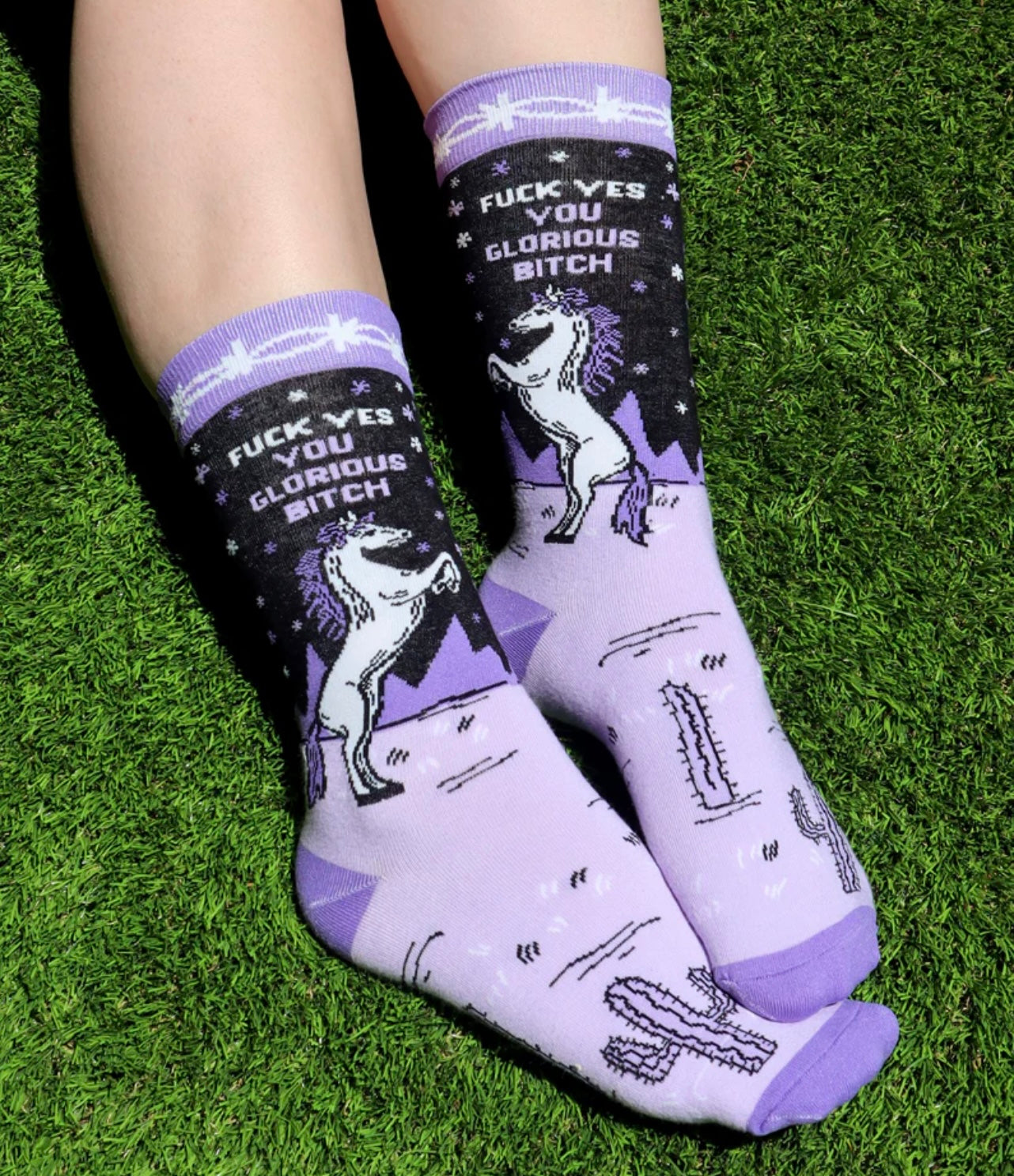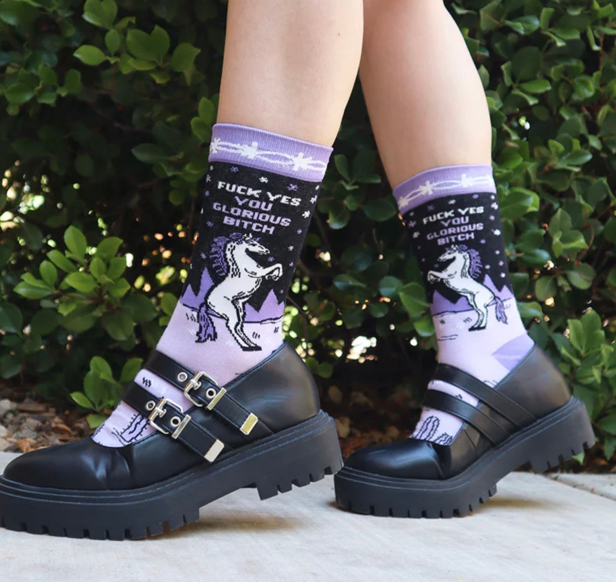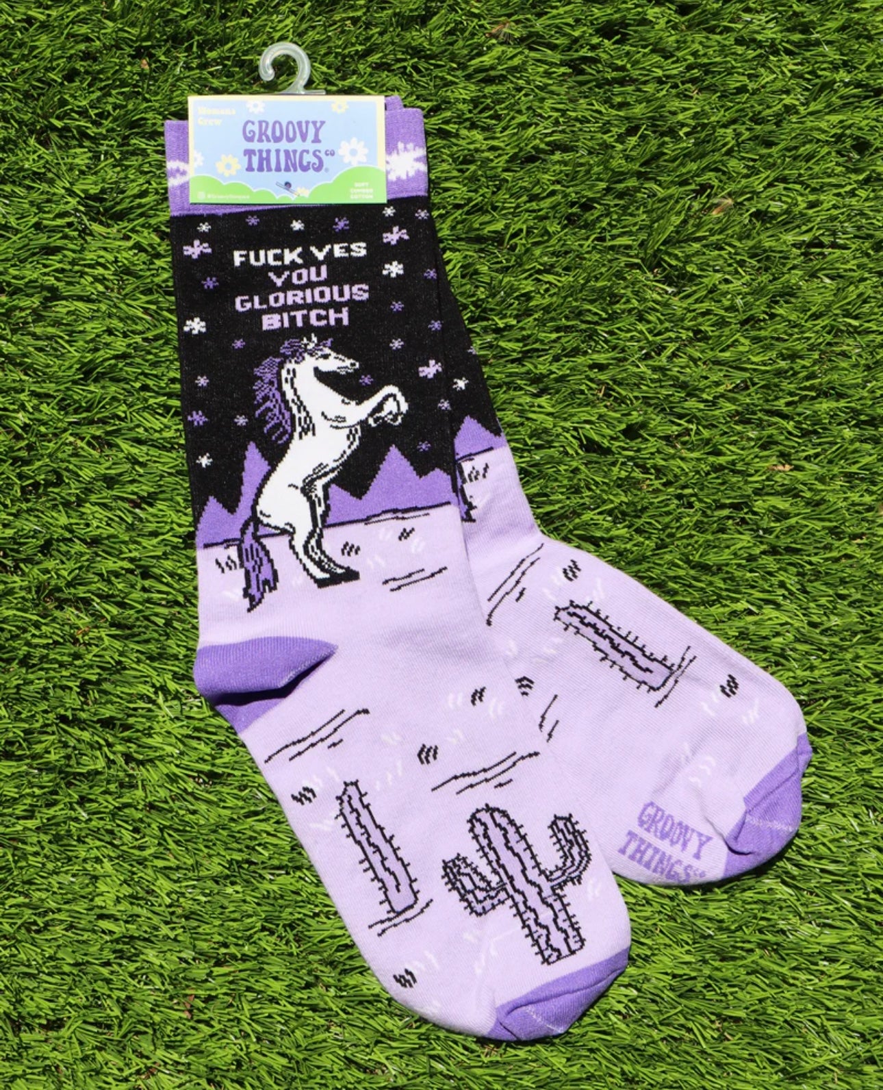 {"id":9711970550066,"title":"FUCK YES YOU GLORIOUS BITCH Ladies Socks GROOVY THINGS Brand","handle":"fuck-yes-you-glorious-bitch-ladies-socks-groovy-things-brand-2","description":"\u003cp\u003eA Glorious Bitch is Who I Am 🦄 🖤\u003c\/p\u003e\n\u003cp\u003eGROOVY THINGS CO BRAND LADIES FUCK YES YOU GLORIOUS BITCH\u003c\/p\u003e\n\u003cp\u003e- 60% Combed Cotton, 26% Polyester, 11% Nylon, 3% Spandex\u003cbr data-mce-fragment=\"1\"\u003e- One size fits most, Women’s crew length socks\u003cbr data-mce-fragment=\"1\"\u003e- Machine wash cold, Tumble dry medium, Do not bleach\u003cbr data-mce-fragment=\"1\"\u003e- Made with super soft combed cotton for supreme comfort\u003c\/p\u003e","published_at":"2025-06-03T10:57:14-04:00","created_at":"2024-11-28T14:38:26-05:00","vendor":"Novelty Socks And Slippers","type":"SOCKS","tags":[],"price":1299,"price_min":1299,"price_max":1299,"available":true,"price_varies":false,"compare_at_price":null,"compare_at_price_min":0,"compare_at_price_max":0,"compare_at_price_varies":false,"variants":[{"id":49571500949810,"title":"Default Title","option1":"Default Title","option2":null,"option3":null,"sku":"Gtcsw167","requires_shipping":true,"taxable":false,"featured_image":null,"available":true,"name":"FUCK YES YOU GLORIOUS BITCH Ladies Socks GROOVY THINGS Brand","public_title":null,"options":["Default Title"],"price":1299,"weight":57,"compare_at_price":null,"inventory_management":"shopify","barcode":"666945346490","requires_selling_plan":false,"selling_plan_allocations":[]}],"images":["\/\/noveltysocksforless.com\/cdn\/shop\/files\/57CAD783-EA42-4738-A5E3-7F13AA265295.jpg?v=1732822859","\/\/noveltysocksforless.com\/cdn\/shop\/files\/B840F615-5D3C-40A3-A47C-D8DB7340A1F4.jpg?v=1755220581","\/\/noveltysocksforless.com\/cdn\/shop\/files\/8671B001-3FF9-4B9B-986E-345327CC67FB.jpg?v=1757095222","\/\/noveltysocksforless.com\/cdn\/shop\/files\/390D0DB0-B5C0-452E-BBB5-81B521362E9A.jpg?v=1757095222","\/\/noveltysocksforless.com\/cdn\/shop\/files\/35F22847-AA9E-43F9-9DC4-80F220DDB007.jpg?v=1757095222"],"featured_image":"\/\/noveltysocksforless.com\/cdn\/shop\/files\/57CAD783-EA42-4738-A5E3-7F13AA265295.jpg?v=1732822859","options":["Title"],"media":[{"alt":"GROOVY THINGS CO. Brand Ladies FUCK YES YOU GLORIOUS BITCH Socks - Novelty Socks And Slippers","id":40181886648626,"position":1,"preview_image":{"aspect_ratio":0.68,"height":1142,"width":777,"src":"\/\/noveltysocksforless.com\/cdn\/shop\/files\/57CAD783-EA42-4738-A5E3-7F13AA265295.jpg?v=1732822859"},"aspect_ratio":0.68,"height":1142,"media_type":"image","src":"\/\/noveltysocksforless.com\/cdn\/shop\/files\/57CAD783-EA42-4738-A5E3-7F13AA265295.jpg?v=1732822859","width":777},{"alt":"GROOVY THINGS Co. Brand FUCK YES YOU GLORIOUS BITCH 40 Oz. Stainless Steel Tumbler - Novelty Socks And Slippers","id":42004337688882,"position":2,"preview_image":{"aspect_ratio":1.604,"height":586,"width":940,"src":"\/\/noveltysocksforless.com\/cdn\/shop\/files\/B840F615-5D3C-40A3-A47C-D8DB7340A1F4.jpg?v=1755220581"},"aspect_ratio":1.604,"height":586,"media_type":"image","src":"\/\/noveltysocksforless.com\/cdn\/shop\/files\/B840F615-5D3C-40A3-A47C-D8DB7340A1F4.jpg?v=1755220581","width":940},{"alt":"GROOVY THINGS Brand Ladies FUCK YES YOU GLORIOUS BITCH Socks - Novelty Socks And Slippers","id":42120246493490,"position":3,"preview_image":{"aspect_ratio":0.862,"height":1487,"width":1282,"src":"\/\/noveltysocksforless.com\/cdn\/shop\/files\/8671B001-3FF9-4B9B-986E-345327CC67FB.jpg?v=1757095222"},"aspect_ratio":0.862,"height":1487,"media_type":"image","src":"\/\/noveltysocksforless.com\/cdn\/shop\/files\/8671B001-3FF9-4B9B-986E-345327CC67FB.jpg?v=1757095222","width":1282},{"alt":"GROOVY THINGS Brand Ladies FUCK YES YOU GLORIOUS BITCH Socks - Novelty Socks And Slippers","id":42120246460722,"position":4,"preview_image":{"aspect_ratio":0.81,"height":1592,"width":1290,"src":"\/\/noveltysocksforless.com\/cdn\/shop\/files\/390D0DB0-B5C0-452E-BBB5-81B521362E9A.jpg?v=1757095222"},"aspect_ratio":0.81,"height":1592,"media_type":"image","src":"\/\/noveltysocksforless.com\/cdn\/shop\/files\/390D0DB0-B5C0-452E-BBB5-81B521362E9A.jpg?v=1757095222","width":1290},{"alt":"GROOVY THINGS Brand Ladies FUCK YES YOU GLORIOUS BITCH Socks - Novelty Socks And Slippers","id":42120246427954,"position":5,"preview_image":{"aspect_ratio":1.059,"height":1173,"width":1242,"src":"\/\/noveltysocksforless.com\/cdn\/shop\/files\/35F22847-AA9E-43F9-9DC4-80F220DDB007.jpg?v=1757095222"},"aspect_ratio":1.059,"height":1173,"media_type":"image","src":"\/\/noveltysocksforless.com\/cdn\/shop\/files\/35F22847-AA9E-43F9-9DC4-80F220DDB007.jpg?v=1757095222","width":1242}],"requires_selling_plan":false,"selling_plan_groups":[],"content":"\u003cp\u003eA Glorious Bitch is Who I Am 🦄 🖤\u003c\/p\u003e\n\u003cp\u003eGROOVY THINGS CO BRAND LADIES FUCK YES YOU GLORIOUS BITCH\u003c\/p\u003e\n\u003cp\u003e- 60% Combed Cotton, 26% Polyester, 11% Nylon, 3% Spandex\u003cbr data-mce-fragment=\"1\"\u003e- One size fits most, Women’s crew length socks\u003cbr data-mce-fragment=\"1\"\u003e- Machine wash cold, Tumble dry medium, Do not bleach\u003cbr data-mce-fragment=\"1\"\u003e- Made with super soft combed cotton for supreme comfort\u003c\/p\u003e"}