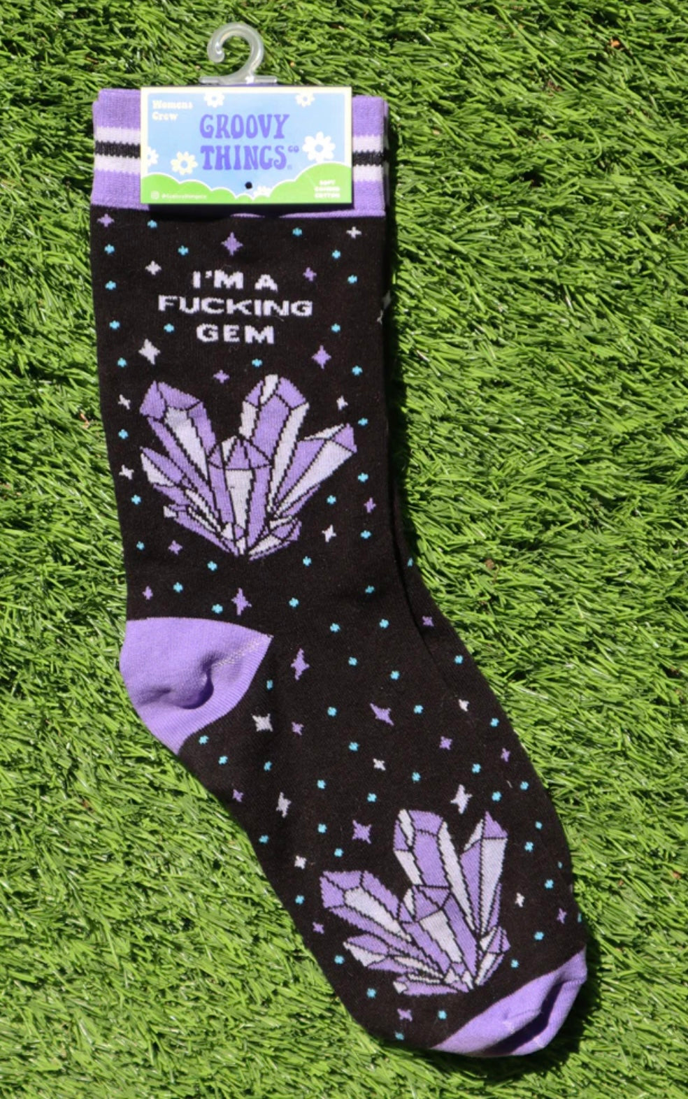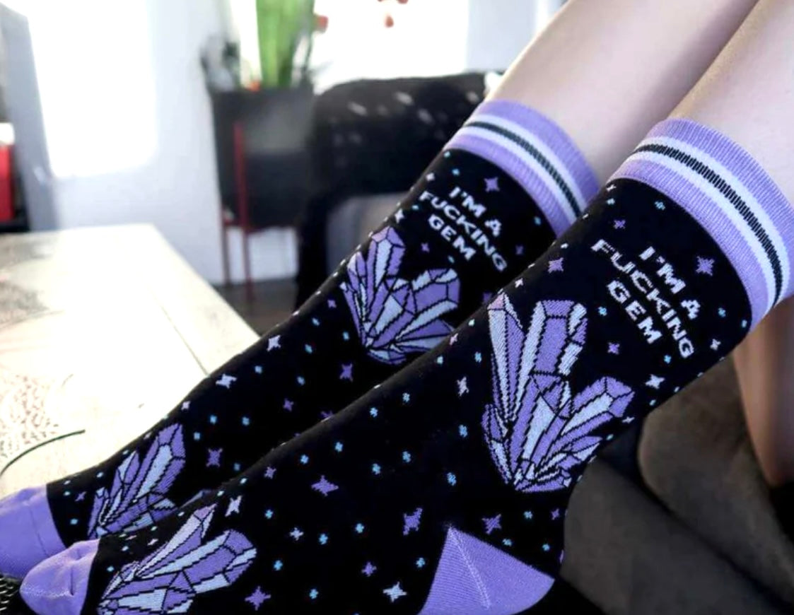 {"id":9724345844018,"title":"I’M A FUCKING GEM Ladies Socks GROOVY THINGS Brand","handle":"i-m-a-fucking-gem-ladies-socks-groovy-things-brand-1","description":"\u003cp data-mce-fragment=\"1\"\u003eI''m a fucking gem, don't forget it 💎🖤\u003c\/p\u003e\n\u003cp data-mce-fragment=\"1\"\u003eGROOVY THINGS Co. Brand Ladies Crew Socks\u003c\/p\u003e\n\u003cul\u003e\n\u003cli data-mce-fragment=\"1\"\u003e\n\u003cspan data-mce-fragment=\"1\"\u003e43% Combed Cotton, 27% Polyester, 27% Nylon, 3% spandex\u003c\/span\u003e\u003cbr data-mce-fragment=\"1\"\u003e\u003cspan data-mce-fragment=\"1\"\u003e- One size fits most, Women’s Crew length socks\u003c\/span\u003e\u003cbr data-mce-fragment=\"1\"\u003e\u003cspan data-mce-fragment=\"1\"\u003e- Machine wash cold, Tumble dry medium, Do not bleach\u003c\/span\u003e\u003cbr data-mce-fragment=\"1\"\u003e\u003cspan data-mce-fragment=\"1\"\u003e- Made with super soft combed cotton for supreme comfort\u003c\/span\u003e\n\u003c\/li\u003e\n\u003cli data-mce-fragment=\"1\"\u003e\u003cspan data-mce-fragment=\"1\"\u003eHAVE A SUPER GROOVY DAY!\u003c\/span\u003e\u003c\/li\u003e\n\u003c\/ul\u003e","published_at":"2025-07-17T15:23:49-04:00","created_at":"2024-12-16T09:29:01-05:00","vendor":"Novelty Socks And Slippers","type":"SOCKS","tags":[],"price":1299,"price_min":1299,"price_max":1299,"available":true,"price_varies":false,"compare_at_price":null,"compare_at_price_min":0,"compare_at_price_max":0,"compare_at_price_varies":false,"variants":[{"id":49613404045618,"title":"Default Title","option1":"Default Title","option2":null,"option3":null,"sku":"GTCSW166","requires_shipping":true,"taxable":false,"featured_image":null,"available":true,"name":"I’M A FUCKING GEM Ladies Socks GROOVY THINGS Brand","public_title":null,"options":["Default Title"],"price":1299,"weight":57,"compare_at_price":null,"inventory_management":"shopify","barcode":"645707159615","requires_selling_plan":false,"selling_plan_allocations":[]}],"images":["\/\/noveltysocksforless.com\/cdn\/shop\/files\/7A100CC4-4A13-4422-9959-08FA0D0A0A88.jpg?v=1734359379","\/\/noveltysocksforless.com\/cdn\/shop\/files\/DC27D229-8D4A-4B96-8FF0-C97B6EBA8870.jpg?v=1743797575","\/\/noveltysocksforless.com\/cdn\/shop\/files\/800C8A7F-B7D3-45D7-91DD-2F09D87A90DB.jpg?v=1757103042","\/\/noveltysocksforless.com\/cdn\/shop\/files\/423D748F-FDEC-4EC2-9179-D83181DE3A56.jpg?v=1757103042","\/\/noveltysocksforless.com\/cdn\/shop\/files\/4198613D-A205-4B0C-B36D-CFBABF1FD36B.jpg?v=1757103042"],"featured_image":"\/\/noveltysocksforless.com\/cdn\/shop\/files\/7A100CC4-4A13-4422-9959-08FA0D0A0A88.jpg?v=1734359379","options":["Title"],"media":[{"alt":"GROOVY THINGS Co. Brand Ladies I’M A FUCKING GEM Socks - Novelty Socks And Slippers","id":40293171757362,"position":1,"preview_image":{"aspect_ratio":0.685,"height":1161,"width":795,"src":"\/\/noveltysocksforless.com\/cdn\/shop\/files\/7A100CC4-4A13-4422-9959-08FA0D0A0A88.jpg?v=1734359379"},"aspect_ratio":0.685,"height":1161,"media_type":"image","src":"\/\/noveltysocksforless.com\/cdn\/shop\/files\/7A100CC4-4A13-4422-9959-08FA0D0A0A88.jpg?v=1734359379","width":795},{"alt":"GROOVY THINGS Co. Brand Ladies I’M A FUCKING GEM Socks - Novelty Socks And Slippers","id":41208708530482,"position":2,"preview_image":{"aspect_ratio":1.291,"height":870,"width":1123,"src":"\/\/noveltysocksforless.com\/cdn\/shop\/files\/DC27D229-8D4A-4B96-8FF0-C97B6EBA8870.jpg?v=1743797575"},"aspect_ratio":1.291,"height":870,"media_type":"image","src":"\/\/noveltysocksforless.com\/cdn\/shop\/files\/DC27D229-8D4A-4B96-8FF0-C97B6EBA8870.jpg?v=1743797575","width":1123},{"alt":"GROOVY THINGS Brand Ladies I’M A FUCKING GEM Socks - Novelty Socks And Slippers","id":42120766751026,"position":3,"preview_image":{"aspect_ratio":0.836,"height":1532,"width":1281,"src":"\/\/noveltysocksforless.com\/cdn\/shop\/files\/800C8A7F-B7D3-45D7-91DD-2F09D87A90DB.jpg?v=1757103042"},"aspect_ratio":0.836,"height":1532,"media_type":"image","src":"\/\/noveltysocksforless.com\/cdn\/shop\/files\/800C8A7F-B7D3-45D7-91DD-2F09D87A90DB.jpg?v=1757103042","width":1281},{"alt":"GROOVY THINGS Brand Ladies I’M A FUCKING GEM Socks - Novelty Socks And Slippers","id":42120766718258,"position":4,"preview_image":{"aspect_ratio":0.626,"height":1572,"width":984,"src":"\/\/noveltysocksforless.com\/cdn\/shop\/files\/423D748F-FDEC-4EC2-9179-D83181DE3A56.jpg?v=1757103042"},"aspect_ratio":0.626,"height":1572,"media_type":"image","src":"\/\/noveltysocksforless.com\/cdn\/shop\/files\/423D748F-FDEC-4EC2-9179-D83181DE3A56.jpg?v=1757103042","width":984},{"alt":"GROOVY THINGS Brand Ladies I’M A FUCKING GEM Socks - Novelty Socks And Slippers","id":42120766685490,"position":5,"preview_image":{"aspect_ratio":0.883,"height":1422,"width":1256,"src":"\/\/noveltysocksforless.com\/cdn\/shop\/files\/4198613D-A205-4B0C-B36D-CFBABF1FD36B.jpg?v=1757103042"},"aspect_ratio":0.883,"height":1422,"media_type":"image","src":"\/\/noveltysocksforless.com\/cdn\/shop\/files\/4198613D-A205-4B0C-B36D-CFBABF1FD36B.jpg?v=1757103042","width":1256}],"requires_selling_plan":false,"selling_plan_groups":[],"content":"\u003cp data-mce-fragment=\"1\"\u003eI''m a fucking gem, don't forget it 💎🖤\u003c\/p\u003e\n\u003cp data-mce-fragment=\"1\"\u003eGROOVY THINGS Co. Brand Ladies Crew Socks\u003c\/p\u003e\n\u003cul\u003e\n\u003cli data-mce-fragment=\"1\"\u003e\n\u003cspan data-mce-fragment=\"1\"\u003e43% Combed Cotton, 27% Polyester, 27% Nylon, 3% spandex\u003c\/span\u003e\u003cbr data-mce-fragment=\"1\"\u003e\u003cspan data-mce-fragment=\"1\"\u003e- One size fits most, Women’s Crew length socks\u003c\/span\u003e\u003cbr data-mce-fragment=\"1\"\u003e\u003cspan data-mce-fragment=\"1\"\u003e- Machine wash cold, Tumble dry medium, Do not bleach\u003c\/span\u003e\u003cbr data-mce-fragment=\"1\"\u003e\u003cspan data-mce-fragment=\"1\"\u003e- Made with super soft combed cotton for supreme comfort\u003c\/span\u003e\n\u003c\/li\u003e\n\u003cli data-mce-fragment=\"1\"\u003e\u003cspan data-mce-fragmen