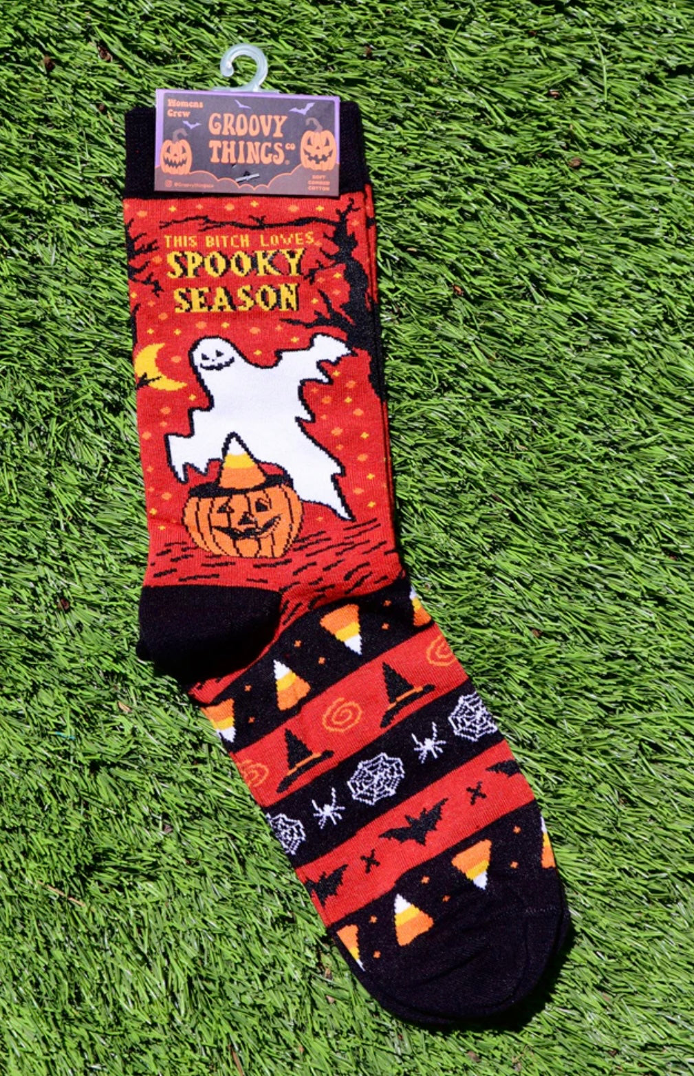 {"id":9581716144434,"title":"THIS BITCH LOVES SPOOKY SEASON Ladies Halloween Socks GROOVY THINGS Brand","handle":"this-bitch-loves-spooky-season-ladies-halloween-socks-groovy-things-brand-1","description":"\u003cp\u003eJust a Spooky Season Bitch 👻🎃🖤\u003c\/p\u003e\n\u003cp\u003e'THIS BITCH LOVES SPOOKY SEASON'\u003c\/p\u003e\n\u003cp\u003e- 60% Combed Cotton, 26% Polyester, 11% Nylon, 3% Spandex\u003cbr\u003e- One size fits most, Women’s crew length socks\u003cbr\u003e- Machine wash cold, Tumble dry medium, Do not bleach\u003cbr\u003e- Made with super soft combed cotton for supreme comfort\u003c\/p\u003e\n\u003cp\u003eGROOVY THINGS BRAND LADIES HALLOWEEN CREW SOCKS\u003c!----\u003e\u003c\/p\u003e\n\u003cp\u003eHAVE A SUPER GROOVY DAY!***\u003c\/p\u003e\n\u003c!----\u003e","published_at":"2025-07-17T15:22:19-04:00","created_at":"2024-08-16T20:18:55-04:00","vendor":"Novelty Socks And Slippers","type":"SOCKS","tags":[],"price":1299,"price_min":1299,"price_max":1299,"available":true,"price_varies":false,"compare_at_price":null,"compare_at_price_min":0,"compare_at_price_max":0,"compare_at_price_varies":false,"variants":[{"id":49194315481394,"title":"Default Title","option1":"Default Title","option2":null,"option3":null,"sku":"GTCSW185","requires_shipping":true,"taxable":false,"featured_image":null,"available":true,"name":"THIS BITCH LOVES SPOOKY SEASON Ladies Halloween Socks GROOVY THINGS Brand","public_title":null,"options":["Default Title"],"price":1299,"weight":57,"compare_at_price":null,"inventory_management":"shopify","barcode":"666945366481","requires_selling_plan":false,"selling_plan_allocations":[]}],"images":["\/\/noveltysocksforless.com\/cdn\/shop\/files\/2E86D6AC-759B-480D-A7FF-A7A5B5584AB1.jpg?v=1723854048","\/\/noveltysocksforless.com\/cdn\/shop\/files\/E39C3318-C897-44A1-AF1E-3F10348A6068.jpg?v=1757102836","\/\/noveltysocksforless.com\/cdn\/shop\/files\/E547A630-554A-4837-8A78-1DE7BAA0B001.jpg?v=1757102836","\/\/noveltysocksforless.com\/cdn\/shop\/files\/70D32490-84D0-468B-B9BB-E78F73A710A2.jpg?v=1757102824","\/\/noveltysocksforless.com\/cdn\/shop\/files\/988A1A1A-6CCB-4202-B5E2-43A129D33F29.jpg?v=1760973372"],"featured_image":"\/\/noveltysocksforless.com\/cdn\/shop\/files\/2E86D6AC-759B-480D-A7FF-A7A5B5584AB1.jpg?v=1723854048","options":["Title"],"media":[{"alt":"GROOVY THINGS Brand Ladies THIS BITCH LOVES SPOOKY SEASON Halloween Socks - Novelty Socks And Slippers","id":39187832570162,"position":1,"preview_image":{"aspect_ratio":0.656,"height":910,"width":597,"src":"\/\/noveltysocksforless.com\/cdn\/shop\/files\/2E86D6AC-759B-480D-A7FF-A7A5B5584AB1.jpg?v=1723854048"},"aspect_ratio":0.656,"height":910,"media_type":"image","src":"\/\/noveltysocksforless.com\/cdn\/shop\/files\/2E86D6AC-759B-480D-A7FF-A7A5B5584AB1.jpg?v=1723854048","width":597},{"alt":"GROOVY THINGS Brand Ladies THIS BITCH LOVES SPOOKY SEASON Halloween Socks - Novelty Socks And Slippers","id":42120755511602,"position":2,"preview_image":{"aspect_ratio":0.825,"height":1563,"width":1290,"src":"\/\/noveltysocksforless.com\/cdn\/shop\/files\/E39C3318-C897-44A1-AF1E-3F10348A6068.jpg?v=1757102836"},"aspect_ratio":0.825,"height":1563,"media_type":"image","src":"\/\/noveltysocksforless.com\/cdn\/shop\/files\/E39C3318-C897-44A1-AF1E-3F10348A6068.jpg?v=1757102836","width":1290},{"alt":"GROOVY THINGS Brand Ladies THIS BITCH LOVES SPOOKY SEASON Halloween Socks - Novelty Socks And Slippers","id":42039437066546,"position":3,"preview_image":{"aspect_ratio":1.079,"height":1196,"width":1290,"src":"\/\/noveltysocksforless.com\/cdn\/shop\/files\/E547A630-554A-4837-8A78-1DE7BAA0B001.jpg?v=1757102836"},"aspect_ratio":1.079,"height":1196,"media_type":"image","src":"\/\/noveltysocksforless.com\/cdn\/shop\/files\/E547A630-554A-4837-8A78-1DE7BAA0B001.jpg?v=1757102836","width":1290},{"alt":"GROOVY THINGS Brand Ladies THIS BITCH LOVES SPOOKY SEASON Halloween Socks - Novelty Socks And Slippers","id":42120755544370,"position":4,"preview_image":{"aspect_ratio":0.645,"height":1565,"width":1009,"src":"\/\/noveltysocksforless.com\/cdn\/shop\/files\/70D32490-84D0-468B-B9BB-E78F73A710A2.jpg?v=1757102824"},"aspect_ratio":0.645,"height":1565,"media_type":"image","src":"\/\/noveltysocksforless.com\/cdn\/shop\/files\/70D32490-84D0-468B-B9BB-E78F73A710A2.jpg?v=1757102824","width":1009},{"alt":"TRICK OR FUCKING TREAT Ladies HALLOWEEN Socks GROOVY THINGS Brand - Novelty Socks And Slippers","id":42409964110130,"position":5,"preview_image":{"aspect_ratio":0.924,"height":1396,"width":1290,"src":"\/\/noveltysocksforless.com\/cdn\/shop\/files\/988A1A1A-6CCB-4202-B5E2-43A129D33F29.jpg?v=1760973372"},"aspect_ratio":0.924,"height":1396,"media_type":"image","src":"\/\/noveltysocksforless.com\/cdn\/shop\/files\/988A1A1A-6CCB-4202-B5E2-43A129D33F29.jpg?v=1760973372","width":1290}],"requires_selling_plan":false,"selling_plan_groups":[],"content":"\u003cp\u003eJust a Spooky Season Bitch 👻🎃🖤\u003c\/p\u003e\n\u003cp\u003e'THIS BITCH LOVES SPOOKY SEASON'\u003c\/p\u003e\n\u003cp\u003e- 60% Combed Cotton, 26% Polyester, 11% Nylon, 3% Spandex\u003cbr\u003e- One size fits most, Women’s crew length socks\u003cbr\u003e- Machine wash cold, Tumble dry medium, Do not bleach\u003cbr\u003e- Made with super soft combed cotton for supreme comfort\u003c\/p\u003e\n\u003cp\u003eGROOVY THINGS BRAND LADIES HALLOWEEN CREW SOCKS\u003c!----\u003e\u003c\/p\u003e\n\u003cp\u003eHAVE A SUPER GROOVY DAY!***\u003c\/p\u003e\n\u003c!----\u003e"}