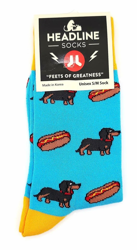 {"id":8066985853234,"title":"DACHSHUNDS \u0026 WIENERS ADULT UNISEX SOCKS (HOT DOGS) HEADLINE BRAND SOCKS SIZE S\/M","handle":"headline-brand-unisex-dachshunds-wieners-hot-dogs-socks-size-s-m","description":"\u003cp\u003eHEADLINE BRAND ADULT UNISEX CREW SOCKS SIZE SMALL\/MEDIUM\u003c\/p\u003e\n\u003cp\u003eDACHSHUNDS \u0026amp; WIENERS \u003c\/p\u003e\n\u003cp\u003eMEN’S SHOE SIZE 6-8, WOMEN’S SHOE SIZE 5-9\u003c\/p\u003e\n\u003cp\u003e75% COTTON, 20% POLYESTER, 5% SPANDEX \u003c\/p\u003e\n\u003cp\u003e\u003cbr\u003e\u003c\/p\u003e","published_at":"2022-12-27T17:48:53-05:00","created_at":"2022-12-27T17:48:54-05:00","vendor":"Novelty Socks And Slippers","type":"SOCKS","tags":[],"price":1000,"price_min":1000,"price_max":1000,"available":true,"price_varies":false,"compare_at_price":null,"compare_at_price_min":0,"compare_at_price_max":0,"compare_at_price_varies":false,"variants":[{"id":44312950866226,"title":"Default Title","option1":"Default Title","option2":null,"option3":null,"sku":"","requires_shipping":true,"taxable":false,"featured_image":null,"available":true,"name":"DACHSHUNDS \u0026 WIENERS ADULT UNISEX SOCKS (HOT DOGS) HEADLINE BRAND SOCKS SIZE S\/M","public_title":null,"options":["Default Title"],"price":1000,"weight":57,"compare_at_price":null,"inventory_management":"shopify","barcode":"848654170324","requires_selling_plan":false,"selling_plan_allocations":[]}],"images":["\/\/noveltysocksforless.com\/cdn\/shop\/files\/067235DC-4128-4016-BAB6-427D9D1387E2.jpg?v=1764290814","\/\/noveltysocksforless.com\/cdn\/shop\/files\/1515BBDD-959E-4DB8-ADCF-B1989812682F.jpg?v=1764290814"],"featured_image":"\/\/noveltysocksforless.com\/cdn\/shop\/files\/067235DC-4128-4016-BAB6-427D9D1387E2.jpg?v=1764290814","options":["Title"],"media":[{"alt":null,"id":42718531125554,"position":1,"preview_image":{"aspect_ratio":0.962,"height":1088,"width":1047,"src":"\/\/noveltysocksforless.com\/cdn\/shop\/files\/067235DC-4128-4016-BAB6-427D9D1387E2.jpg?v=1764290814"},"aspect_ratio":0.962,"height":1088,"media_type":"image","src":"\/\/noveltysocksforless.com\/cdn\/shop\/files\/067235DC-4128-4016-BAB6-427D9D1387E2.jpg?v=1764290814","width":1047},{"alt":null,"id":42718531092786,"position":2,"preview_image":{"aspect_ratio":0.55,"height":1034,"width":569,"src":"\/\/noveltysocksforless.com\/cdn\/shop\/files\/1515BBDD-959E-4DB8-ADCF-B1989812682F.jpg?v=1764290814"},"aspect_ratio":0.55,"height":1034,"media_type":"image","src":"\/\/noveltysocksforless.com\/cdn\/shop\/files\/1515BBDD-959E-4DB8-ADCF-B1989812682F.jpg?v=1764290814","width":569}],"requires_selling_plan":false,"selling_plan_groups":[],"content":"\u003cp\u003eHEADLINE BRAND ADULT UNISEX CREW SOCKS SIZE SMALL\/MEDIUM\u003c\/p\u003e\n\u003cp\u003eDACHSHUNDS \u0026amp; WIENERS \u003c\/p\u003e\n\u003cp\u003eMEN’S SHOE SIZE 6-8, WOMEN’S SHOE SIZE 5-9\u003c\/p\u003e\n\u003cp\u003e75% COTTON, 20% POLYESTER, 5% SPANDEX \u003c\/p\u003e\n\u003cp\u003e\u003cbr\u003e\u003c\/p\u003e"}