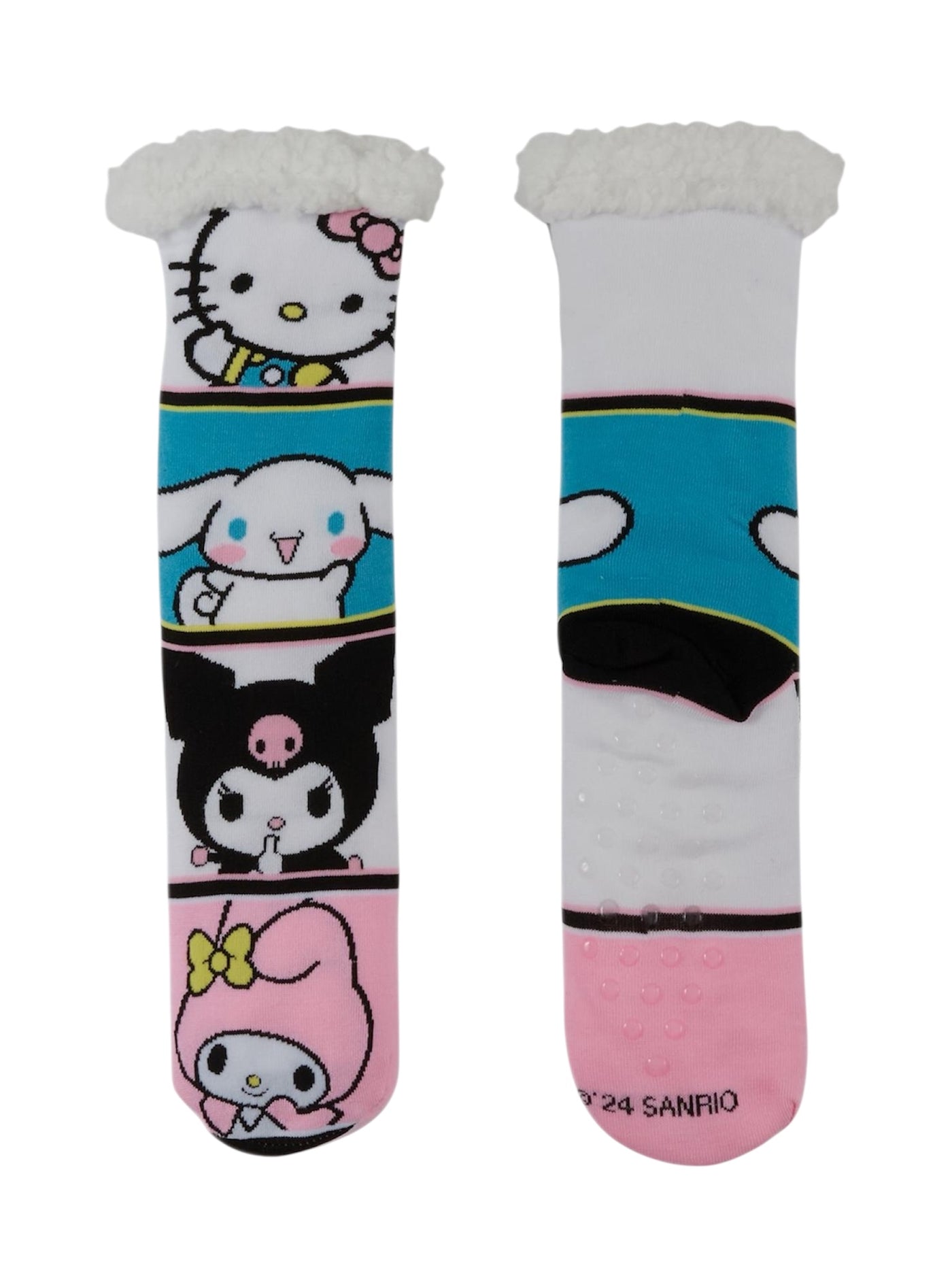 {"id":9664413303090,"title":"SANRIO HELLO KITTY Ladies Sherpa Lined Gripper Bottom Slipper Socks KUROMI, CINNAMOROLL","handle":"sanrio-hello-kitty-ladies-sherpa-lined-gripper-bottom-slipper-socks","description":"\u003cp\u003eSANRIO HELLO KITTY AND FRIENDS LADIES SHERPA LINED GRIPPER BOTTOM SLIPPER SOCKS \u003c\/p\u003e\n\u003cp\u003eHELLO KITTY, MY MELODY, CINNAMOROLL \u0026amp; KUROMI\u003c\/p\u003e\n\u003cp\u003eSHELL 98% Polyester, 2% Spandex \u003c\/p\u003e\n\u003cp\u003eLINING 100% POLYESTER\u003c\/p\u003e\n\u003cp\u003eHIGH POINT DESIGN BRAND \u003c\/p\u003e","published_at":"2024-10-11T13:58:30-04:00","created_at":"2024-10-11T13:54:54-04:00","vendor":"Novelty Socks And Slippers","type":"SHERPA LINED SLIPPER SOCKS","tags":[],"price":1299,"price_min":1299,"price_max":1299,"available":true,"price_varies":false,"compare_at_price":null,"compare_at_price_min":0,"compare_at_price_max":0,"compare_at_price_varies":false,"variants":[{"id":49406929633586,"title":"Default Title","option1":"Default Title","option2":null,"option3":null,"sku":"41E0218P60193HP","requires_shipping":true,"taxable":false,"featured_image":null,"available":true,"name":"SANRIO HELLO KITTY Ladies Sherpa Lined Gripper Bottom Slipper Socks KUROMI, CINNAMOROLL","public_title":null,"options":["Default Title"],"price":1299,"weight":156,"compare_at_price":null,"inventory_management":"shopify","barcode":"086694701331","requires_selling_plan":false,"selling_plan_allocations":[]}],"images":["\/\/noveltysocksforless.com\/cdn\/shop\/files\/68A7D260-FB41-4E9C-8CC4-E75BC2BC3B84.jpg?v=1732240829","\/\/noveltysocksforless.com\/cdn\/shop\/files\/BD1FB8C0-5930-4673-A525-190A5DCB843D.jpg?v=1769552869","\/\/noveltysocksforless.com\/cdn\/shop\/files\/5B3AF4D8-00E7-4BEF-9E24-ACCF868634BD.jpg?v=1769552869","\/\/noveltysocksforless.com\/cdn\/shop\/files\/418F7448-719F-43FD-A5E5-0D147E5B7CB9.jpg?v=1769552869","\/\/noveltysocksforless.com\/cdn\/shop\/files\/C529443B-0258-4C26-8CD1-8235F251600F.png?v=1769552869","\/\/noveltysocksforless.com\/cdn\/shop\/files\/3BEA76E1-8D4C-460A-8DC8-A7E485698B7D.jpg?v=1769552869","\/\/noveltysocksforless.com\/cdn\/shop\/files\/58F8CA5D-E8F1-429B-B9A5-69C638278C1B.jpg?v=1769552842"],"featured_image":"\/\/noveltysocksforless.com\/cdn\/shop\/files\/68A7D260-FB41-4E9C-8CC4-E75BC2BC3B84.jpg?v=1732240829","options":["Title"],"media":[{"alt":"SANRIO HELLO KITTY Ladies Sherpa Lined Gripper Bottom Slipper Socks - Novelty Socks And Slippers","id":40118921789746,"position":1,"preview_image":{"aspect_ratio":0.654,"height":1154,"width":755,"src":"\/\/noveltysocksforless.com\/cdn\/shop\/files\/68A7D260-FB41-4E9C-8CC4-E75BC2BC3B84.jpg?v=1732240829"},"aspect_ratio":0.654,"height":1154,"media_type":"image","src":"\/\/noveltysocksforless.com\/cdn\/shop\/files\/68A7D260-FB41-4E9C-8CC4-E75BC2BC3B84.jpg?v=1732240829","width":755},{"alt":"SANRIO HELLO KITTY Ladies Sherpa Lined Gripper Bottom Slipper Socks KUROMI, CINNAMOROLL - Novelty Socks And Slippers","id":43098430538034,"position":2,"preview_image":{"aspect_ratio":0.74,"height":2000,"width":1480,"src":"\/\/noveltysocksforless.com\/cdn\/shop\/files\/BD1FB8C0-5930-4673-A525-190A5DCB843D.jpg?v=1769552869"},"aspect_ratio":0.74,"height":2000,"media_type":"image","src":"\/\/noveltysocksforless.com\/cdn\/shop\/files\/BD1FB8C0-5930-4673-A525-190A5DCB843D.jpg?v=1769552869","width":1480},{"alt":"SANRIO HELLO KITTY Ladies Sherpa Lined Gripper Bottom Slipper Socks - Novelty Socks And Slippers","id":41778281349426,"position":3,"preview_image":{"aspect_ratio":0.697,"height":957,"width":667,"src":"\/\/noveltysocksforless.com\/cdn\/shop\/files\/5B3AF4D8-00E7-4BEF-9E24-ACCF868634BD.jpg?v=1769552869"},"aspect_ratio":0.697,"height":957,"media_type":"image","src":"\/\/noveltysocksforless.com\/cdn\/shop\/files\/5B3AF4D8-00E7-4BEF-9E24-ACCF868634BD.jpg?v=1769552869","width":667},{"alt":"SANRIO HELLO KITTY Ladies Sherpa Lined Gripper Bottom Slipper Socks - Novelty Socks And Slippers","id":40118921822514,"position":4,"preview_image":{"aspect_ratio":0.596,"height":1160,"width":691,"src":"\/\/noveltysocksforless.com\/cdn\/shop\/files\/418F7448-719F-43FD-A5E5-0D147E5B7CB9.jpg?v=1769552869"},"aspect_ratio":0.596,"height":1160,"media_type":"image","src":"\/\/noveltysocksforless.com\/cdn\/shop\/files\/418F7448-719F-43FD-A5E5-0D147E5B7CB9.jpg?v=1769552869","width":691},{"alt":"SANRIO HELLO KITTY Ladies Sherpa Lined Gripper Bottom Slipper Socks - Novelty Socks And Slippers","id":40476941058354,"position":5,"preview_image":{"aspect_ratio":0.739,"height":1137,"width":840,"src":"\/\/noveltysocksforless.com\/cdn\/shop\/files\/C529443B-0258-4C26-8CD1-8235F251600F.png?v=1769552869"},"aspect_ratio":0.739,"height":1137,"media_type":"image","src":"\/\/noveltysocksforless.com\/cdn\/shop\/files\/C529443B-0258-4C26-8CD1-8235F251600F.png?v=1769552869","width":840},{"alt":"SANRIO HELLO KITTY Ladies Sherpa Lined Gripper Bottom Slipper Socks - Novelty Socks And Slippers","id":41778281316658,"position":6,"preview_image":{"aspect_ratio":0.862,"height":836,"width":721,"src":"\/\/noveltysocksforless.com\/cdn\/shop\/files\/3BEA76E1-8D4C-460A-8DC8-A7E485698B7D.jpg?v=1769552869"},"aspect_ratio":0.862,"height":836,"media_type":"image","src":"\/\/noveltysocksforless.com\/cdn\/shop\/files\/3BEA76E1-8D4C-460A-8DC8-A7E485698B7D.jpg?v=1769552869","width":721},{"alt":"SANRIO HELLO KITTY Ladies Sherpa Lined Gripper Bottom Slipper Socks KUROMI, CINNAMOROLL - Novelty Socks And Slippers","id":43098430505266,"position":7,"preview_image":{"aspect_ratio":0.74,"height":2000,"width":1480,"src":"\/\/noveltysocksforless.com\/cdn\/shop\/files\/58F8CA5D-E8F1-429B-B9A5-69C638278C1B.jpg?v=1769552842"},"aspect_ratio":0.74,"height":2000,"media_type":"image","src":"\/\/noveltysocksforless.com\/cdn\/shop\/files\/58F8CA5D-E8F1-429B-B9A5-69C638278C1B.jpg?v=1769552842","width":1480}],"requires_selling_plan":false,"selling_plan_groups":[],"content":"\u003cp\u003eSANRIO HELLO KITTY AND FRIENDS LADIES SHERPA LINED GRIPPER BOTTOM SLIPPER SOCKS \u003c\/p\u003e\n\u003c