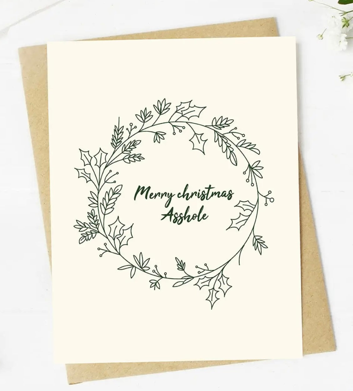 {"id":9888866369842,"title":"Sassy Christmas Greeting Card MERRY CHRISTMAS ASSHOLE *Made In The USA","handle":"sassy-christmas-greeting-card-merry-christmas-asshole-made-in-the-usa","description":"\u003cp\u003e\u003cspan\u003eSpread the holiday spirit with a good laugh this Christmas season. Card reads \"Merry Christmas Asshole\".\u003c\/span\u003e\u003c\/p\u003e\n\u003cp\u003e\u003cspan\u003eMADE IN THE USA!\u003c\/span\u003e\u003c\/p\u003e\n\u003cp\u003e\u003cspan\u003eWarning: this card may put you on the naughty list. \u003c\/span\u003e\u003c\/p\u003e\n\u003cp\u003e\u003cspan\u003eSize (4.25 x 5.5 inches folded). -Printed on premium 16pt thick cardstock with a matte finish. -Paired with a coordinated kraft or holiday color envelope. -BLANK INSIDE -Hand Drawn\u003c\/span\u003e\u003c\/p\u003e","published_at":"2025-06-21T05:41:51-04:00","created_at":"2025-06-18T19:47:56-04:00","vendor":"Novelty Socks And Slippers","type":"Greeting Card","tags":[],"price":399,"price_min":399,"price_max":399,"available":true,"price_varies":false,"compare_at_price":null,"compare_at_price_min":0,"compare_at_price_max":0,"compare_at_price_varies":false,"variants":[{"id":50138045022514,"title":"Default Title","option1":"Default Title","option2":null,"option3":null,"sku":"N-BM-GC-449","requires_shipping":true,"taxable":true,"featured_image":null,"available":true,"name":"Sassy Christmas Greeting Card MERRY CHRISTMAS ASSHOLE *Made In The USA","public_title":null,"options":["Default Title"],"price":399,"weight":28,"compare_at_price":null,"inventory_management":"shopify","barcode":"","requires_selling_plan":false,"selling_plan_allocations":[]}],"images":["\/\/noveltysocksforless.com\/cdn\/shop\/files\/7A5FE075-12A7-4201-996A-55559652A17C.jpg?v=1750290497"],"featured_image":"\/\/noveltysocksforless.com\/cdn\/shop\/files\/7A5FE075-12A7-4201-996A-55559652A17C.jpg?v=1750290497","options":["Title"],"media":[{"alt":"Sassy Christmas Greeting Card MERRY CHRISTMAS ASSHOLE *Made In The USA - Novelty Socks And Slippers","id":41711044591922,"position":1,"preview_image":{"aspect_ratio":0.904,"height":1249,"width":1129,"src":"\/\/noveltysocksforless.com\/cdn\/shop\/files\/7A5FE075-12A7-4201-996A-55559652A17C.jpg?v=1750290497"},"aspect_ratio":0.904,"height":1249,"media_type":"image","src":"\/\/noveltysocksforless.com\/cdn\/shop\/files\/7A5FE075-12A7-4201-996A-55559652A17C.jpg?v=1750290497","width":1129}],"requires_selling_plan":false,"selling_plan_groups":[],"content":"\u003cp\u003e\u003cspan\u003eSpread the holiday spirit with a good laugh this Christmas season. Card reads \"Merry Christmas Asshole\".\u003c\/span\u003e\u003c\/p\u003e\n\u003cp\u003e\u003cspan\u003eMADE IN THE USA!\u003c\/span\u003e\u003c\/p\u003e\n\u003cp\u003e\u003cspan\u003eWarning: this card may put you on the naughty list. \u003c\/span\u003e\u003c\/p\u003e\n\u003cp\u003e\u003cspan\u003eSize (4.25 x 5.5 inches folded). -Printed on premium 16pt thick cardstock with a matte finish. -Paired with a coordinated kraft or holiday color envelope. -BLANK INSIDE -Hand Drawn\u003c\/span\u003e\u003c\/p\u003e"}