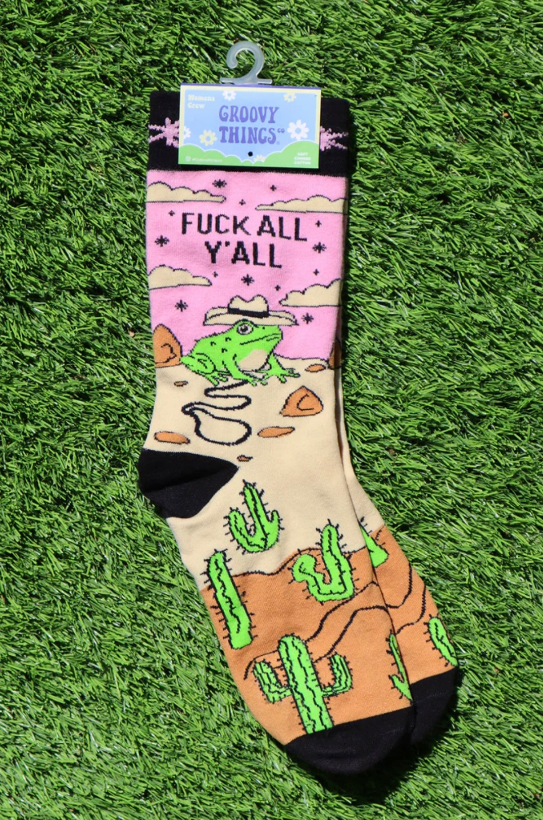 {"id":8992452510002,"title":"FUCK ALL Y’ALL Ladies Socks GROOVY THINGS Brand","handle":"fuck-all-y-all-ladies-socks-groovy-things-brand-1","description":"\u003cp\u003eFuck All Y'all 🐸🌵\u003c\/p\u003e\n\u003cp\u003e\u003cstrong\u003e***ALSO AVAILABLE IN MEN'S***\u003c\/strong\u003e\u003c\/p\u003e\n\u003cp\u003e\u003cspan\u003e- 43% Combed Cotton, 27% Polyester, 27% Nylon, 3% spandex\u003c\/span\u003e\u003cbr\u003e\u003cspan\u003e- One size fits most, Women’s Crew length socks\u003c\/span\u003e\u003cbr\u003e\u003cspan\u003e- Machine wash cold, Tumble dry medium, Do not bleach\u003c\/span\u003e\u003cbr\u003e\u003cspan\u003e- Made with super soft combed cotton for supreme comfort\u003c\/span\u003e\u003c\/p\u003e\n\u003cp\u003eGROOVY THINGS Brand Ladies Crew Socks\u003c\/p\u003e\n\u003cp\u003eHave A Super Groovy Day!\u003c\/p\u003e","published_at":"2025-11-07T13:47:13-05:00","created_at":"2024-01-10T17:54:17-05:00","vendor":"Novelty Socks And Slippers","type":"SOCKS","tags":[],"price":1299,"price_min":1299,"price_max":1299,"available":true,"price_varies":false,"compare_at_price":null,"compare_at_price_min":0,"compare_at_price_max":0,"compare_at_price_varies":false,"variants":[{"id":47588710711602,"title":"Default Title","option1":"Default Title","option2":null,"option3":null,"sku":"GTCSW165","requires_shipping":true,"taxable":false,"featured_image":null,"available":true,"name":"FUCK ALL Y’ALL Ladies Socks GROOVY THINGS Brand","public_title":null,"options":["Default Title"],"price":1299,"weight":57,"compare_at_price":null,"inventory_management":"shopify","barcode":"645707159608","requires_selling_plan":false,"selling_plan_allocations":[]}],"images":["\/\/noveltysocksforless.com\/cdn\/shop\/files\/89F4A814-E410-407E-8E3C-74A4441ABC0F.webp?v=1704927398","\/\/noveltysocksforless.com\/cdn\/shop\/files\/6F65C68C-DD2D-4A23-BEEB-650F5BBB0B43.jpg?v=1715123244","\/\/noveltysocksforless.com\/cdn\/shop\/files\/DF5D342A-38B5-44E5-B280-DFBBF207A321.jpg?v=1757075532","\/\/noveltysocksforless.com\/cdn\/shop\/files\/7BB0CFB4-DBCF-49EA-8C2B-1193AC6EE6AA.jpg?v=1760550956"],"featured_image":"\/\/noveltysocksforless.com\/cdn\/shop\/files\/89F4A814-E410-407E-8E3C-74A4441ABC0F.webp?v=1704927398","options":["Title"],"media":[{"alt":"GROOVY THINGS Brand Ladies FUCK ALL Y’ALL Socks - Novelty Socks And Slippers","id":36504732401970,"position":1,"preview_image":{"aspect_ratio":0.75,"height":1067,"width":800,"src":"\/\/noveltysocksforless.com\/cdn\/shop\/files\/89F4A814-E410-407E-8E3C-74A4441ABC0F.webp?v=1704927398"},"aspect_ratio":0.75,"height":1067,"media_type":"image","src":"\/\/noveltysocksforless.com\/cdn\/shop\/files\/89F4A814-E410-407E-8E3C-74A4441ABC0F.webp?v=1704927398","width":800},{"alt":"GROOVY THINGS Brand Ladies FUCK ALL Y’ALL Socks - Novelty Socks And Slippers","id":37976004034866,"position":2,"preview_image":{"aspect_ratio":1.153,"height":1119,"width":1290,"src":"\/\/noveltysocksforless.com\/cdn\/shop\/files\/6F65C68C-DD2D-4A23-BEEB-650F5BBB0B43.jpg?v=1715123244"},"aspect_ratio":1.153,"height":1119,"media_type":"image","src":"\/\/noveltysocksforless.com\/cdn\/shop\/files\/6F65C68C-DD2D-4A23-BEEB-650F5BBB0B43.jpg?v=1715123244","width":1290},{"alt":"GROOVY THINGS Brand Ladies FUCK ALL Y’ALL Socks - Novelty Socks And Slippers","id":42118950519090,"position":3,"preview_image":{"aspect_ratio":0.662,"height":1623,"width":1075,"src":"\/\/noveltysocksforless.com\/cdn\/shop\/files\/DF5D342A-38B5-44E5-B280-DFBBF207A321.jpg?v=1757075532"},"aspect_ratio":0.662,"height":1623,"media_type":"image","src":"\/\/noveltysocksforless.com\/cdn\/shop\/files\/DF5D342A-38B5-44E5-B280-DFBBF207A321.jpg?v=1757075532","width":1075},{"alt":"GROOVY THINGS Brand Ladies FUCK ALL Y’ALL Socks - Novelty Socks And Slippers","id":42378604020018,"position":4,"preview_image":{"aspect_ratio":0.975,"height":1099,"width":1072,"src":"\/\/noveltysocksforless.com\/cdn\/shop\/files\/7BB0CFB4-DBCF-49EA-8C2B-1193AC6EE6AA.jpg?v=1760550956"},"aspect_ratio":0.975,"height":1099,"media_type":"image","src":"\/\/noveltysocksforless.com\/cdn\/shop\/files\/7BB0CFB4-DBCF-49EA-8C2B-1193AC6EE6AA.jpg?v=1760550956","width":1072}],"requires_selling_plan":false,"selling_plan_groups":[],"content":"\u003cp\u003eFuck All Y'all 🐸🌵\u003c\/p\u003e\n\u003cp\u003e\u003cstrong\u003e***ALSO AVAILABLE IN MEN'S***\u003c\/strong\u003e\u003c\/p\u003e\n\u003cp\u003e\u003cspan\u003e- 43% Combed Cotton, 27% Polyester, 27% Nylon, 3% spandex\u003c\/span\u003e\u003cbr\u003e\u003cspan\u003e- One size fits most, Women’s Crew length socks\u003c\/span\u003e\u003cbr\u003e\u003cspan\u003e- Machine wash cold, Tumble dry medium, Do not bleach\u003c\/span\u003e\u003cbr\u003e\u003cspan\u003e- Made with super soft combed cotton for supreme comfort\u003c\/span\u003e\u003c\/p\u003e\n\u003cp\u003eGROOVY THINGS Brand Ladies Crew Socks\u003c\/p\u003e\n\u003cp\u003eHave A Super Groovy Day!\u003c\/p\u003e"}