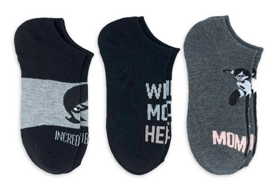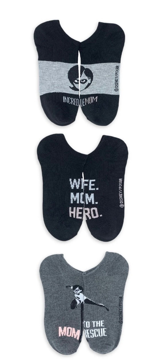 {"id":6651088207943,"title":"Disney THE INCREDIBLES Ladies 3 Pair Of MOTHER’S DAY No Show Socks ‘WIFE MOM HERO’","handle":"disney-the-incredibles-ladies-3-pair-of-mother-s-day-no-show-socks-wife-mom-hero","description":"\u003cp\u003eDISNEY PIXAR THE INCREDIBLES Ladies 3 Pair Of MOTHER’S DAY No Show Socks Shoe Size 4-10\u003c\/p\u003e\n\u003cp\u003eELASTIGIRL ’INCREDIBLE MOM’, ‘WIFE MOM HERO’, ‘MOM TO THE RESCUE’\u003c\/p\u003e\n\u003cp\u003eRecycled Polyester Blend\u003c\/p\u003e\n\u003cp\u003eHigh Point Design Brand \u003c\/p\u003e","published_at":"2022-04-21T20:12:50-04:00","created_at":"2022-04-21T20:12:34-04:00","vendor":"Novelty Socks And Slippers","type":"NO SHOW SOCKS","tags":[],"price":899,"price_min":899,"price_max":899,"available":true,"price_varies":false,"compare_at_price":null,"compare_at_price_min":0,"compare_at_price_max":0,"compare_at_price_varies":false,"variants":[{"id":39651497640007,"title":"Default Title","option1":"Default Title","option2":null,"option3":null,"sku":"WIFEMOMHERO","requires_shipping":true,"taxable":false,"featured_image":null,"available":true,"name":"Disney THE INCREDIBLES Ladies 3 Pair Of MOTHER’S DAY No Show Socks ‘WIFE MOM HERO’","public_title":null,"options":["Default Title"],"price":899,"weight":57,"compare_at_price":null,"inventory_management":"shopify","barcode":"086694593509","requires_selling_plan":false,"selling_plan_allocations":[]}],"images":["\/\/noveltysocksforless.com\/cdn\/shop\/files\/2CFC4A9D-F29E-481E-B374-ACAC3ACDC39F.jpg?v=1770244236","\/\/noveltysocksforless.com\/cdn\/shop\/files\/4BCDBE54-56C2-41E0-AB3A-AF1A00720079.jpg?v=1770244236","\/\/noveltysocksforless.com\/cdn\/shop\/files\/98C463B6-2CF2-4773-B91A-0F592537597F.jpg?v=1770244236"],"featured_image":"\/\/noveltysocksforless.com\/cdn\/shop\/files\/2CFC4A9D-F29E-481E-B374-ACAC3ACDC39F.jpg?v=1770244236","options":["Title"],"media":[{"alt":null,"id":43145094988082,"position":1,"preview_image":{"aspect_ratio":1.473,"height":776,"width":1143,"src":"\/\/noveltysocksforless.com\/cdn\/shop\/files\/2CFC4A9D-F29E-481E-B374-ACAC3ACDC39F.jpg?v=1770244236"},"aspect_ratio":1.473,"height":776,"media_type":"image","src":"\/\/noveltysocksforless.com\/cdn\/shop\/files\/2CFC4A9D-F29E-481E-B374-ACAC3ACDC39F.jpg?v=1770244236","width":1143},{"alt":null,"id":43145094955314,"position":2,"preview_image":{"aspect_ratio":0.426,"height":1262,"width":537,"src":"\/\/noveltysocksforless.com\/cdn\/shop\/files\/4BCDBE54-56C2-41E0-AB3A-AF1A00720079.jpg?v=1770244236"},"aspect_ratio":0.426,"height":1262,"media_type":"image","src":"\/\/noveltysocksforless.com\/cdn\/shop\/files\/4BCDBE54-56C2-41E0-AB3A-AF1A00720079.jpg?v=1770244236","width":537},{"alt":null,"id":43145094922546,"position":3,"preview_image":{"aspect_ratio":0.57,"height":1260,"width":718,"src":"\/\/noveltysocksforless.com\/cdn\/shop\/files\/98C463B6-2CF2-4773-B91A-0F592537597F.jpg?v=1770244236"},"aspect_ratio":0.57,"height":1260,"media_type":"image","src":"\/\/noveltysocksforless.com\/cdn\/shop\/files\/98C463B6-2CF2-4773-B91A-0F592537597F.jpg?v=1770244236","width":718}],"requires_selling_plan":false,"selling_plan_groups":[],"content":"\u003cp\u003eDISNEY PIXAR THE INCREDIBLES Ladies 3 Pair Of MOTHER’S DAY No Show Socks Shoe Size 4-10\u003c\/p\u003e\n\u003cp\u003eELASTIGIRL ’INCREDIBLE MOM’, ‘WIFE MOM HERO’, ‘MOM TO THE RESCUE’\u003c\/p\u003e\n\u003cp\u003eRecycled Polyester Blend\u003c\/p\u003e\n\u003cp\u003eHigh Point Design Brand \u003c\/p\u003e"}