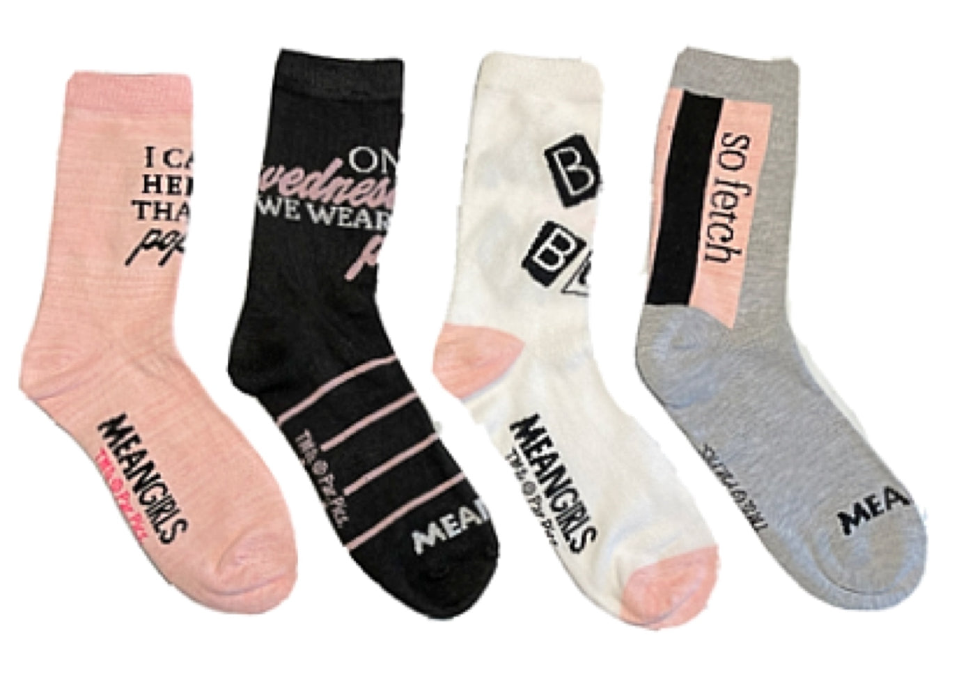 {"id":6656084017223,"title":"MEAN GIRLS Movie Ladies 4 Pair Of Socks ‘I CAN’T HELP THAT I’M POPULAR’","handle":"mean-girls-movie-ladies-4-pair-of-socks-i-can-t-help-that-i-m-popular","description":"\u003cp\u003eMEAN GIRLS Movie Ladies 4 Pair Of Crew Socks Shoe Size 4-10\u003c\/p\u003e\n\u003cp\u003e’I CAN’T HELP THAT I’M POPULAR’\u003c\/p\u003e\n\u003cp\u003e’BURN BOOK’\u003c\/p\u003e\n\u003cp\u003e‘SO FETCH’\u003c\/p\u003e\n\u003cp\u003e‘ON WEDNESDAYS WE WEAR PINK’\u003c\/p\u003e\n\u003cp\u003e97% Polyester, 3% Spandex \u003c\/p\u003e\n\u003cp\u003eCentric Brand\u003c\/p\u003e","published_at":"2025-10-08T10:03:25-04:00","created_at":"2022-05-14T13:00:33-04:00","vendor":"Novelty Socks And Slippers","type":"SOCKS","tags":[],"price":1699,"price_min":1699,"price_max":1699,"available":true,"price_varies":false,"compare_at_price":null,"compare_at_price_min":0,"compare_at_price_max":0,"compare_at_price_varies":false,"variants":[{"id":39665343430727,"title":"Default Title","option1":"Default Title","option2":null,"option3":null,"sku":"43XN031XCCZA-PNK","requires_shipping":true,"taxable":false,"featured_image":null,"available":true,"name":"MEAN GIRLS Movie Ladies 4 Pair Of Socks ‘I CAN’T HELP THAT I’M POPULAR’","public_title":null,"options":["Default Title"],"price":1699,"weight":150,"compare_at_price":null,"inventory_management":"shopify","barcode":"193159172558","requires_selling_plan":false,"selling_plan_allocations":[]}],"images":["\/\/noveltysocksforless.com\/cdn\/shop\/products\/image_57275517-1a9e-46aa-9de4-ac8e252099a3.jpg?v=1652547640"],"featured_image":"\/\/noveltysocksforless.com\/cdn\/shop\/products\/image_57275517-1a9e-46aa-9de4-ac8e252099a3.jpg?v=1652547640","options":["Title"],"media":[{"alt":"MEAN GIRLS Movie Ladies 4 Pair Of Socks ‘I CAN’T HELP THAT I’M POPULAR’ - Novelty Socks for Less","id":21032506622023,"position":1,"preview_image":{"aspect_ratio":1.397,"height":1145,"width":1600,"src":"\/\/noveltysocksforless.com\/cdn\/shop\/products\/image_57275517-1a9e-46aa-9de4-ac8e252099a3.jpg?v=1652547640"},"aspect_ratio":1.397,"height":1145,"media_type":"image","src":"\/\/noveltysocksforless.com\/cdn\/shop\/products\/image_57275517-1a9e-46aa-9de4-ac8e252099a3.jpg?v=1652547640","width":1600}],"requires_selling_plan":false,"selling_plan_groups":[],"content":"\u003cp\u003eMEAN GIRLS Movie Ladies 4 Pair Of Crew Socks Shoe Size 4-10\u003c\/p\u003e\n\u003cp\u003e’I CAN’T HELP THAT I’M POPULAR’\u003c\/p\u003e\n\u003cp\u003e’BURN BOOK’\u003c\/p\u003e\n\u003cp\u003e‘SO FETCH’\u003c\/p\u003e\n\u003cp\u003e‘ON WEDNESDAYS WE WEAR PINK’\u003c\/p\u003e\n\u003cp\u003e97% Polyester, 3% Spandex \u003c\/p\u003e\n\u003cp\u003eCentric Brand\u003c\/p\u003e"}