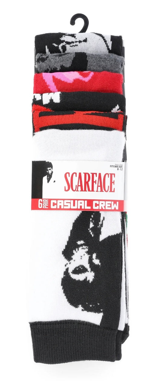 {"id":10053383029042,"title":"SCARFACE Movie Men’s 6 Pair Of Socks ‘Say Hello To My Little Friend’","handle":"scarface-movie-men-s-6-pair-of-socks-say-hello-to-my-little-friend","description":"\u003cp\u003eSCARFACE The Movie Men's 6 Pair Of Crew Socks Shoe Size 8-12, Sock Size 10-13\u003c\/p\u003e\n\u003cp\u003e'SAY HELLO TO MY LITTLE FRIEND', 'MAKE WAY FOR THE BAD GUY'\u003c\/p\u003e\n\u003cp\u003e98% Polyester, 2% Spandex\u003c\/p\u003e\n\u003cp\u003eBIOWORLD Brand\u003c\/p\u003e","published_at":"2025-11-29T21:47:01-05:00","created_at":"2025-11-29T21:44:36-05:00","vendor":"Novelty Socks And Slippers","type":"SOCKS","tags":[],"price":2199,"price_min":2199,"price_max":2199,"available":true,"price_varies":false,"compare_at_price":null,"compare_at_price_min":0,"compare_at_price_max":0,"compare_at_price_varies":false,"variants":[{"id":50668563464498,"title":"Default Title","option1":"Default Title","option2":null,"option3":null,"sku":"V44518954311001","requires_shipping":true,"taxable":false,"featured_image":null,"available":true,"name":"SCARFACE Movie Men’s 6 Pair Of Socks ‘Say Hello To My Little Friend’","public_title":null,"options":["Default Title"],"price":2199,"weight":283,"compare_at_price":null,"inventory_management":"shopify","barcode":"192936266367","requires_selling_plan":false,"selling_plan_allocations":[]}],"images":["\/\/noveltysocksforless.com\/cdn\/shop\/files\/48B3435E-4AAC-4CBF-96AD-7B88D1F562DB.jpg?v=1764470683","\/\/noveltysocksforless.com\/cdn\/shop\/files\/71D24481-5706-452D-9FB0-33FAE5A1453C.jpg?v=1764470683"],"featured_image":"\/\/noveltysocksforless.com\/cdn\/shop\/files\/48B3435E-4AAC-4CBF-96AD-7B88D1F562DB.jpg?v=1764470683","options":["Title"],"media":[{"alt":null,"id":42743493853490,"position":1,"preview_image":{"aspect_ratio":0.679,"height":1241,"width":843,"src":"\/\/noveltysocksforless.com\/cdn\/shop\/files\/48B3435E-4AAC-4CBF-96AD-7B88D1F562DB.jpg?v=1764470683"},"aspect_ratio":0.679,"height":1241,"media_type":"image","src":"\/\/noveltysocksforless.com\/cdn\/shop\/files\/48B3435E-4AAC-4CBF-96AD-7B88D1F562DB.jpg?v=1764470683","width":843},{"alt":null,"id":42743493820722,"position":2,"preview_image":{"aspect_ratio":0.415,"height":1257,"width":522,"src":"\/\/noveltysocksforless.com\/cdn\/shop\/files\/71D24481-5706-452D-9FB0-33FAE5A1453C.jpg?v=1764470683"},"aspect_ratio":0.415,"height":1257,"media_type":"image","src":"\/\/noveltysocksforless.com\/cdn\/shop\/files\/71D24481-5706-452D-9FB0-33FAE5A1453C.jpg?v=1764470683","width":522}],"requires_selling_plan":false,"selling_plan_groups":[],"content":"\u003cp\u003eSCARFACE The Movie Men's 6 Pair Of Crew Socks Shoe Size 8-12, Sock Size 10-13\u003c\/p\u003e\n\u003cp\u003e'SAY HELLO TO MY LITTLE FRIEND', 'MAKE WAY FOR THE BAD GUY'\u003c\/p\u003e\n\u003cp\u003e98% Polyester, 2% Spandex\u003c\/p\u003e\n\u003cp\u003eBIOWORLD Brand\u003c\/p\u003e"}