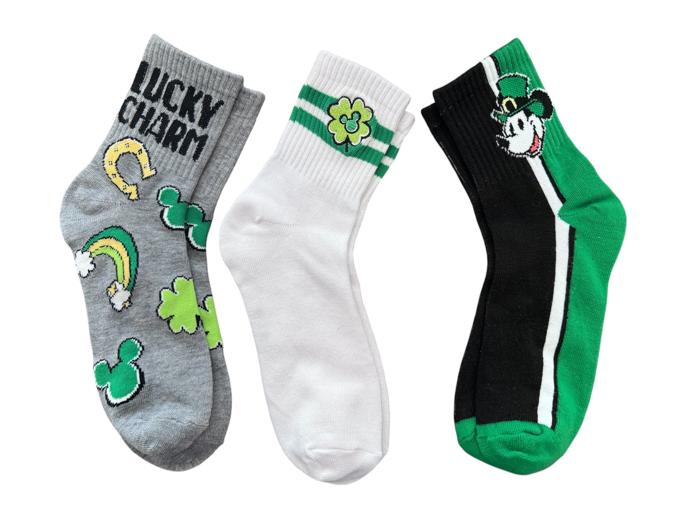 DISNEY Ladies ST. PATRICKS DAY 3 Pair Of MICKEY MOUSE Socks 'LUCKY CHARM'