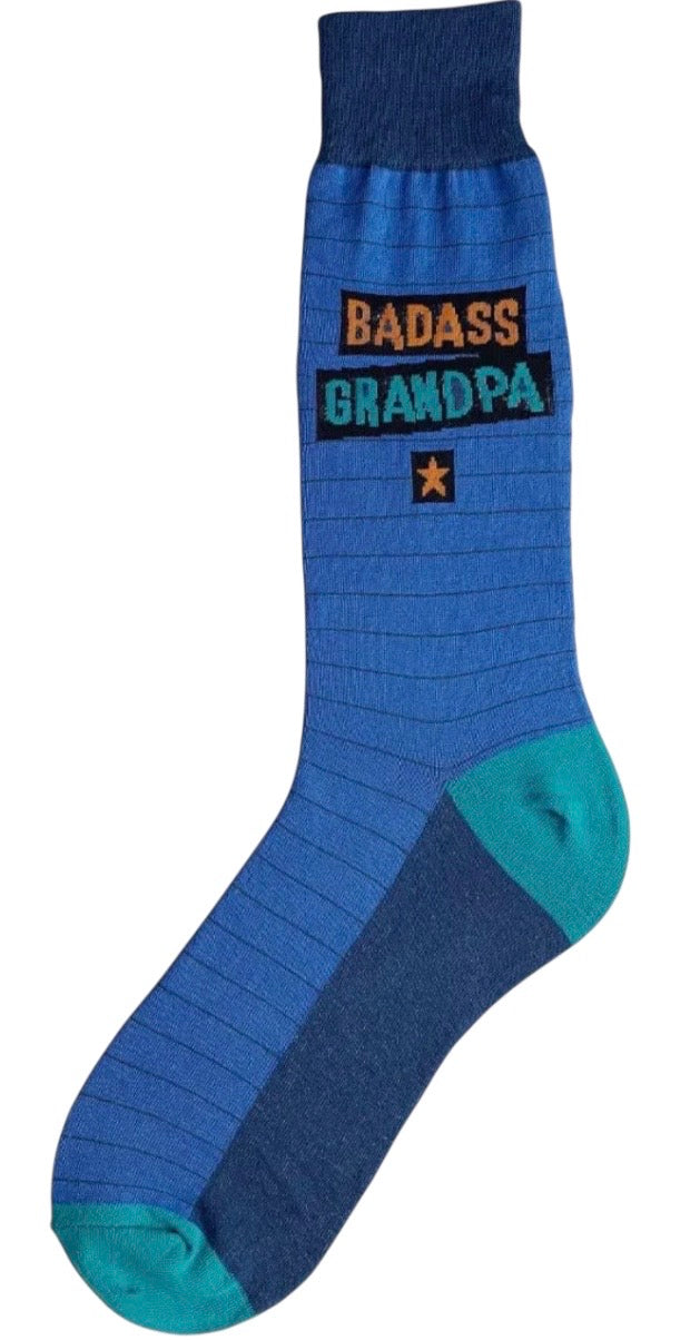 Grandpas are the best, so honor your grandpa with crazy men's socks that say "badass grandpa" By FOOT TRAFFIC Brand