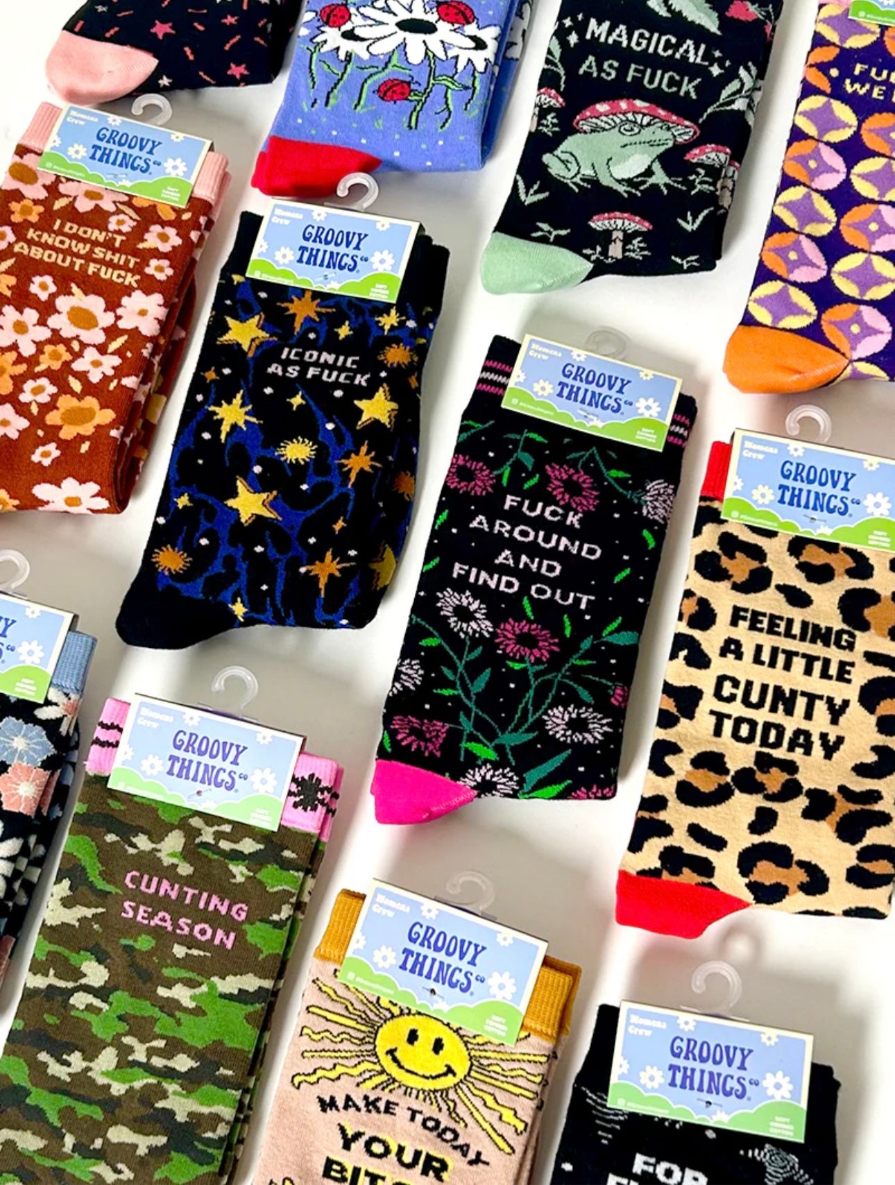 {"id":9791688376626,"title":"FEELING A LITTLE CUNTY TODAY Ladies Socks GROOVY THINGS Brand","handle":"feeling-a-little-cunty-today-ladies-socks-groovy-things-brand","description":"\u003cp\u003eI feel a little cunty everyday tbh 😉💅\u003c\/p\u003e\n\u003cp\u003e-Groovy Things Co. Brand Women's Crew Socks\u003c\/p\u003e\n\u003cp\u003e- 60% Combed Cotton, 26% Polyester, 11% Nylon, 3% Spandex\u003cbr\u003e- One size fits most, Women’s crew length socks\u003cbr\u003e- Machine wash cold, Tumble dry medium, Do not bleach\u003cbr\u003e- Made with super soft combed cotton for supreme comfort\u003c\/p\u003e","published_at":"2025-12-29T16:31:48-05:00","created_at":"2025-03-15T10:54:36-04:00","vendor":"Novelty Socks And Slippers","type":"SOCKS","tags":[],"price":1299,"price_min":1299,"price_max":1299,"available":true,"price_varies":false,"compare_at_price":null,"compare_at_price_min":0,"compare_at_price_max":0,"compare_at_price_varies":false,"variants":[{"id":49842675712306,"title":"Default Title","option1":"Default Title","option2":null,"option3":null,"sku":"GTCSW204","requires_shipping":true,"taxable":false,"featured_image":null,"available":true,"name":"FEELING A LITTLE CUNTY TODAY Ladies Socks GROOVY THINGS Brand","public_title":null,"options":["Default Title"],"price":1299,"weight":57,"compare_at_price":null,"inventory_management":"shopify","barcode":"666945357045","requires_selling_plan":false,"selling_plan_allocations":[]}],"images":["\/\/noveltysocksforless.com\/cdn\/shop\/files\/4AB3652A-4B98-4758-A2D4-574B0A4D5BFD.jpg?v=1742050545","\/\/noveltysocksforless.com\/cdn\/shop\/files\/25C8F118-1AAB-4F9F-B623-C67A155E7E43.jpg?v=1755220972","\/\/noveltysocksforless.com\/cdn\/shop\/files\/33751DCF-B221-4035-AEFD-64E0323C91AF.jpg?v=1755220964","\/\/noveltysocksforless.com\/cdn\/shop\/files\/EAE5519A-4ADC-4DCE-B523-F08A49DC84F0.jpg?v=1758799715","\/\/noveltysocksforless.com\/cdn\/shop\/files\/5A71274D-3CDE-4887-AF23-A556A500236F.jpg?v=1758799669","\/\/noveltysocksforless.com\/cdn\/shop\/files\/111736B7-13FF-47BC-883C-133448C55D14.jpg?v=1758799669","\/\/noveltysocksforless.com\/cdn\/shop\/files\/3EEA8A9B-044B-4280-9D80-B0C38208E4D9.jpg?v=1758799669","\/\/noveltysocksforless.com\/cdn\/shop\/files\/AC886C33-615C-4BD6-B46A-3E5DB187BCA8.jpg?v=1758799669"],"featured_image":"\/\/noveltysocksforless.com\/cdn\/shop\/files\/4AB3652A-4B98-4758-A2D4-574B0A4D5BFD.jpg?v=1742050545","options":["Title"],"media":[{"alt":"GROOVY THINGS Co. Brand Ladies FEELING A LITTLE CUNTY TODAY Socks - Novelty Socks And Slippers","id":40977029071154,"position":1,"preview_image":{"aspect_ratio":0.708,"height":1172,"width":830,"src":"\/\/noveltysocksforless.com\/cdn\/shop\/files\/4AB3652A-4B98-4758-A2D4-574B0A4D5BFD.jpg?v=1742050545"},"aspect_ratio":0.708,"height":1172,"media_type":"image","src":"\/\/noveltysocksforless.com\/cdn\/shop\/files\/4AB3652A-4B98-4758-A2D4-574B0A4D5BFD.jpg?v=1742050545","width":830},{"alt":"GROOVY THINGS Co. Brand Ladies FEELING A LITTLE CUNTY TODAY Socks - Novelty Socks And Slippers","id":42004350796082,"position":2,"preview_image":{"aspect_ratio":1.6,"height":592,"width":947,"src":"\/\/noveltysocksforless.com\/cdn\/shop\/files\/25C8F118-1AAB-4F9F-B623-C67A155E7E43.jpg?v=1755220972"},"aspect_ratio":1.6,"height":592,"media_type":"image","src":"\/\/noveltysocksforless.com\/cdn\/shop\/files\/25C8F118-1AAB-4F9F-B623-C67A155E7E43.jpg?v=1755220972","width":947},{"alt":"GROOVY THINGS Co. Brand Ladies FEELING A LITTLE CUNTY TODAY Socks - Novelty Socks And Slippers","id":41579750261042,"position":3,"preview_image":{"aspect_ratio":0.816,"height":1247,"width":1018,"src":"\/\/noveltysocksforless.com\/cdn\/shop\/files\/33751DCF-B221-4035-AEFD-64E0323C91AF.jpg?v=1755220964"},"aspect_ratio":0.816,"height":1247,"media_type":"image","src":"\/\/noveltysocksforless.com\/cdn\/shop\/files\/33751DCF-B221-4035-AEFD-64E0323C91AF.jpg?v=1755220964","width":1018},{"alt":"FEELING A LITTLE CUNTY TODAY Ladies Socks GROOVY THINGS Brand - Novelty Socks And Slippers","id":42244586045746,"position":4,"preview_image":{"aspect_ratio":0.889,"height":1165,"width":1036,"src":"\/\/noveltysocksforless.com\/cdn\/shop\/files\/EAE5519A-4ADC-4DCE-B523-F08A49DC84F0.jpg?v=1758799715"},"aspect_ratio":0.889,"height":1165,"media_type":"image","src":"\/\/noveltysocksforless.com\/cdn\/shop\/files\/EAE5519A-4ADC-4DCE-B523-F08A49DC84F0.jpg?v=1758799715","width":1036},{"alt":"FEELING A LITTLE CUNTY TODAY Ladies Socks GROOVY THINGS Brand - Novelty Socks And Slippers","id":42118989971762,"position":5,"preview_image":{"aspect_ratio":0.716,"height":1555,"width":1114,"src":"\/\/noveltysocksforless.com\/cdn\/shop\/files\/5A71274D-3CDE-4887-AF23-A556A500236F.jpg?v=1758799669"},"aspect_ratio":0.716,"height":1555,"media_type":"image","src":"\/\/noveltysocksforless.com\/cdn\/shop\/files\/5A71274D-3CDE-4887-AF23-A556A500236F.jpg?v=1758799669","width":1114},{"alt":"FEELING A LITTLE CUNTY TODAY Ladies Socks GROOVY THINGS Brand - Novelty Socks And Slippers","id":42118990037298,"position":6,"preview_image":{"aspect_ratio":0.989,"height":1304,"width":1290,"src":"\/\/noveltysocksforless.com\/cdn\/shop\/files\/111736B7-13FF-47BC-883C-133448C55D14.jpg?v=1758799669"},"aspect_ratio":0.989,"height":1304,"media_type":"image","src":"\/\/noveltysocksforless.com\/cdn\/shop\/files\/111736B7-13FF-47BC-883C-133448C55D14.jpg?v=1758799669","width":1290},{"alt":"GROOVY THINGS Co. Brand Ladies FEELING A LITTLE CUNTY TODAY Socks - Novelty Socks And Slippers","id":41971750502706,"position":7,"preview_image":{"aspect_ratio":0.755,"height":1708,"width":1290,"src":"\/\/noveltysocksforless.com\/cdn\/shop\/files\/3EEA8A9B-044B-4280-9D80-B0C38208E4D9.jpg?v=1758799669"},"aspect_ratio":0.755,"height":1708,"media_type":"image","src":"\/\/noveltysocksforless.com\/cdn\/shop\/files\/3EEA8A9B-044B-4280-9D80-B0C38208E4D9.jpg?v=1758799669","width":1290},{"alt":"FEELING A LITTLE CUNTY TODAY Ladies Socks GROOVY THINGS Brand - Novelty Socks And Slippers","id":42118990004530,"position":8,"preview_image":{"a