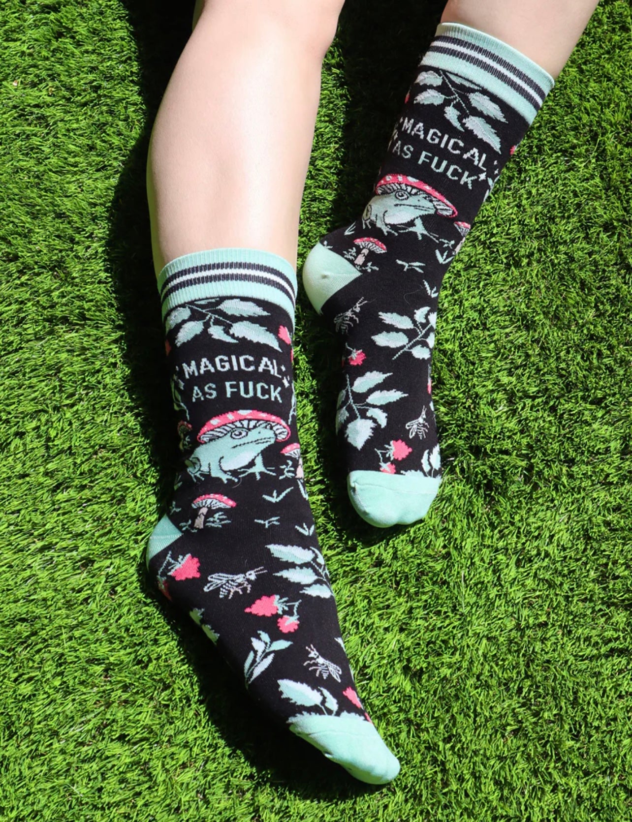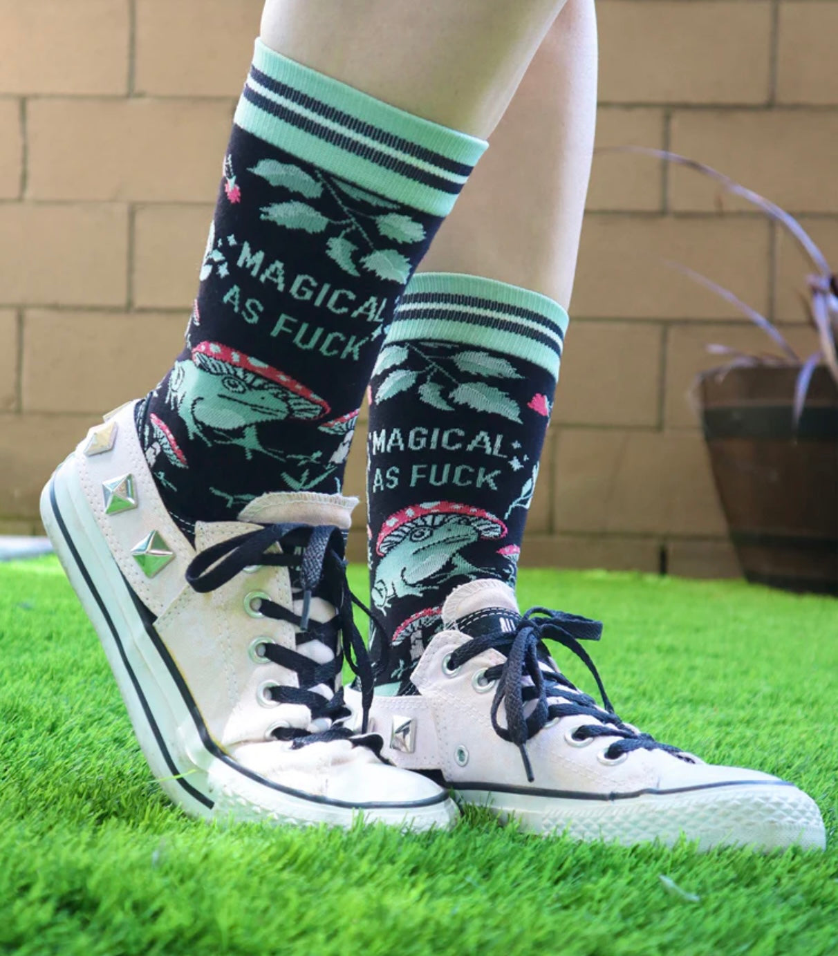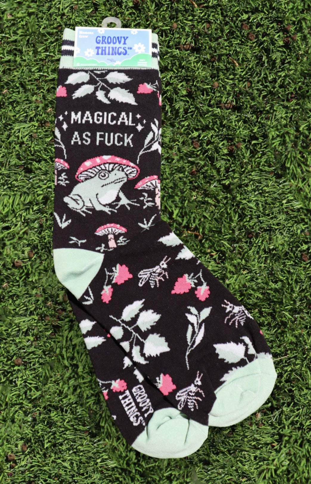 {"id":8296154071346,"title":"MAGICAL AS FUCK Ladies FROG Socks GROOVY THINGS Brand","handle":"magical-as-fuck-ladies-frog-socks-groovy-things-brand-1","description":"\u003cp data-mce-fragment=\"1\"\u003eMagical AF 🍄🐸\u003c\/p\u003e\n\u003cp data-mce-fragment=\"1\"\u003e\u003cspan data-mce-fragment=\"1\"\u003e- 43% combed Cotton, 27% Polyester, 27% Nylon, 3% spandex\u003c\/span\u003e\u003cbr data-mce-fragment=\"1\"\u003e\u003cspan data-mce-fragment=\"1\"\u003e- One size fits most, Women’s Crew length socks\u003c\/span\u003e\u003cbr data-mce-fragment=\"1\"\u003e\u003cspan data-mce-fragment=\"1\"\u003e- Machine wash cold, Tumble dry medium, Do not bleach\u003c\/span\u003e\u003c\/p\u003e\n\u003cp\u003eGROOVY THINGS Brand Ladies FROG Crew Socks\u003c\/p\u003e\n\u003cp\u003e’MAGICAL AS FUCK’\u003c\/p\u003e\n\u003cp\u003eGROOVY THINGS Brand MSRP $12.99\u003c\/p\u003e\n\u003cp\u003e*** HAVE A SUPER GROOVY DAY!***\u003c\/p\u003e","published_at":"2025-07-17T15:23:20-04:00","created_at":"2023-04-14T21:18:49-04:00","vendor":"Novelty Socks And Slippers","type":"SOCKS","tags":[],"price":1299,"price_min":1299,"price_max":1299,"available":true,"price_varies":false,"compare_at_price":null,"compare_at_price_min":0,"compare_at_price_max":0,"compare_at_price_varies":false,"variants":[{"id":45025170882866,"title":"Default Title","option1":"Default Title","option2":null,"option3":null,"sku":"GTCSW138","requires_shipping":true,"taxable":false,"featured_image":null,"available":true,"name":"MAGICAL AS FUCK Ladies FROG Socks GROOVY THINGS Brand","public_title":null,"options":["Default Title"],"price":1299,"weight":57,"compare_at_price":null,"inventory_management":"shopify","barcode":"786468792809","requires_selling_plan":false,"selling_plan_allocations":[]}],"images":["\/\/noveltysocksforless.com\/cdn\/shop\/products\/image_1f1ffaba-6157-4afa-8be7-2f16288b7ff2.jpg?v=1681521536","\/\/noveltysocksforless.com\/cdn\/shop\/products\/image_2a13d44c-ce44-480e-8989-62fd55ac5476.jpg?v=1681521544","\/\/noveltysocksforless.com\/cdn\/shop\/files\/6C6664DE-45C2-45AE-89B3-7F34C8616D26.jpg?v=1757102980","\/\/noveltysocksforless.com\/cdn\/shop\/files\/719039EA-1F77-4FC8-91C6-AD1FD30041B2.jpg?v=1757102980","\/\/noveltysocksforless.com\/cdn\/shop\/files\/1BA728A7-4663-4391-B44C-AD1A6837B780.jpg?v=1757102980"],"featured_image":"\/\/noveltysocksforless.com\/cdn\/shop\/products\/image_1f1ffaba-6157-4afa-8be7-2f16288b7ff2.jpg?v=1681521536","options":["Title"],"media":[{"alt":"GROOVY THINGS Brand Ladies FROG Socks ‘MAGICAL AS FUCK’ - Novelty Socks for Less","id":33641222242610,"position":1,"preview_image":{"aspect_ratio":0.681,"height":1600,"width":1090,"src":"\/\/noveltysocksforless.com\/cdn\/shop\/products\/image_1f1ffaba-6157-4afa-8be7-2f16288b7ff2.jpg?v=1681521536"},"aspect_ratio":0.681,"height":1600,"media_type":"image","src":"\/\/noveltysocksforless.com\/cdn\/shop\/products\/image_1f1ffaba-6157-4afa-8be7-2f16288b7ff2.jpg?v=1681521536","width":1090},{"alt":"GROOVY THINGS Brand Ladies FROG Socks ‘MAGICAL AS FUCK’ - Novelty Socks for Less","id":33641222504754,"position":2,"preview_image":{"aspect_ratio":1.009,"height":1585,"width":1600,"src":"\/\/noveltysocksforless.com\/cdn\/shop\/products\/image_2a13d44c-ce44-480e-8989-62fd55ac5476.jpg?v=1681521544"},"aspect_ratio":1.009,"height":1585,"media_type":"image","src":"\/\/noveltysocksforless.com\/cdn\/shop\/products\/image_2a13d44c-ce44-480e-8989-62fd55ac5476.jpg?v=1681521544","width":1600},{"alt":"GROOVY THINGS Brand Ladies FROG Socks ‘MAGICAL AS FUCK’ - Novelty Socks And Slippers","id":42120763408690,"position":3,"preview_image":{"aspect_ratio":0.768,"height":1671,"width":1284,"src":"\/\/noveltysocksforless.com\/cdn\/shop\/files\/6C6664DE-45C2-45AE-89B3-7F34C8616D26.jpg?v=1757102980"},"aspect_ratio":0.768,"height":1671,"media_type":"image","src":"\/\/noveltysocksforless.com\/cdn\/shop\/files\/6C6664DE-45C2-45AE-89B3-7F34C8616D26.jpg?v=1757102980","width":1284},{"alt":"GROOVY THINGS Brand Ladies FROG Socks ‘MAGICAL AS FUCK’ - Novelty Socks And Slippers","id":42120763375922,"position":4,"preview_image":{"aspect_ratio":0.643,"height":1623,"width":1043,"src":"\/\/noveltysocksforless.com\/cdn\/shop\/files\/719039EA-1F77-4FC8-91C6-AD1FD30041B2.jpg?v=1757102980"},"aspect_ratio":0.643,"height":1623,"media_type":"image","src":"\/\/noveltysocksforless.com\/cdn\/shop\/files\/719039EA-1F77-4FC8-91C6-AD1FD30041B2.jpg?v=1757102980","width":1043},{"alt":"GROOVY THINGS Brand Ladies FROG Socks ‘MAGICAL AS FUCK’ - Novelty Socks And Slippers","id":42120763343154,"position":5,"preview_image":{"aspect_ratio":0.876,"height":1383,"width":1212,"src":"\/\/noveltysocksforless.com\/cdn\/shop\/files\/1BA728A7-4663-4391-B44C-AD1A6837B780.jpg?v=1757102980"},"aspect_ratio":0.876,"height":1383,"media_type":"image","src":"\/\/noveltysocksforless.com\/cdn\/shop\/files\/1BA728A7-4663-4391-B44C-AD1A6837B780.jpg?v=1757102980","width":1212}],"requires_selling_plan":false,"selling_plan_groups":[],"content":"\u003cp data-mce-fragment=\"1\"\u003eMagical AF 🍄🐸\u003c\/p\u003e\n\u003cp data-mce-fragment=\"1\"\u003e\u003cspan data-mce-fragment=\"1\"\u003e- 43% combed Cotton, 27% Polyester, 27% Nylon, 3% spandex\u003c\/span\u003e\u003cbr data-mce-fragment=\"1\"\u003e\u003cspan data-mce-fragment=\"1\"\u003e- One size fits most, Women’s Crew length socks\u003c\/span\u003e\u003cbr data-mce-fragment=\"1\"\u003e\u003cspan data-mce-fragment=\"1\"\u003e- Machine wash cold, Tumble dry medium, Do not bleach\u003c\/span\u003e\u003c\/p\u003e\n\u003cp\u003eGROOVY THINGS Brand Ladies FROG Crew Socks\u003c\/p\u003e\n\u003cp\u003e’MAGICAL AS FUCK’\u003c\/p\u003e\n\u003cp\u003eGROOVY THINGS Brand MSRP $12.99\u003c\/p\u003e\n\u003cp\u003e*** HAVE A SUPER GROOVY DAY!***\u003c\/p\u003e"}