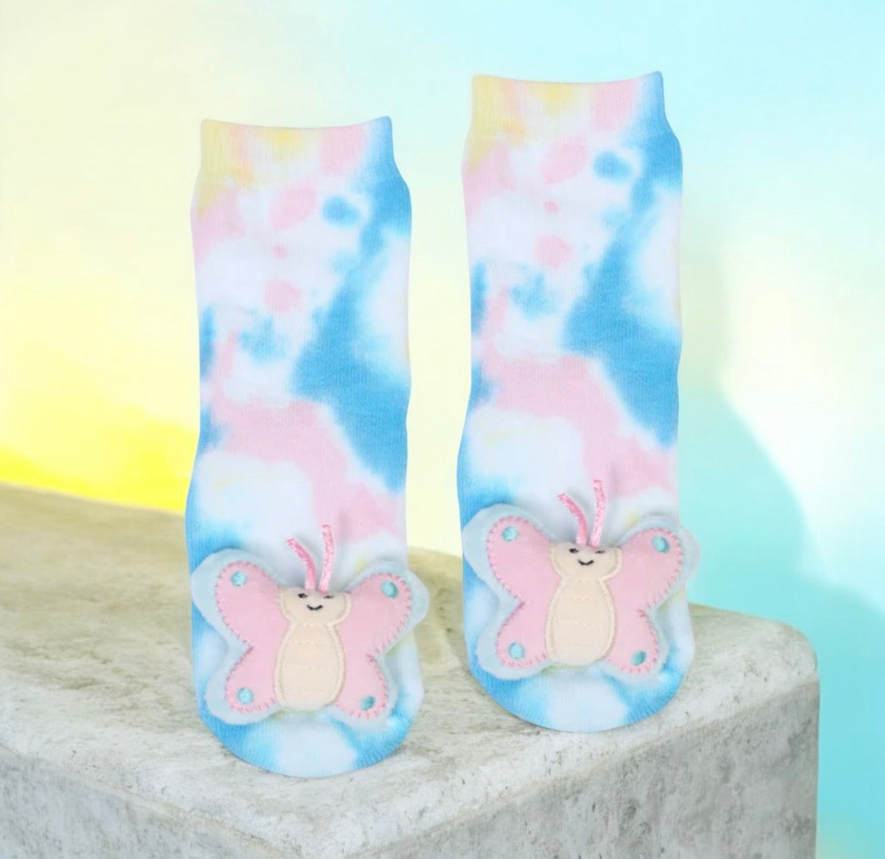 {"id":9787747729714,"title":"MESSY MOOSE Brand Unisex Toddler Tie Dye BUTTERFLY Gripper Bottom Socks","handle":"messy-moose-brand-unisex-baby-butterfly-gripper-bottom-socks","description":"\u003cul\u003e\n\u003cli\u003e\u003cspan\u003eMESSY MOOSE Brand Unisex Toddler Socks \u003c\/span\u003e\u003c\/li\u003e\n\u003cli\u003e\u003cspan\u003eTie Dye Butterfly\u003c\/span\u003e\u003c\/li\u003e\n\u003cli\u003e\u003cspan\u003eStitched Plush Charm \u003c\/span\u003e\u003c\/li\u003e\n\u003cli\u003e\u003cspan\u003e* Slip-resistant treads on the soles \u003c\/span\u003e\u003c\/li\u003e\n\u003cli\u003e\u003cspan\u003e* Soft cotton blend \u003c\/span\u003e\u003c\/li\u003e\n\u003cli\u003e\u003cspan\u003e* Comfortable and durable Fabric \u0026amp; Care: \u003c\/span\u003e\u003c\/li\u003e\n\u003cli\u003e\u003cspan\u003e* 80% Cotton, 17% Polyamide, 3% Spandex \u003c\/span\u003e\u003c\/li\u003e\n\u003cli\u003e\u003cspan\u003e* Machine washable (cold recommended) * Age group: 6-48 months\u003c\/span\u003e\u003c\/li\u003e\n\u003c\/ul\u003e","published_at":"2025-12-27T13:07:13-05:00","created_at":"2025-03-10T20:13:51-04:00","vendor":"Novelty Socks And Slippers","type":"Infant Toddler Socks","tags":[],"price":1099,"price_min":1099,"price_max":1099,"available":true,"price_varies":false,"compare_at_price":null,"compare_at_price_min":0,"compare_at_price_max":0,"compare_at_price_varies":false,"variants":[{"id":49830527959346,"title":"Default Title","option1":"Default Title","option2":null,"option3":null,"sku":"27141","requires_shipping":true,"taxable":false,"featured_image":null,"available":true,"name":"MESSY MOOSE Brand Unisex Toddler Tie Dye BUTTERFLY Gripper Bottom Socks","public_title":null,"options":["Default Title"],"price":1099,"weight":57,"compare_at_price":null,"inventory_management":"shopify","barcode":"069202271441","requires_selling_plan":false,"selling_plan_allocations":[]}],"images":["\/\/noveltysocksforless.com\/cdn\/shop\/files\/30961AD3-594F-4A83-A831-F2D76289D61C.jpg?v=1766858725","\/\/noveltysocksforless.com\/cdn\/shop\/files\/9A57C6B6-4E10-4A58-A252-225D490677D2.jpg?v=1766858725","\/\/noveltysocksforless.com\/cdn\/shop\/files\/83189C37-86B5-4652-AFA8-0D7FC72E2144.jpg?v=1766858725","\/\/noveltysocksforless.com\/cdn\/shop\/files\/D2532DDE-91C7-478A-A499-60EF58F686E4.jpg?v=1766858725"],"featured_image":"\/\/noveltysocksforless.com\/cdn\/shop\/files\/30961AD3-594F-4A83-A831-F2D76289D61C.jpg?v=1766858725","options":["Title"],"media":[{"alt":null,"id":42910755029298,"position":1,"preview_image":{"aspect_ratio":0.863,"height":1172,"width":1012,"src":"\/\/noveltysocksforless.com\/cdn\/shop\/files\/30961AD3-594F-4A83-A831-F2D76289D61C.jpg?v=1766858725"},"aspect_ratio":0.863,"height":1172,"media_type":"image","src":"\/\/noveltysocksforless.com\/cdn\/shop\/files\/30961AD3-594F-4A83-A831-F2D76289D61C.jpg?v=1766858725","width":1012},{"alt":null,"id":42910754996530,"position":2,"preview_image":{"aspect_ratio":1.031,"height":1251,"width":1290,"src":"\/\/noveltysocksforless.com\/cdn\/shop\/files\/9A57C6B6-4E10-4A58-A252-225D490677D2.jpg?v=1766858725"},"aspect_ratio":1.031,"height":1251,"media_type":"image","src":"\/\/noveltysocksforless.com\/cdn\/shop\/files\/9A57C6B6-4E10-4A58-A252-225D490677D2.jpg?v=1766858725","width":1290},{"alt":null,"id":40936961212722,"position":3,"preview_image":{"aspect_ratio":1.333,"height":360,"width":480,"src":"\/\/noveltysocksforless.com\/cdn\/shop\/files\/preview_images\/hqdefault_e20d7b6f-b0eb-4422-82e9-0f1708fed561.jpg?v=1741738513"},"aspect_ratio":1.77,"external_id":"t7Px3UE5nxs","host":"youtube","media_type":"external_video"},{"alt":"MESSY MOOSE Brand Unisex Baby BUTTERFLY Gripper Bottom Socks - Novelty Socks And Slippers","id":40936970158386,"position":4,"preview_image":{"aspect_ratio":0.748,"height":1276,"width":954,"src":"\/\/noveltysocksforless.com\/cdn\/shop\/files\/83189C37-86B5-4652-AFA8-0D7FC72E2144.jpg?v=1766858725"},"aspect_ratio":0.748,"height":1276,"media_type":"image","src":"\/\/noveltysocksforless.com\/cdn\/shop\/files\/83189C37-86B5-4652-AFA8-0D7FC72E2144.jpg?v=1766858725","width":954},{"alt":"MESSY MOOSE Brand Unisex Baby BUTTERFLY Gripper Bottom Socks - Novelty Socks And Slippers","id":40936970191154,"position":5,"preview_image":{"aspect_ratio":1.563,"height":783,"width":1224,"src":"\/\/noveltysocksforless.com\/cdn\/shop\/files\/D2532DDE-91C7-478A-A499-60EF58F686E4.jpg?v=1766858725"},"aspect_ratio":1.563,"height":783,"media_type":"image","src":"\/\/noveltysocksforless.com\/cdn\/shop\/files\/D2532DDE-91C7-478A-A499-60EF58F686E4.jpg?v=1766858725","width":1224}],"requires_selling_plan":false,"selling_plan_groups":[],"content":"\u003cul\u003e\n\u003cli\u003e\u003cspan\u003eMESSY MOOSE Brand Unisex Toddler Socks \u003c\/span\u003e\u003c\/li\u003e\n\u003cli\u003e\u003cspan\u003eTie Dye Butterfly\u003c\/span\u003e\u003c\/li\u003e\n\u003cli\u003e\u003cspan\u003eStitched Plush Charm \u003c\/span\u003e\u003c\/li\u003e\n\u003cli\u003e\u003cspan\u003e* Slip-resistant treads on the soles \u003c\/span\u003e\u003c\/li\u003e\n\u003cli\u003e\u003cspan\u003e* Soft cotton blend \u003c\/span\u003e\u003c\/li\u003e\n\u003cli\u003e\u003cspan\u003e* Comfortable and durable Fabric \u0026amp; Care: \u003c\/span\u003e\u003c\/li\u003e\n\u003cli\u003e\u003cspan\u003e* 80% Cotton, 17% Polyamide, 3% Spandex \u003c\/span\u003e\u003c\/li\u003e\n\u003cli\u003e\u003cspan\u003e* Machine washable (cold recommended) * Age group: 6-48 months\u003c\/span\u003e\u003c\/li\u003e\n\u003c\/ul\u003e"}