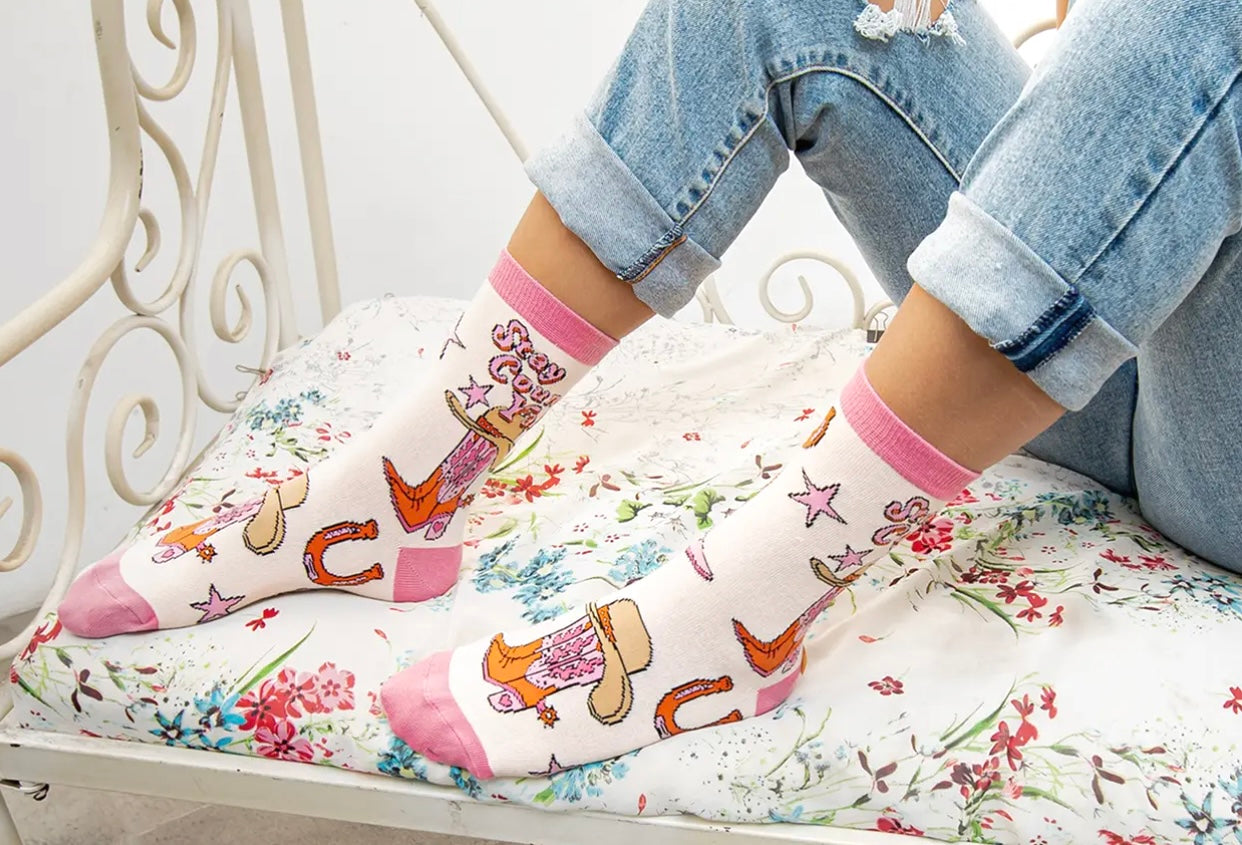 {"id":9046873866546,"title":"STAY COUNTRY Y’ALL Ladies COWGIRL Socks ‘GIDDY UP' OOOH YEAH Brand","handle":"stay-country-y-all-ladies-cowgirl-socks-giddy-up-oooh-yeah-brand-1","description":"\u003cp\u003eOOOH YEAH Brand Ladies COWGIRL Crew Socks Shoe Size 5-10, Sock Size 9-11\u003c\/p\u003e\n\u003cp\u003e‘STAY COUNTRY Y'ALL', 'GIDDY UP'\u003c\/p\u003e\n\u003cp\u003e65% Combed Cotton, 32% Nylon, 3% Spandex \u003c\/p\u003e\n\u003cp\u003e \u003c\/p\u003e","published_at":"2024-02-22T15:05:31-05:00","created_at":"2024-02-22T15:03:44-05:00","vendor":"Novelty Socks And Slippers","type":"SOCKS","tags":[],"price":1099,"price_min":1099,"price_max":1099,"available":true,"price_varies":false,"compare_at_price":null,"compare_at_price_min":0,"compare_at_price_max":0,"compare_at_price_varies":false,"variants":[{"id":47802289488178,"title":"Default Title","option1":"Default Title","option2":null,"option3":null,"sku":"wd23506C","requires_shipping":true,"taxable":false,"featured_image":null,"available":true,"name":"STAY COUNTRY Y’ALL Ladies COWGIRL Socks ‘GIDDY UP' OOOH YEAH Brand","public_title":null,"options":["Default Title"],"price":1099,"weight":57,"compare_at_price":null,"inventory_management":"shopify","barcode":"642415028707","requires_selling_plan":false,"selling_plan_allocations":[]}],"images":["\/\/noveltysocksforless.com\/cdn\/shop\/files\/867645FF-D2E0-4687-940B-36DF7F8AFFEC.jpg?v=1708632348","\/\/noveltysocksforless.com\/cdn\/shop\/files\/8C2B4253-418A-44DA-A41B-CE5F52DD0A95.jpg?v=1708632346","\/\/noveltysocksforless.com\/cdn\/shop\/files\/D2A1B97E-0006-4CBB-A467-0E7BB1F23C0E.jpg?v=1708632349","\/\/noveltysocksforless.com\/cdn\/shop\/files\/50293F80-85DB-489F-B7E7-3A655A19AEF9.jpg?v=1759253742","\/\/noveltysocksforless.com\/cdn\/shop\/files\/35A693C9-C966-46EC-8103-B7C16263EAFB.jpg?v=1759253741"],"featured_image":"\/\/noveltysocksforless.com\/cdn\/shop\/files\/867645FF-D2E0-4687-940B-36DF7F8AFFEC.jpg?v=1708632348","options":["Title"],"media":[{"alt":"OOOH YEAH Brand Ladies COWGIRL Socks ‘STAY COUNTRY Y’ALL’ ‘GIDDY UP’ - Novelty Socks And Slippers","id":36885192147250,"position":1,"preview_image":{"aspect_ratio":0.588,"height":1106,"width":650,"src":"\/\/noveltysocksforless.com\/cdn\/shop\/files\/867645FF-D2E0-4687-940B-36DF7F8AFFEC.jpg?v=1708632348"},"aspect_ratio":0.588,"height":1106,"media_type":"image","src":"\/\/noveltysocksforless.com\/cdn\/shop\/files\/867645FF-D2E0-4687-940B-36DF7F8AFFEC.jpg?v=1708632348","width":650},{"alt":"OOOH YEAH Brand Ladies COWGIRL Socks ‘STAY COUNTRY Y’ALL’ ‘GIDDY UP’ - Novelty Socks And Slippers","id":36885192180018,"position":2,"preview_image":{"aspect_ratio":0.667,"height":1154,"width":770,"src":"\/\/noveltysocksforless.com\/cdn\/shop\/files\/8C2B4253-418A-44DA-A41B-CE5F52DD0A95.jpg?v=1708632346"},"aspect_ratio":0.667,"height":1154,"media_type":"image","src":"\/\/noveltysocksforless.com\/cdn\/shop\/files\/8C2B4253-418A-44DA-A41B-CE5F52DD0A95.jpg?v=1708632346","width":770},{"alt":"OOOH YEAH Brand Ladies COWGIRL Socks ‘STAY COUNTRY Y’ALL’ ‘GIDDY UP’ - Novelty Socks And Slippers","id":36885192212786,"position":3,"preview_image":{"aspect_ratio":0.649,"height":1163,"width":755,"src":"\/\/noveltysocksforless.com\/cdn\/shop\/files\/D2A1B97E-0006-4CBB-A467-0E7BB1F23C0E.jpg?v=1708632349"},"aspect_ratio":0.649,"height":1163,"media_type":"image","src":"\/\/noveltysocksforless.com\/cdn\/shop\/files\/D2A1B97E-0006-4CBB-A467-0E7BB1F23C0E.jpg?v=1708632349","width":755},{"alt":"STAY COUNTRY Y’ALL Ladies COWGIRL Socks ‘GIDDY UP' OOOH YEAH Brand - Novelty Socks And Slippers","id":42287383118130,"position":4,"preview_image":{"aspect_ratio":1.47,"height":845,"width":1242,"src":"\/\/noveltysocksforless.com\/cdn\/shop\/files\/50293F80-85DB-489F-B7E7-3A655A19AEF9.jpg?v=1759253742"},"aspect_ratio":1.47,"height":845,"media_type":"image","src":"\/\/noveltysocksforless.com\/cdn\/shop\/files\/50293F80-85DB-489F-B7E7-3A655A19AEF9.jpg?v=1759253742","width":1242},{"alt":"STAY COUNTRY Y’ALL Ladies COWGIRL Socks ‘GIDDY UP' OOOH YEAH Brand - Novelty Socks And Slippers","id":42287383085362,"position":5,"preview_image":{"aspect_ratio":1.39,"height":779,"width":1083,"src":"\/\/noveltysocksforless.com\/cdn\/shop\/files\/35A693C9-C966-46EC-8103-B7C16263EAFB.jpg?v=1759253741"},"aspect_ratio":1.39,"height":779,"media_type":"image","src":"\/\/noveltysocksforless.com\/cdn\/shop\/files\/35A693C9-C966-46EC-8103-B7C16263EAFB.jpg?v=1759253741","width":1083}],"requires_selling_plan":false,"selling_plan_groups":[],"content":"\u003cp\u003eOOOH YEAH Brand Ladies COWGIRL Crew Socks Shoe Size 5-10, Sock Size 9-11\u003c\/p\u003e\n\u003cp\u003e‘STAY COUNTRY Y'ALL', 'GIDDY UP'\u003c\/p\u003e\n\u003cp\u003e65% Combed Cotton, 32% Nylon, 3% Spandex \u003c\/p\u003e\n\u003cp\u003e \u003c\/p\u003e"}