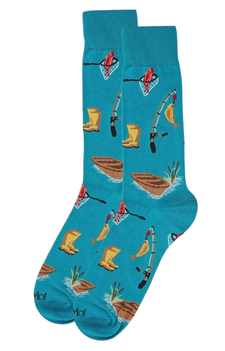 MeMoi Brand Men’s FISHING Socks Fishing Pole, Canoe
