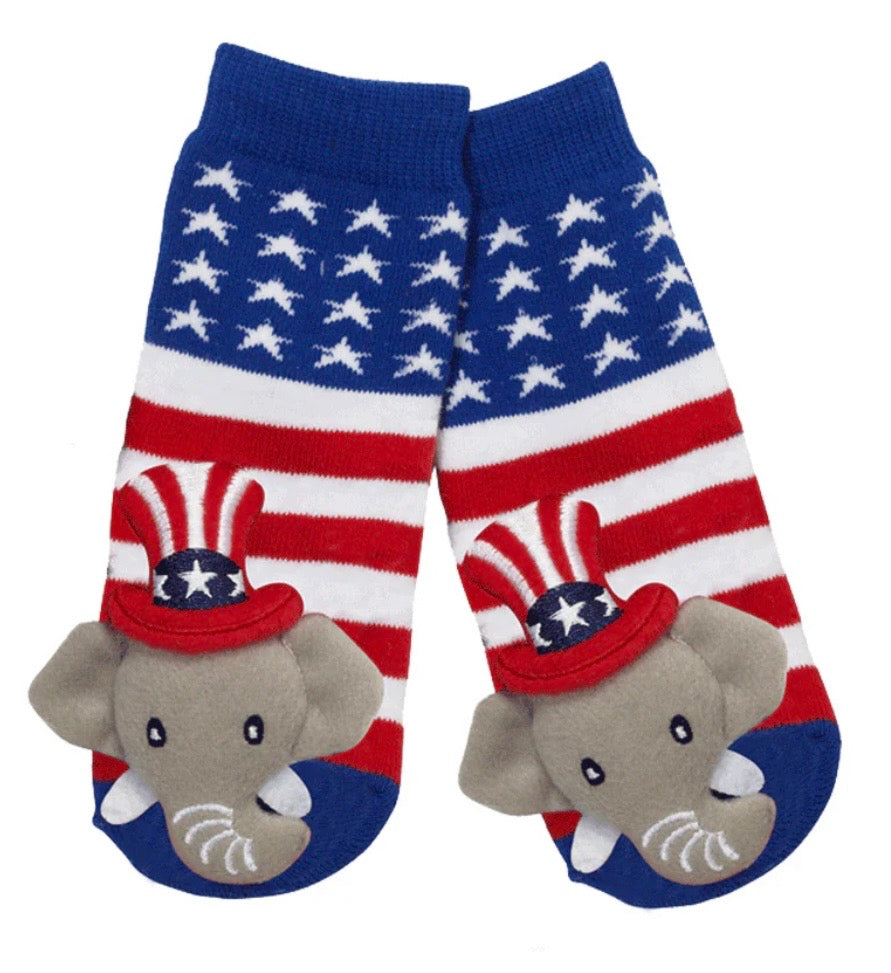 PATRIOTIC ELEPHANT Unisex Toddler Gripper Bottom Socks MESSY MOOSE Brand
