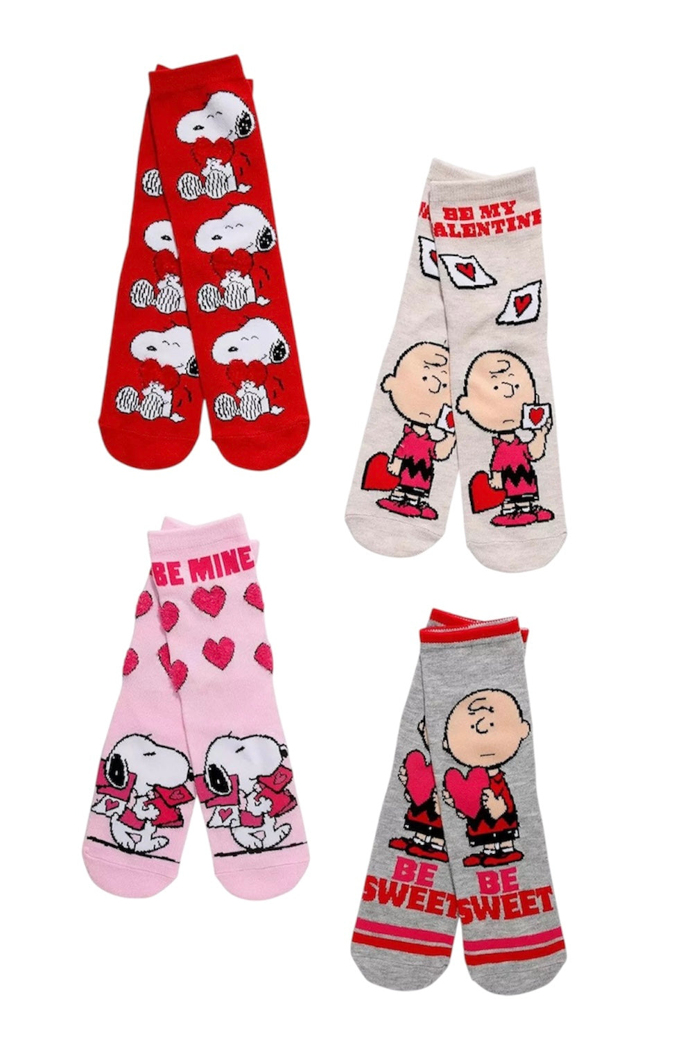 {"id":10024555020594,"title":"PEANUTS Ladies 4 Pair Of Valentines Day Socks Charlie Brown ‘BE MY VALENTINE’","handle":"peanuts-ladies-4-pair-of-valentines-day-socks-charlie-brown-be-my-valentine","description":"\u003cdiv class=\"description\"\u003e\n\u003cdiv class=\"col-12 mb-3 value content\" id=\"collapsible-description-1\"\u003e\n\u003cdiv class=\"js_short-description\"\u003ePeanuts Valentine's Day Duo Crew Socks 4 Pair\u003c\/div\u003e\n\u003c\/div\u003e\n\u003c\/div\u003e\n\u003cdiv class=\"details\"\u003e\n\u003cdiv class=\"col-12 mb-3 value content\" id=\"collapsible-details-1\"\u003eWe're falling in love with these\u003cspan\u003e \u003c\/span\u003e\u003ci\u003ePeanuts\u003cspan\u003e \u003c\/span\u003e\u003c\/i\u003ecrew socks! Gear up for Valentine's Day with Snoopy and Charlie Brown. These crew socks feature hearts and love letters all over, with Snoopy on 2 pairs and Charlie Brown on 2 pairs.\n\u003cdiv\u003e\n\u003cul\u003e\n\u003cli\u003eFits shoe size 4 - 10\u003c\/li\u003e\n\u003cli\u003e98% polyester; 2% spandex\u003c\/li\u003e\n\u003cli\u003eWash cold; dry low\u003c\/li\u003e\n\u003cli\u003eSet of 4 pairs\u003c\/li\u003e\n\u003c\/ul\u003e\n\u003c\/div\u003e\n\u003c\/div\u003e\n\u003c\/div\u003e\n\u003cp\u003ePEANUTS Ladies 4 Pair of VALENTINES DAY Crew Socks Shoe Size 4-10, Sock Size 9-11\u003c\/p\u003e\n\u003cp\u003eCHARLIE BROWN \u0026amp; SNOOPY With Soft Fuzzy Hearts\u003c\/p\u003e\n\u003cp\u003e'BE MY VALENTINE', 'BE SWEET', 'BE MINE'\u003c\/p\u003e\n\u003cp\u003e98% Polyester, 2% Spandex\u003c\/p\u003e\n\u003cp\u003eHigh Point Design Brand\u003c\/p\u003e\n\u003cp\u003e \u003c\/p\u003e","published_at":"2025-11-02T15:46:34-05:00","created_at":"2025-11-02T15:40:41-05:00","vendor":"Novelty Socks And Slippers","type":"CREW SOCKS","tags":[],"price":1599,"price_min":1599,"price_max":1599,"available":true,"price_varies":false,"compare_at_price":null,"compare_at_price_min":0,"compare_at_price_max":0,"compare_at_price_varies":false,"variants":[{"id":50579408552242,"title":"Default Title","option1":"Default Title","option2":null,"option3":null,"sku":"41201582P60600HP","requires_shipping":true,"taxable":false,"featured_image":null,"available":true,"name":"PEANUTS Ladies 4 Pair Of Valentines Day Socks Charlie Brown ‘BE MY VALENTINE’","public_title":null,"options":["Default Title"],"price":1599,"weight":113,"compare_at_price":null,"inventory_management":"shopify","barcode":"086694772126","requires_selling_plan":false,"selling_plan_allocations":[]}],"images":["\/\/noveltysocksforless.com\/cdn\/shop\/files\/6CDEA910-DA18-41F4-9F7A-5B833A01C2E2.jpg?v=1768495123","\/\/noveltysocksforless.com\/cdn\/shop\/files\/18A2CF80-9B55-492D-96ED-0341ED9CD94E.jpg?v=1768495112"],"featured_image":"\/\/noveltysocksforless.com\/cdn\/shop\/files\/6CDEA910-DA18-41F4-9F7A-5B833A01C2E2.jpg?v=1768495123","options":["Title"],"media":[{"alt":null,"id":43024113795378,"position":1,"preview_image":{"aspect_ratio":0.66,"height":1512,"width":998,"src":"\/\/noveltysocksforless.com\/cdn\/shop\/files\/6CDEA910-DA18-41F4-9F7A-5B833A01C2E2.jpg?v=1768495123"},"aspect_ratio":0.66,"height":1512,"media_type":"image","src":"\/\/noveltysocksforless.com\/cdn\/shop\/files\/6CDEA910-DA18-41F4-9F7A-5B833A01C2E2.jpg?v=1768495123","width":998},{"alt":"PEANUTS Ladies 4 Pair Of Valentines Day Socks Charlie Brown ‘BE MY VALENTINE’ - Novelty Socks And Slippers","id":42545446912306,"position":2,"preview_image":{"aspect_ratio":1.209,"height":900,"width":1088,"src":"\/\/noveltysocksforless.com\/cdn\/shop\/files\/18A2CF80-9B55-492D-96ED-0341ED9CD94E.jpg?v=1768495112"},"aspect_ratio":1.209,"height":900,"media_type":"image","src":"\/\/noveltysocksforless.com\/cdn\/shop\/files\/18A2CF80-9B55-492D-96ED-0341ED9CD94E.jpg?v=1768495112","width":1088}],"requires_selling_plan":false,"selling_plan_groups":[],"content":"\u003cdiv class=\"description\"\u003e\n\u003cdiv class=\"col-12 mb-3 value content\" id=\"collapsible-description-1\"\u003e\n\u003cdiv class=\"js_short-description\"\u003ePeanuts Valentine's Day Duo Crew Socks 4 Pair\u003c\/div\u003e\n\u003c\/div\u003e\n\u003c\/div\u003e\n\u003cdiv class=\"details\"\u003e\n\u003cdiv class=\"col-12 mb-3 value content\" id=\"collapsible-details-1\"\u003eWe're falling in love with these\u003cspan\u003e \u003c\/span\u003e\u003ci\u003ePeanuts\u003cspan\u003e \u003c\/span\u003e\u003c\/i\u003ecrew socks! Gear up for Valentine's Day with Snoopy and Charlie Brown. These crew socks feature hearts and love letters all over, with Snoopy on 2 pairs and Charlie Brown on 2 pairs.\n\u003cdiv\u003e\n\u003cul\u003e\n\u003cli\u003eFits shoe size 4 - 10\u003c\/li\u003e\n\u003cli\u003e98% polyester; 2% spandex\u003c\/li\u003e\n\u003cli\u003eWash cold; dry low\u003c\/li\u003e\n\u003cli\u003eSet of 4 pairs\u003c\/li\u003e\n\u003c\/ul\u003e\n\u003c\/div\u003e\n\u003c\/div\u003e\n\u003c\/div\u003e\n\u003cp\u003ePEANUTS Ladies 4 Pair of VALENTINES DAY Crew Socks Shoe Size 4-10, Sock Size 9-11\u003c\/p\u003e\n\u003cp\u003eCHARLIE BROWN \u0026amp; SNOOPY With Soft Fuzzy Hearts\u003c\/p\u003e\n\u003cp\u003e'BE MY VALENTINE', 'BE SWEET', 'BE MINE'\u003c\/p\u003e\n\u003cp\u003e98% Polyester, 2% Spandex\u003c\/p\u003e\n\u003cp\u003eHigh Point Design Brand\u003c\/p\u003e\n\u003cp\u003e \u003c\/p\u003e"}