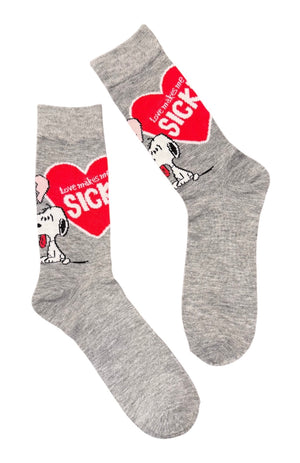 PEANUTS Men’s Snoopy VALENTINES DAY Socks ‘LOVE MAKES ME SICK’