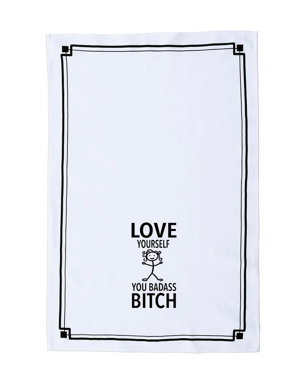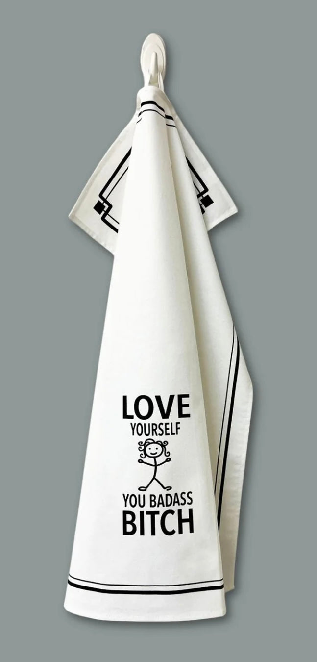 LOVE YOURSELF YOU BADASS BITCH Kitchen Tea Towel HEY NOW Brand By Fabdaz