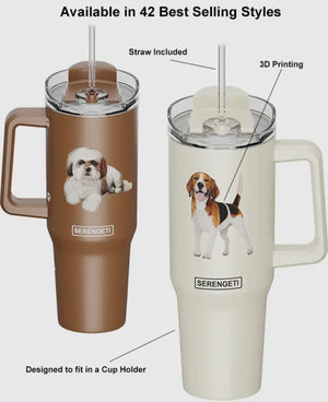 Dog & Cat Stainless Steel Ultimate 40 Oz. Tumbler Hot & Cold Travel Mug By E&S Pets (Choose Breed)