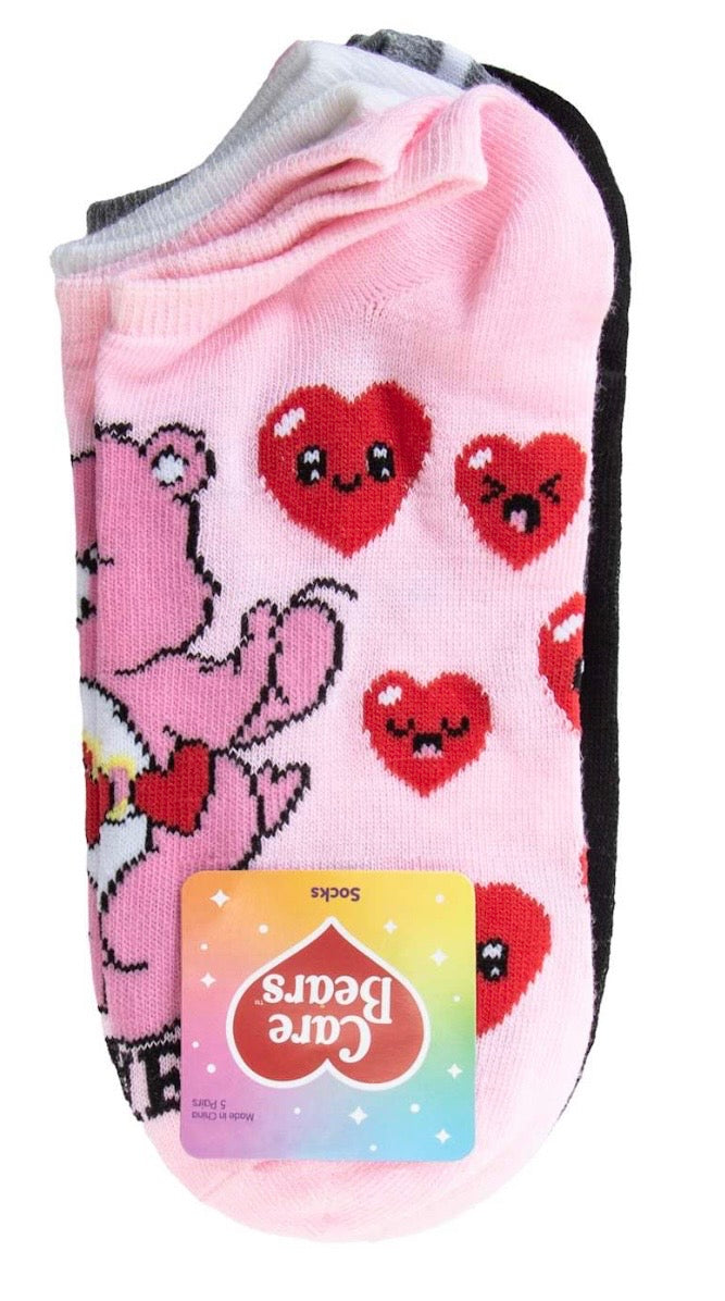 {"id":10081721680178,"title":"CARE BEARS Ladies 5 Pair Of VALENTINES DAY No Show Socks ‘TRUE LOVE’","handle":"care-bears-ladies-5-pair-of-valentines-day-no-show-socks-true-love","description":"\u003cp\u003eCARE BEARS Ladies 5 Pair Of VALENTINES DAY No Show Socks Shoe Size 4-10\u003c\/p\u003e\n\u003cp\u003e’TRUE LOVE', 'ALL HEART', 'MOOD MOOD MOOD'\u003c\/p\u003e\n\u003cp\u003e98% Polyester, 2% Spandex \u003c\/p\u003e\n\u003cp\u003eHigh Point Design Brand\u003c\/p\u003e","published_at":"2026-01-09T16:36:00-05:00","created_at":"2026-01-09T16:32:43-05:00","vendor":"Novelty Socks And Slippers","type":"SOCKS","tags":[],"price":1199,"price_min":1199,"price_max":1199,"available":true,"price_varies":false,"compare_at_price":null,"compare_at_price_min":0,"compare_at_price_max":0,"compare_at_price_varies":false,"variants":[{"id":50798397423922,"title":"Default Title","option1":"Default Title","option2":null,"option3":null,"sku":"41490446P60","requires_shipping":true,"taxable":false,"featured_image":null,"available":true,"name":"CARE BEARS Ladies 5 Pair Of VALENTINES DAY No Show Socks ‘TRUE LOVE’","public_title":null,"options":["Default Title"],"price":1199,"weight":57,"compare_at_price":null,"inventory_management":"shopify","barcode":"086694721506","requires_selling_plan":false,"selling_plan_allocations":[]}],"images":["\/\/noveltysocksforless.com\/cdn\/shop\/files\/ABBF54CB-003A-4039-8919-1C5805F88CD2.jpg?v=1767994377","\/\/noveltysocksforless.com\/cdn\/shop\/files\/6E4C70B3-FA17-495A-8790-AB1652E9BE89.jpg?v=1767994377","\/\/noveltysocksforless.com\/cdn\/shop\/files\/FB6F8849-7610-4CDE-A68E-F743B4884685.jpg?v=1767994377"],"featured_image":"\/\/noveltysocksforless.com\/cdn\/shop\/files\/ABBF54CB-003A-4039-8919-1C5805F88CD2.jpg?v=1767994377","options":["Title"],"media":[{"alt":null,"id":42984409858354,"position":1,"preview_image":{"aspect_ratio":1.046,"height":1111,"width":1162,"src":"\/\/noveltysocksforless.com\/cdn\/shop\/files\/ABBF54CB-003A-4039-8919-1C5805F88CD2.jpg?v=1767994377"},"aspect_ratio":1.046,"height":1111,"media_type":"image","src":"\/\/noveltysocksforless.com\/cdn\/shop\/files\/ABBF54CB-003A-4039-8919-1C5805F88CD2.jpg?v=1767994377","width":1162},{"alt":null,"id":42984409825586,"position":2,"preview_image":{"aspect_ratio":0.558,"height":1196,"width":667,"src":"\/\/noveltysocksforless.com\/cdn\/shop\/files\/6E4C70B3-FA17-495A-8790-AB1652E9BE89.jpg?v=1767994377"},"aspect_ratio":0.558,"height":1196,"media_type":"image","src":"\/\/noveltysocksforless.com\/cdn\/shop\/files\/6E4C70B3-FA17-495A-8790-AB1652E9BE89.jpg?v=1767994377","width":667},{"alt":null,"id":42984409792818,"position":3,"preview_image":{"aspect_ratio":1.099,"height":1174,"width":1290,"src":"\/\/noveltysocksforless.com\/cdn\/shop\/files\/FB6F8849-7610-4CDE-A68E-F743B4884685.jpg?v=1767994377"},"aspect_ratio":1.099,"height":1174,"media_type":"image","src":"\/\/noveltysocksforless.com\/cdn\/shop\/files\/FB6F8849-7610-4CDE-A68E-F743B4884685.jpg?v=1767994377","width":1290}],"requires_selling_plan":false,"selling_plan_groups":[],"content":"\u003cp\u003eCARE BEARS Ladies 5 Pair Of VALENTINES DAY No Show Socks Shoe Size 4-10\u003c\/p\u003e\n\u003cp\u003e’TRUE LOVE', 'ALL HEART', 'MOOD MOOD MOOD'\u003c\/p\u003e\n\u003cp\u003e98% Polyester, 2% Spandex \u003c\/p\u003e\n\u003cp\u003eHigh Point Design Brand\u003c\/p\u003e"}